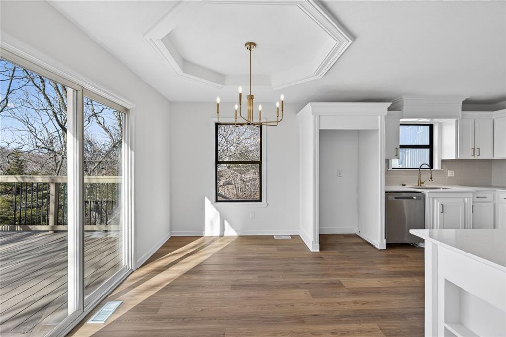 Welcome to this beautifully renovated 5-bedroom, 3-bathroom ranch home offering the perfect blend of modern updates and comfortable living. This home features an open-concept floor plan with stunning finishes throughout, creating a bright and inviting atmosphere ideal for both everyday living and entertaining. Enjoy the convenience of main-level laundry and a spacious 2-car garage. The expansive lower level boasts impressive 12-foot ceilings, providing endless possibilities for additional living, recreation, or entertaining space. Step outside to a brand-new deck and lower-level patio, perfect for relaxing or hosting gatherings, all while enjoying peaceful views as the property backs to mature trees. An added bonus: the home is equipped with solar panels that are fully owned and paid off, offering energy efficiency and long-term savings. Ideally located near schools, shopping, and local amenities, this home offers both convenience and tranquility. A must-see property that truly delivers on space, comfort, and style!