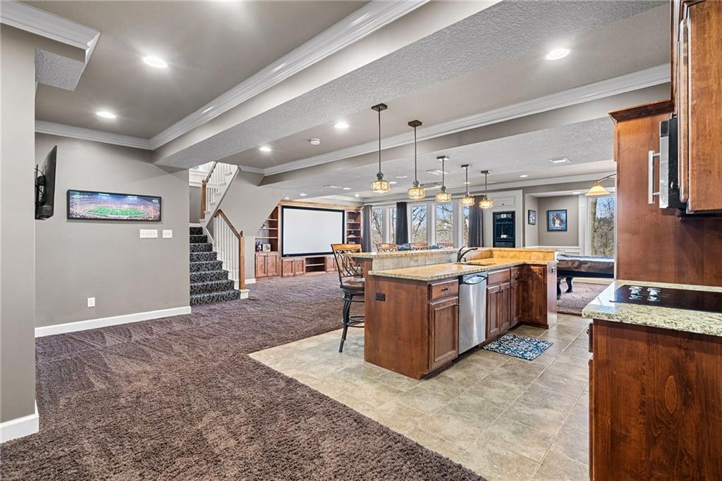 This incredibly spacious 2-story home sits on a wonderfully private, treed lot that backs to wooded greenspace and parkland in sought-after Winterset Park. With 5 bedrooms, 4.5 baths and over 5000 SF of living space, inside or out you’ll never run out of ways to live life to the fullest no matter what your lifestyle needs may be. The main level offers both open spaces and cozy places that easily accommodate gatherings of any size. With stunning refinished hardwoods, a shared great room/hearth room fireplace, and walls of windows looking out over that beautiful, wooded backdrop, you’ll love the warm and inviting vibe throughout. Don’t forget to mosey on out to the composite deck among the trees! The current owners created an amazing mutli-level outdoor oasis when they fully replaced the old deck. Back inside, there’s also an office with private garage access making work life at home a breeze. And the gorgeous flex room that greets you when you step inside the front door makes for a perfect music room, formal dining room, private sitting room or whatever your heart desires. Upstairs, you’ll find a huge loft along with three generous guest rooms and 2 full guest baths. But the crown jewel is the primary suite. A true retreat with sitting room, 3 closets (yes, 3!), and an extraordinary spa-like bath with steam shower and soaker tub. Seriously, you may never leave! Want more? The finished walk-out lower level is the stuff that dreams are made of. This is no DIYers finish! Incredible wet bar, huge family room, media room, wine cellar, area for game table and workout equipment, plus a conforming 5th bedroom and fantastic 4th full bath. This will quickly become the place where everyone wants to hang out! Then step out to the covered lower-level dry deck and your relaxing hot tub. And the oversized 3-car garage with epoxied floor is the perfect place for all your toys. Now you’re living the sweet life!