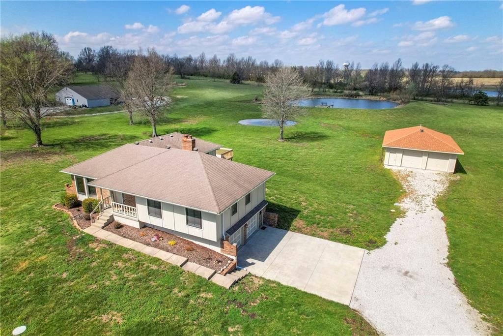 Situated on 4.28 acres, this versatile property offers beautiful outdoor features and plenty of space to enjoy country living. The large stocked pond with dock is perfect for relaxing or fishing, and the 35 x 40 outbuilding includes a new roof, office space, concrete floor, and electricity — ideal for a workshop, storage, or hobbies. Inside, the home features an open floor plan with plenty of room to spread out. The main level includes a formal dining room, living room with fireplace, kitchen, and a large family room that opens to a spacious new deck. Bedrooms and bathrooms on the main level have been recently updated, and there is a convenient main-level laundry room. All windows were replaced in 2019. The finished walkout lower level provides even more living space, including a large family room, second laundry room, and garage access. Two large non-conforming bedrooms downstairs offer great flexibility for guests, office space, or hobby rooms. With generous indoor and outdoor living space, this property offers room to live, work, and play — all in one place. Buyers and buyer's agent to confirm taxes, room sizes, all information and school districts.