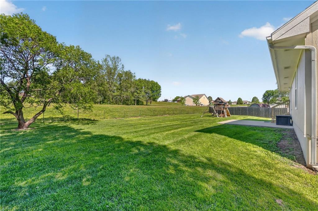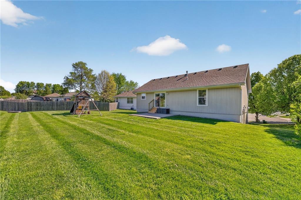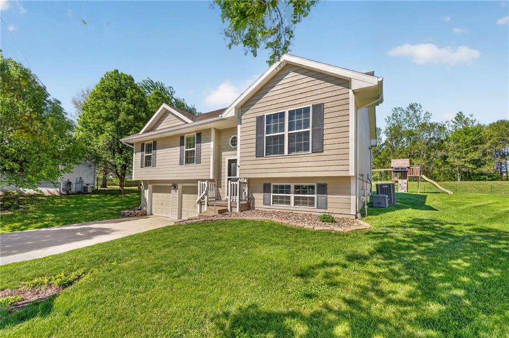 DARLING split level in COVETED MISSION RIDGE subdivision, Kearney schools!! CUL-DE-SAC LOT w/ HUGE, PRIVATE BACK YARD backing to church property! NEW CARPET & PAINT THROUGHOUT! MAIN LEVEL LIVING features PRIMARY SUITE, secondary beds/bath, kitchen & great room. 5 year roof, ALL APPLIANCES including refrigerator & washer/dryer stay! LL is finished w/ REC ROOM for extra living space & half bath for guests. Close to schools, highways & retail districts. Nest Thermostat, ADT Security System, Ring Doorbell, Ring Floodlight, Smart Garage Door Openers, Smart Appliances all stay! HURRY!