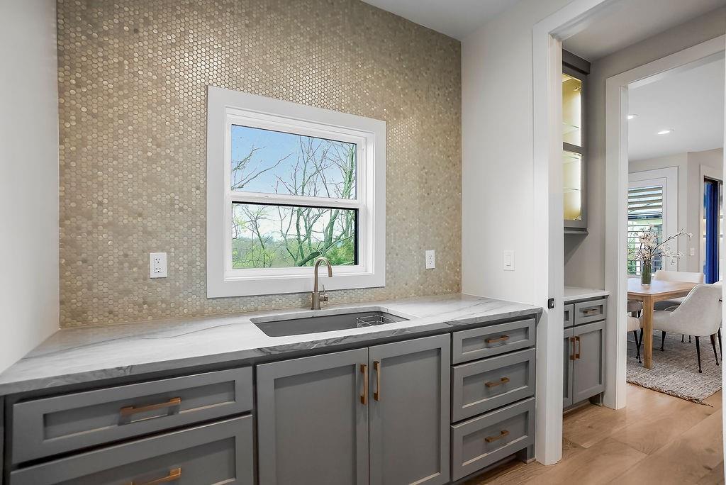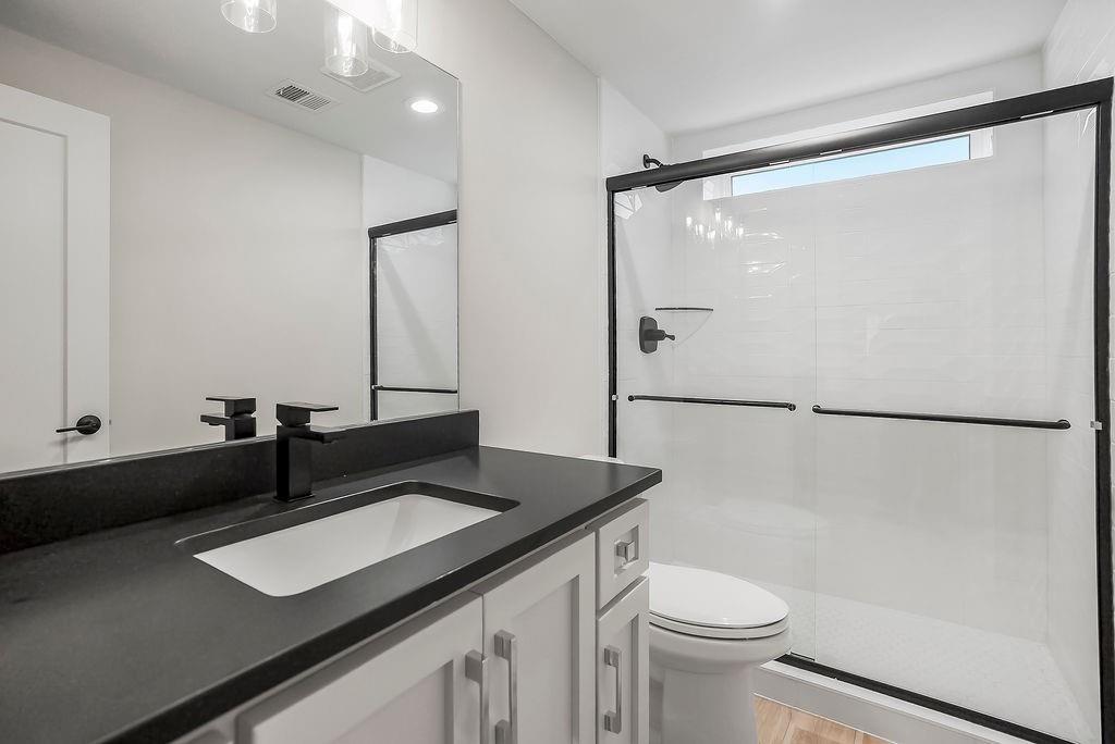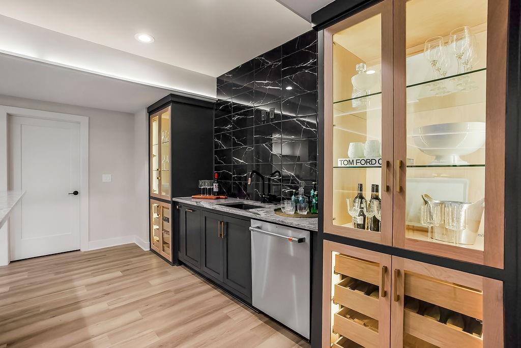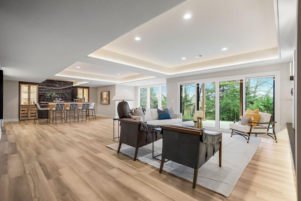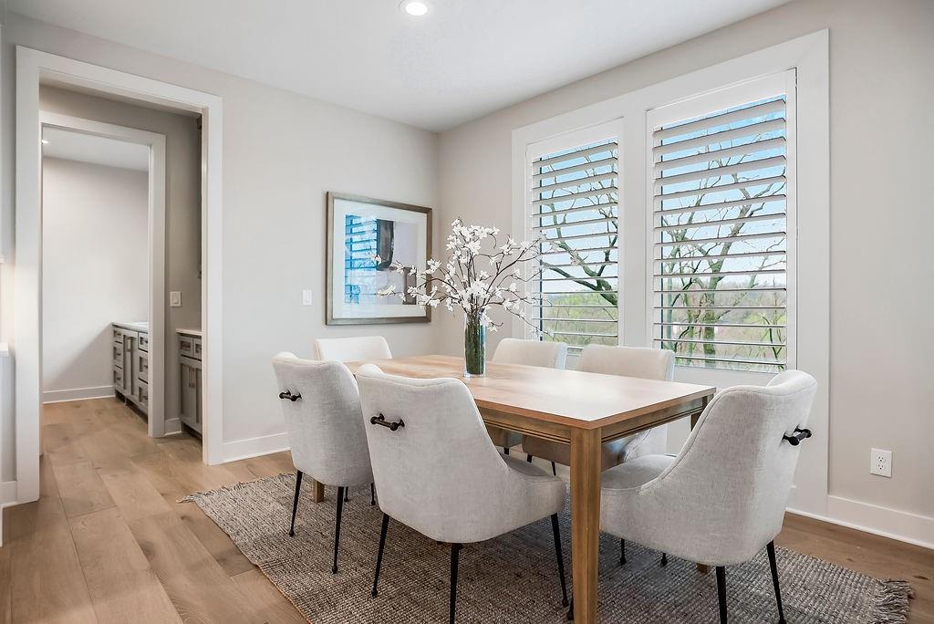 Like New and perfectly positioned on a premium lot backing to the award-winning Shadow Glen Golf Course, this stunning reverse 1.5-story home offers the ideal blend of luxury, comfort, and thoughtful design. With 5 bedrooms and 4 full baths, this home is crafted with beautiful details throughout. The main level features a spacious primary suite with a spa-like feel, complete with a walk-in closet that conveniently connects to the laundry room. Two additional bedrooms are located on the main level, including one with its own private bath—perfect for guests or a home office. The heart of the home showcases a large quartz-topped island, expansive pantry, and open living spaces designed for both everyday living and entertaining. The walkout lower level is an entertainer’s dream, featuring a full bar area, generous recreation room, plus two additional bedrooms and a full bath. You’ll also find two separate storage areas, including a storm shelter for added peace of mind. Step outside to take in sweeping golf course views overlooking Hole #5, creating a serene and picturesque backdrop. Whether hosting gatherings or enjoying a quiet evening at home, this property offers the perfect setting. Welcome home.
