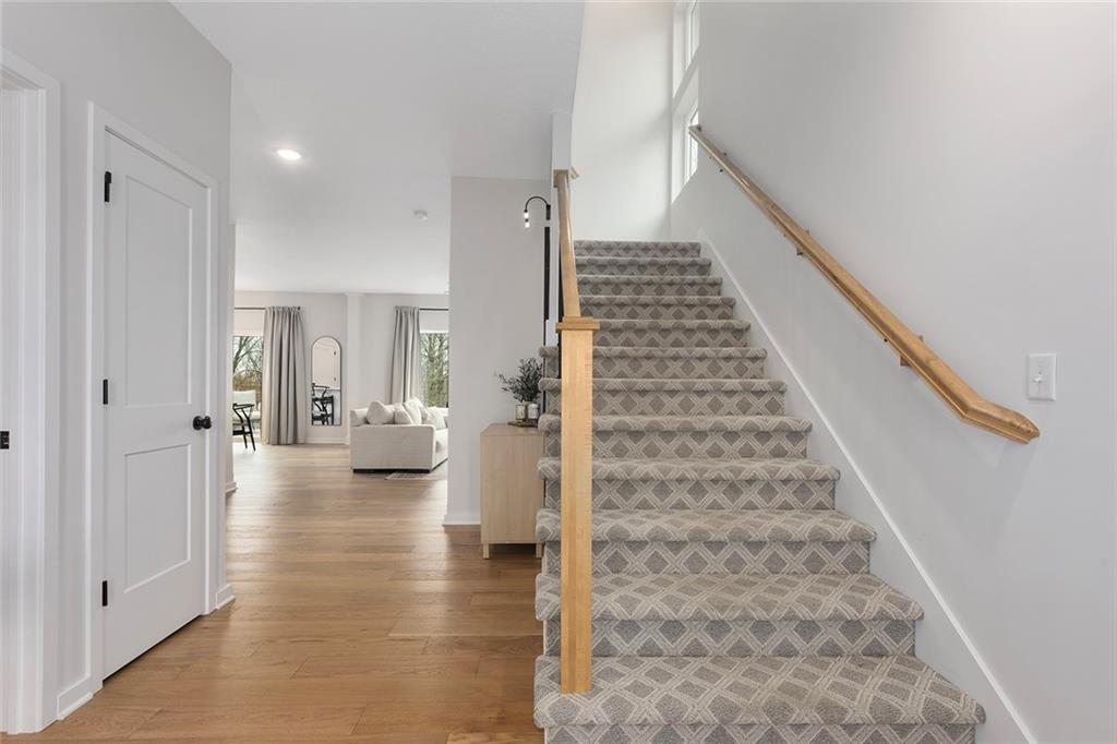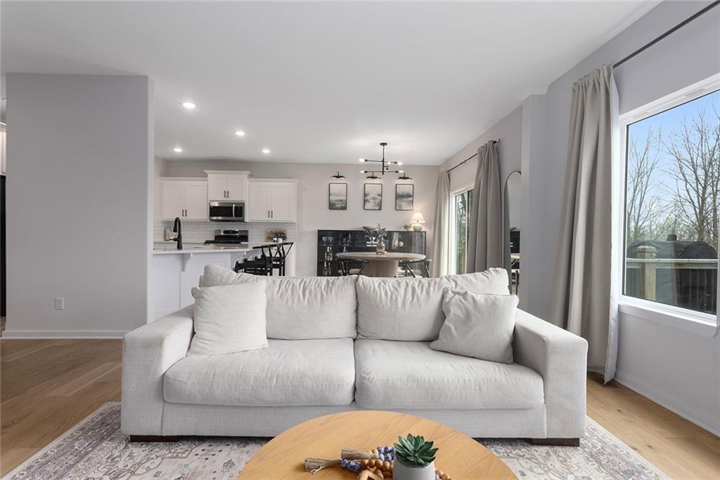 Tucked at the end of a quiet cul-de-sac like a hidden gem, this darling 3-year-old two-story home blends charm, comfort, and modern living in all the right ways. Step inside to an inviting open-concept main level where natural light spills across the space, creating the perfect setting for both everyday living and entertaining. The kitchen is a true standout, featuring ample cabinet space, a walk-in pantry, and room to gather, snack, and linger just a little longer. Upstairs, you’ll find three spacious bedrooms and two full bathrooms, offering plenty of room to spread out and unwind. The newly finished basement expands your living space even further with a cozy second family room and a fourth bedroom, perfect for guests, a home office, or whatever your lifestyle calls for. Bonus: plumbing is already stubbed, giving you the option to easily add a third bathroom down the road. Out back, the home really shines. Enjoy morning coffee or evening sunsets from the upper deck, or relax below on the covered patio that overlooks a peaceful wooded backdrop—your own private slice of nature. Located in the highly sought-after Staley School District and just minutes from the rapidly growing Metro North area, you’ll love the convenience of nearby shopping, dining, and entertainment with even more on the way. This one checks all the boxes—sweet, stylish, and set in a prime location.