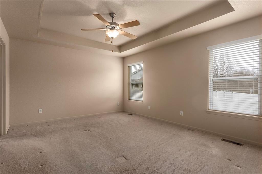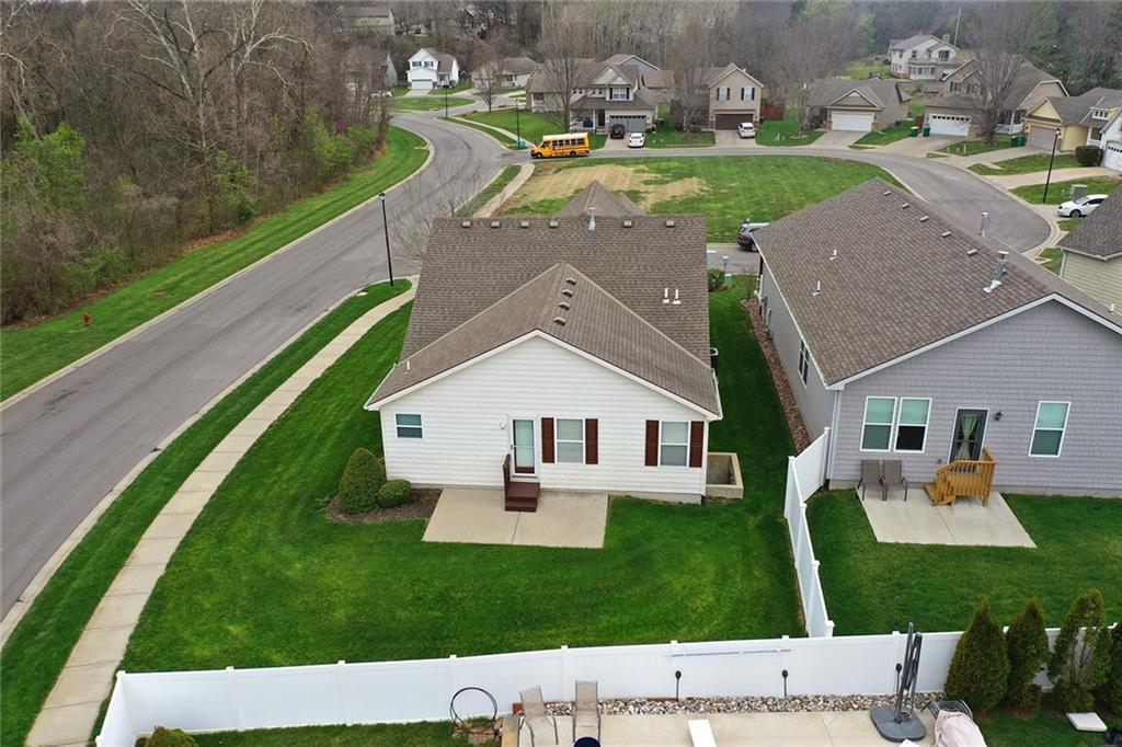 BEAUTIFUL! Such a lovely home! Cute corner lot on a cul-de-sac speaks of charm and meticulous care. Front steps lead up to a covered entry. The entry has a convenient coat closet. Straight ahead, the Great Room features a ceiling fan, stylish fireplace with circulating fan, lots of windows offering natural light, and modern light fixtures. To the left of the Great Room are two bedrooms: one with ceiling fan (the other is wired for one) and nice closets in both. Also, a full bathroom with tub/shower combo, and a linen closet. Stepping further in, past the dining space, is an awesome kitchen! Contrasting black appliances with white cabinetry, this space is well done. Island with storage, tons of cabinet space, and a well-laid-out pantry. Head out the back door from the kitchen to the stairs leading down to a lovely patio area, green space, and partial fencing. To the left of the kitchen is the master bedroom, spacious, with a ceiling fan and an en suite bathroom featuring a shower, and a large walk-in closet (6 ½ x 8) with a built-in safe for storing valuables. That’s the main floor! Head down the carpeted stairs to a grand, unfinished space just waiting to be created and used! Rough-in for a bathroom, a possible bedroom, and a bonus room. So many features here: reinforced joists, egress window, sump pump and backup sump pump, surplus emergency drinking water tank, tornado shelter, an April Air humidifier, an almost new high-end Goodman furnace, and almost new high-quality water heater. If that’s not enough, check out the garage! Here you will find an 8-foot door, high ceiling, hot-water sink, bright fluorescent lights, and a coated flaked epoxy floor that looks brand new. The garage door opener has recently been inspected and many parts updated/repaired. Outside, there is a programmable irrigation system to follow your schedule. HOA covers snow removal and common space maintenance. A REAL STUNNER! Come see it soon!