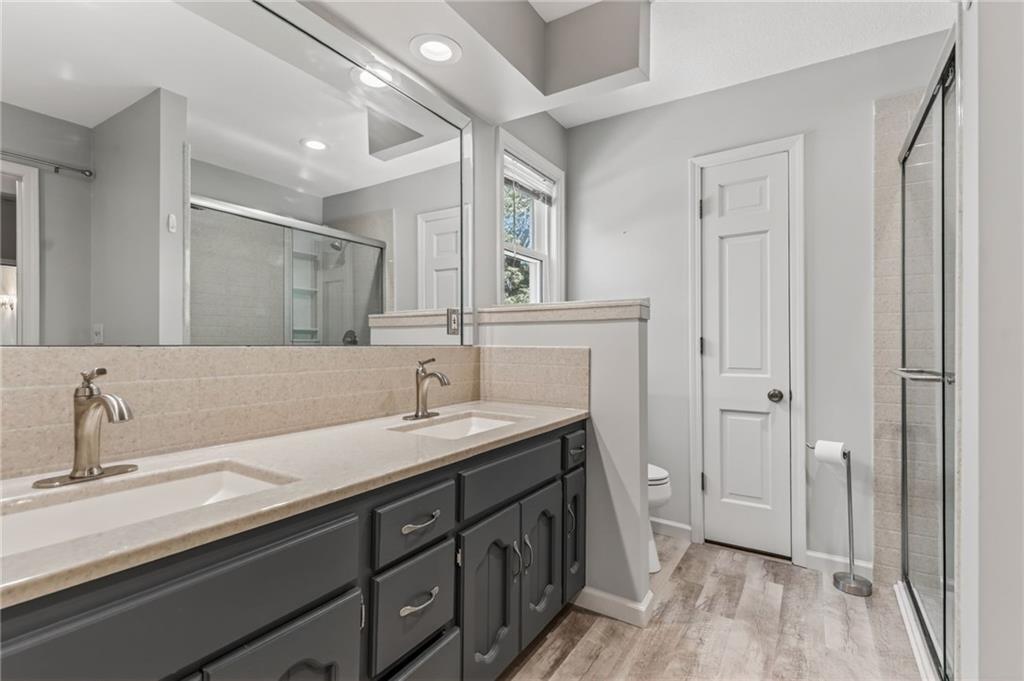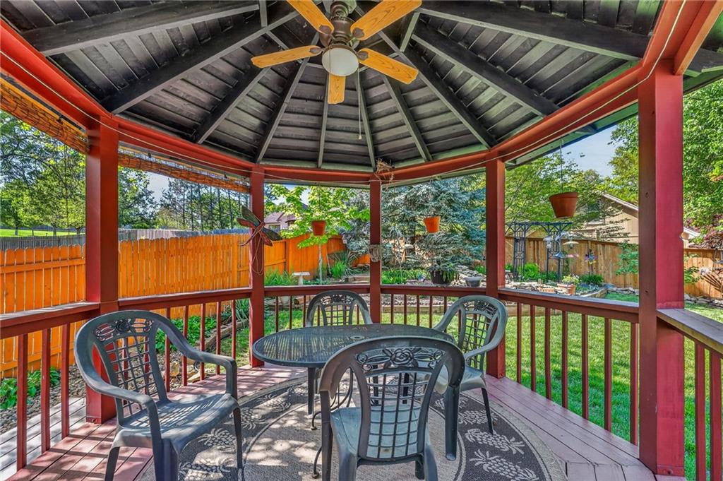 Beautiful 4-bedroom, 4 full bathroom 1.5-story home on a 0.29-acre corner lot in a cul-de-sac, just a short distance to the community pool. Step inside to the main level that features a spacious kitchen with bay window breakfast area, formal dining with vaulted ceilings, a cozy hearth room with fireplace and skylights, convenient laundry, plus 2 bedrooms and 2 full bathrooms. A show-stopping great room with soaring vaulted ceilings, a dramatic wall of windows, and a curved staircase leading to a balcony above. Upstairs, the private primary suite offers a spa-like feel with a large walk-in closet, tall ceilings and unique loft space, while the second bedroom includes its own en suite bath. Enjoy your own backyard retreat with a fully fenced yard, gazebo with electricity and ceiling fan, and French drains for added peace of mind. Style, space, and standout details at every turn. From its eye-catching design to its inviting outdoor spaces, prime cul-de-sac setting, and walkable access to community amenities, this home blends comfort, style, and practicality into one unforgettable package.