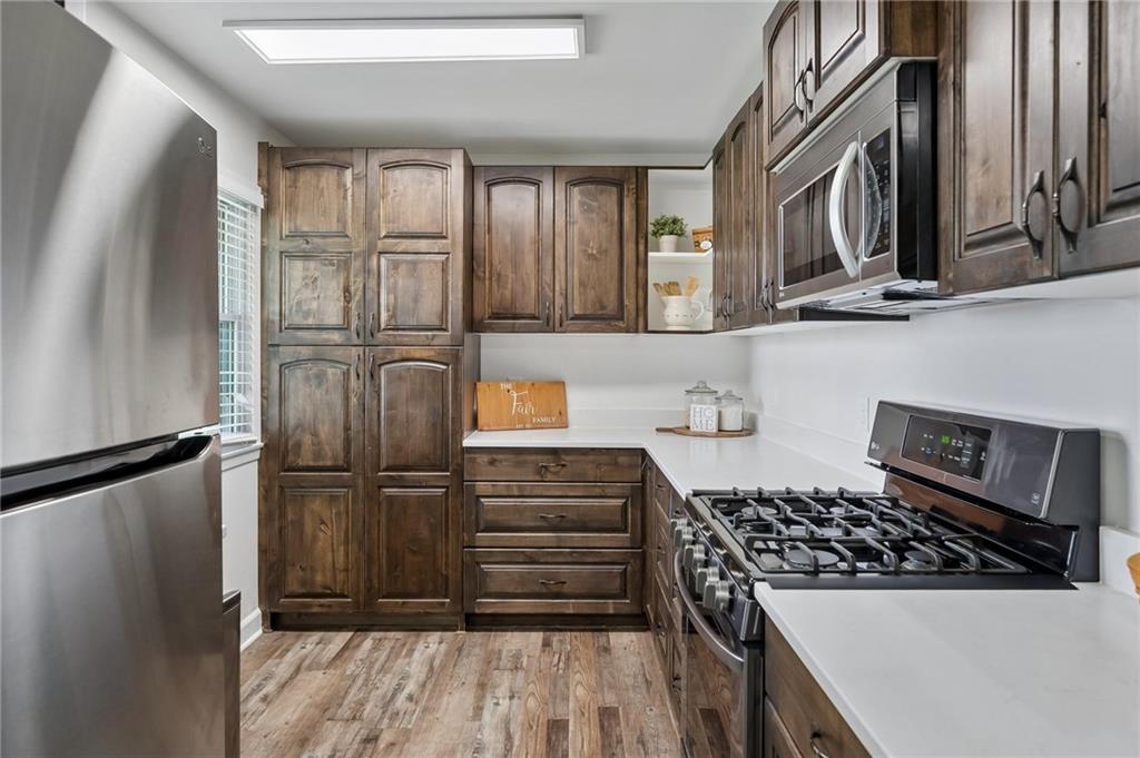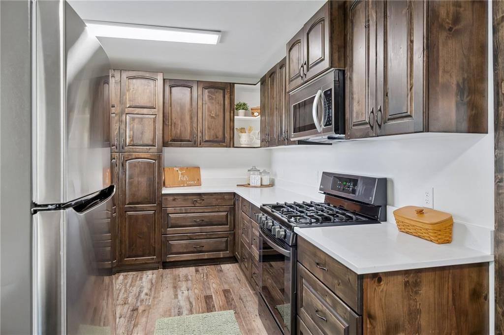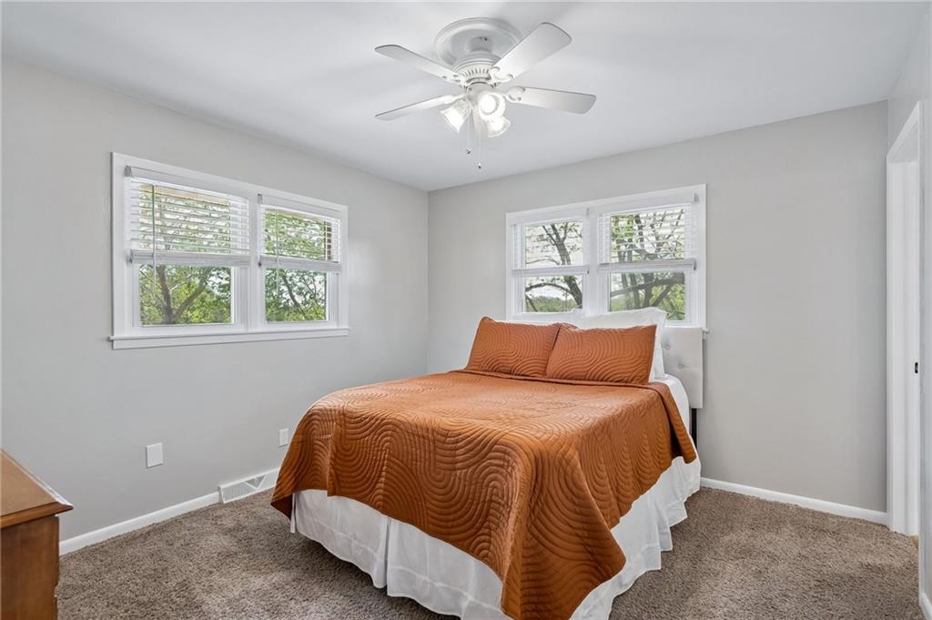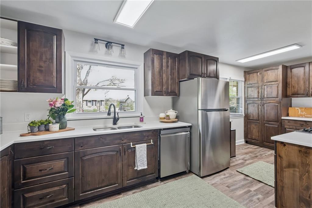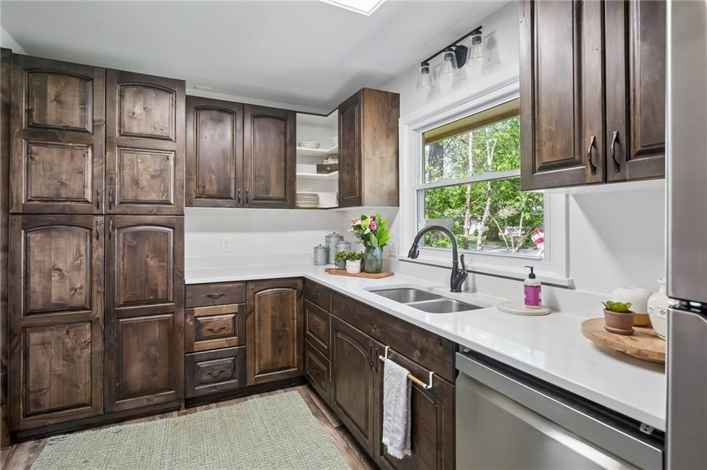 Welcome home to this beautifully maintained 3-bedroom raised ranch, perfectly situated on a desirable corner lot in a well-established, mature neighborhood. Offering both comfort and functionality, this home features 2 full bathrooms and a spacious 2-car side-entry garage, providing ample room for everyday living. Step inside to a warm and inviting great room highlighted by a charming brick fireplace—perfect for cozy evenings. The kitchen is a standout, showcasing custom cabinetry that blends style and practicality, ideal for both cooking and entertaining. The primary suite offers a private retreat with its own full bath, designed for comfort and convenience. Main bath has been partially remodeled with new tub. New hot water heater and humidifier. Downstairs, the finished walkout level expands your living space, opening to a covered deck above and a patio below—perfect for enjoying the outdoors in any season. Additional features include new patio door, a large driveway for extra parking, a fully wood fenced backyard for privacy and play, and the added bonus of no HOA restrictions. Located within the highly sought-after Liberty School District, this home combines location, space, and value. Don’t miss your opportunity to own this exceptional property in a fantastic neighborhood!