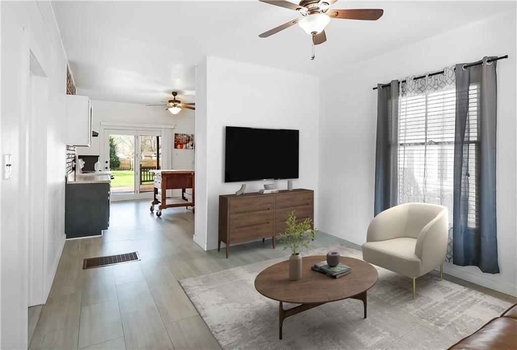 Great for first-time buyers or those looking to downsize! This cute 2-bedroom home offers one-level living with an attached garage. The pearl of the home is the spacious backyard, complete with a 6-ft privacy fence—perfect for relaxing or entertaining. Rear parking, a storage shed, all on a large lot. All appliances stay, and the eat-in kitchen adds to the home’s charm. Newer heating and cooling systems provide added comfort and peace of mind. Ideally located near the Harrisonville Square, parks, and schools.