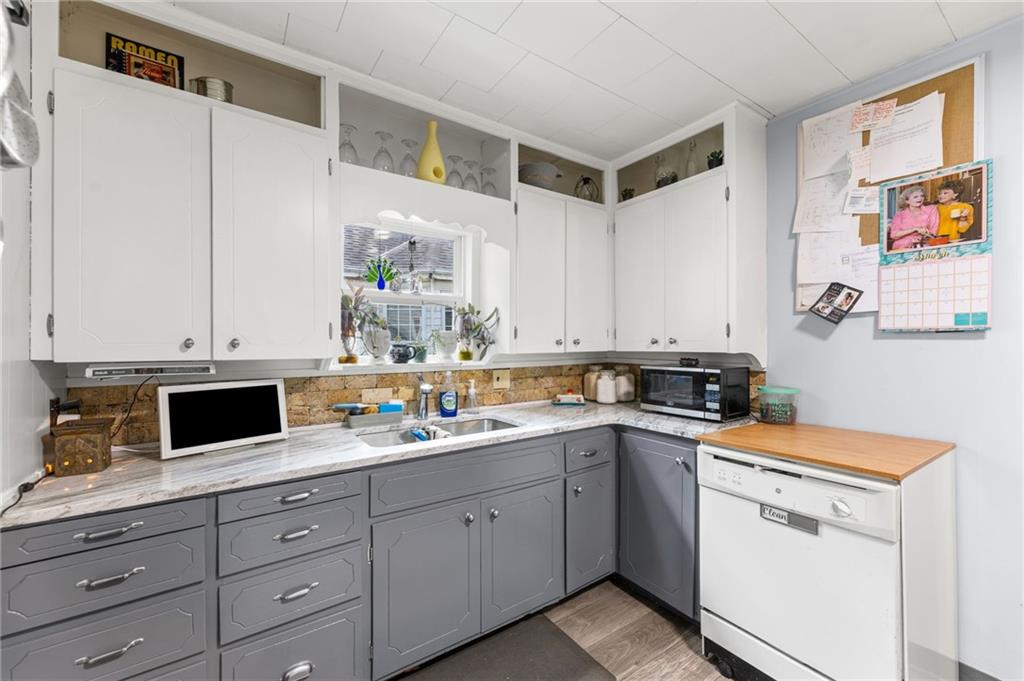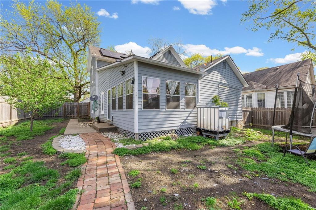 This stunning 4 bedroom, 2 bathroom home perfectly marries historic charm with modern sustainability, offering a rare opportunity to own a piece of architectural beauty. From the moment you step inside, you are greeted by the warmth of original woodwork, gleaming hardwood floors, and a magnificent original staircase that serves as a focal point of the home. The main level features a sprawling living room centered around a cozy gas fireplace, flowing seamlessly into a formal dining room designed for memorable gatherings. The kitchen is a chef's delight, boasting freshly painted cabinetry complemented by elegant new granite countertops. For year-round enjoyment, the sundrenched four-seasons room provides the ideal backdrop for entertaining guests or finding a quiet moment of repose. Practicality meets innovation with the inclusion of a newer HVAC heat pump and solar panels, ensuring exceptional energy efficiency and lower utility costs, including newer windows. The floor plan is thoughtfully designed for flexibility, offering a convenient main-floor bedroom while the upper level houses three additional spacious bedrooms and a full bathroom. Outside, the property continues to impress with a 2 car detached garage and a privacy fenced yard that offers a secluded oasis for relaxation. Situated in a prime location, this home is just a short stroll from the vibrant and historical Paola Town Square, where you can enjoy local shops, dining, and a variety of community events held throughout the year. This property isn't just a house; it's a lifestyle upgrade nestled in the heart of a charming community.