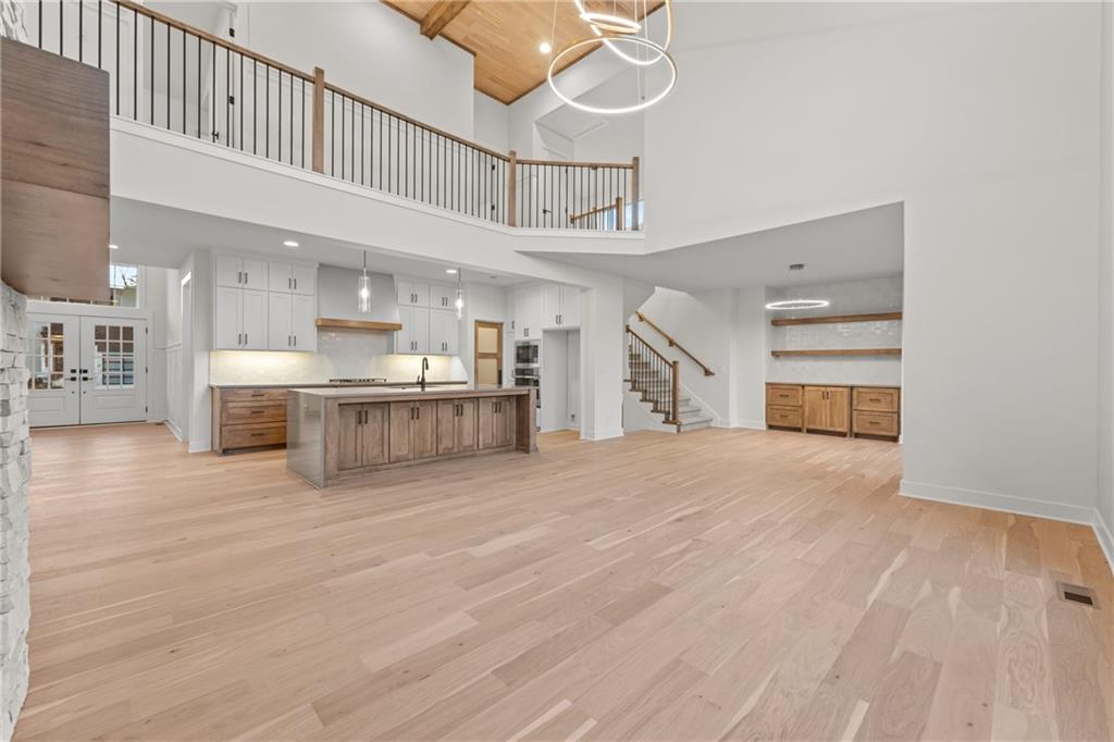 The Rosedale 1.5 Story plan with tandem 4 car garage, by SAB Homes is underway for a Sept. MOVE IN on lot #208 with large back yard trees. Beautiful modern farmhouse interior selection with light wood, white walls, mossy green accents, black and gold hardware and wood accent. Upgrades include celling beams, hallway wainscoting, white quartz and freestanding tub, front double doors with glass windows, large 14' patio along the back side of the house connecting the dining room to the primary suite, plus a covered patio. Pocket laundry in the primary closet and a full 2nd laundry upstairs by the bedrooms. This home has it all with a grand two story great room, main floor primary bedroom, office or formal dining room space, 3 bedrooms upstairs and a 2nd laundry. Striking curb appeal with stucco exterior, wood shutters, warm wood accents and real stone trim. Optional finished basement with 1164 additional square feet can be added with a 5th bedroom/ fitness room/ hobby space or extra office. There is still time to make your custom design selections. *This home is currently UNDER CONSTRUCTION and photos are from a previous home* Century Farms has a spectacular clubhouse with a fitness center, resort style swimming pool with a slide. There are plenty of neighborhood activities with a fire-pit, two pickle-ball courts and a basketball, kids play area, wildflower walkways and community garden. Century Farms is conveniently located near the brand new Bluhawk shopping center, Heritage Park, the Johnson County Trail system and the Overland Park Arboretum. Come join the fun in Century Farms, a unique one of a kind upscale new home community in Overland Park. BLUE VALLEY SCHOOLS