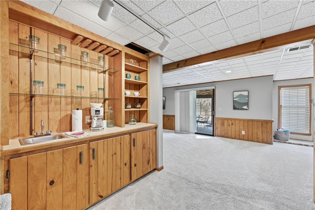 Experience refined living in this exceptional 1.5-story residence nestled in the sought-after Rolling Woods community of Blue Valley North. Boasting 5 spacious bedrooms, each with its own walk-in closet, this home offers both elegance and functionality at every turn. The beautifully appointed kitchen, with a breakfast area looking out over the back yard, features abundant cabinetry, a pantry, new countertops and flows effortlessly into a warm and inviting family room. Step outside to an expansive deck overlooking a private, picturesque backyard, perfect for upscale entertaining or quiet evenings at home. The finished walk-out lower level is an entertainer’s dream, complete with a generous recreation space, fifth bedroom, and full bath, ideal for guests or multigenerational living. Formal living and dining rooms provide timeless sophistication. Walls of tall windows bathe the home in natural light, enhancing its airy, open feel. With approximately 3,743 square feet, main-level laundry, and included appliances, this home offers both luxury and convenience.