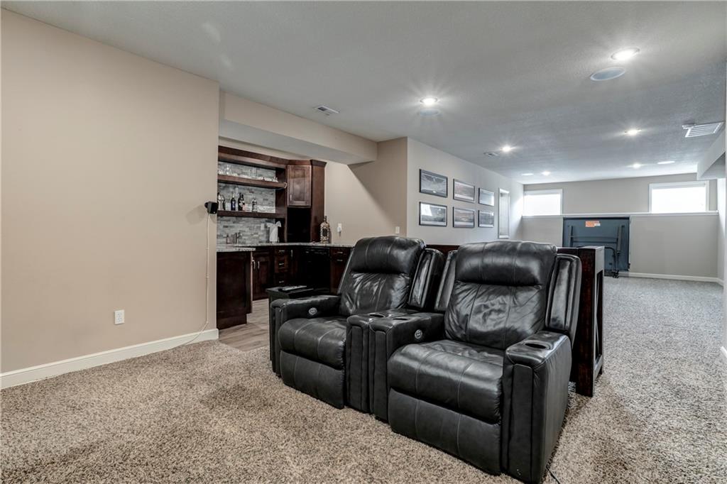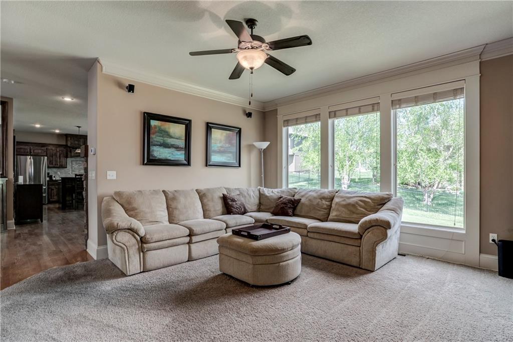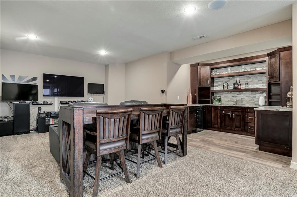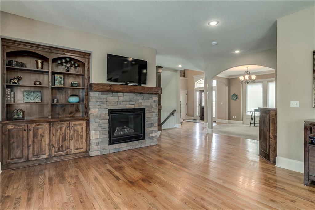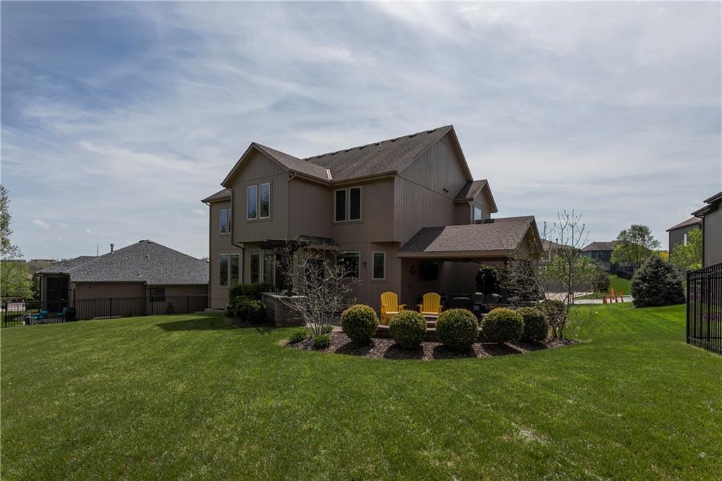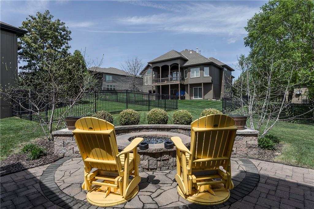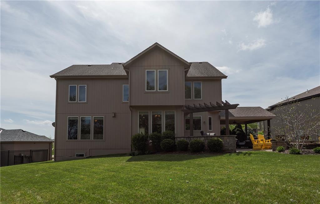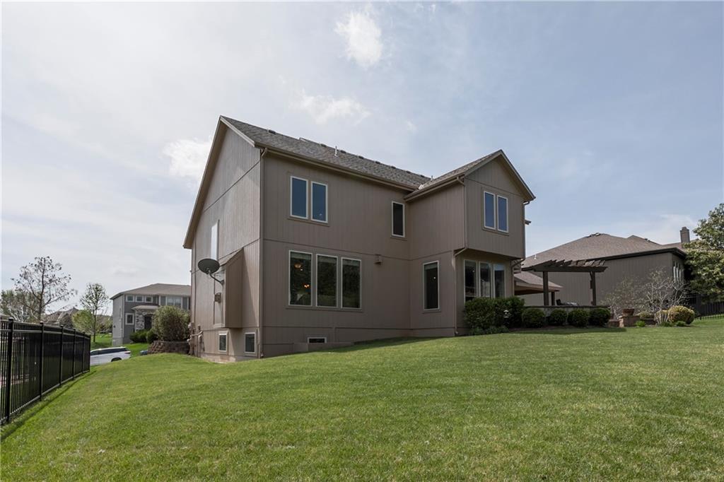 Tucked into Falcon Valley just off K-10, this four-bedroom home has a layout that simply works. Warm wood tones carry through the main level, the open floor plan makes entertaining feel effortless, and the kitchen anchors it all — oversized island, granite countertops, and a walk-in pantry built for real life. Fresh interior paint throughout means move-in ready without the project list. Upstairs, the primary suite is a genuine retreat — a sitting room, his-and-hers sinks, and a walk-in closet that finally has enough space. Three additional bedrooms offer flexibility for a home office, guest room, or however your household actually lives. The finished basement is where the fun lands — a generous entertaining space and a wet bar ready for game day or any good reason to have people over. Step outside to a covered patio, fire pit, and a backyard large enough to make you the first to volunteer as host. The oversized garage handles everything that goes with an active lifestyle. All of this on a quiet cul-de-sac in the heart of Lenexa — neighborhood feel, with easy highway access when you need it.