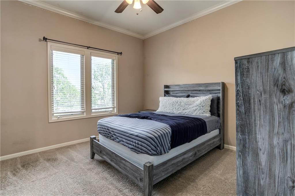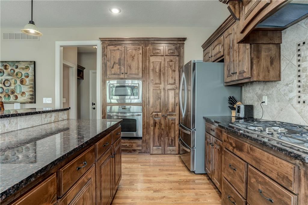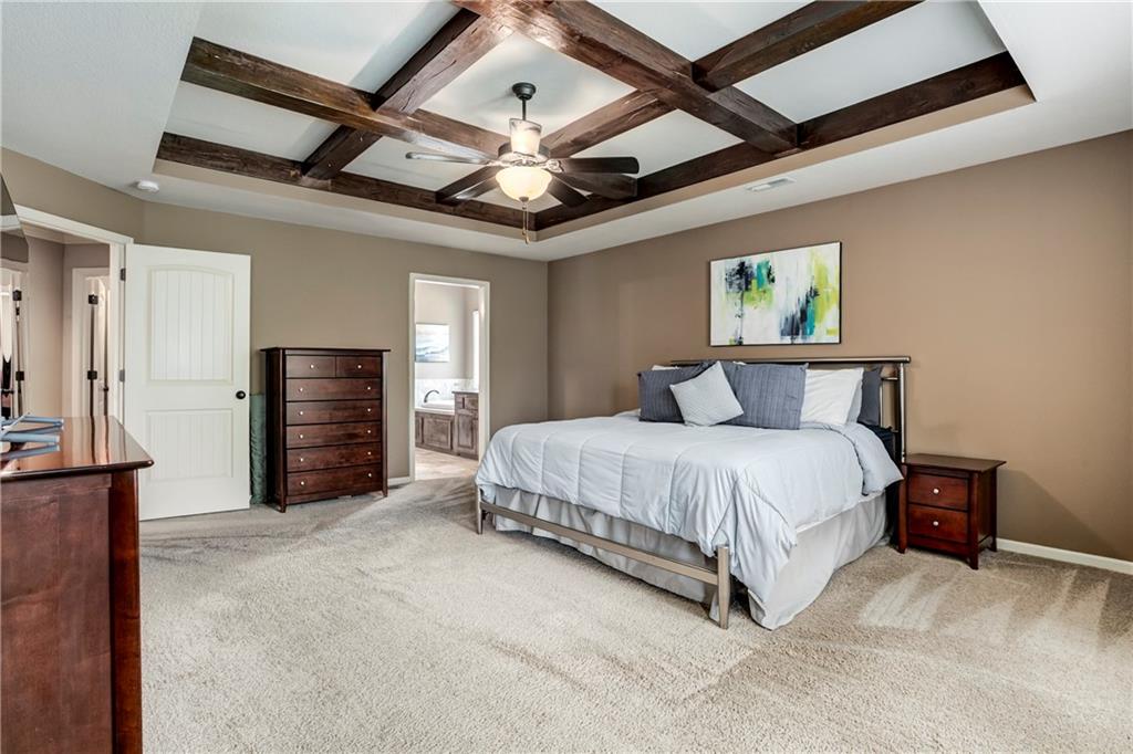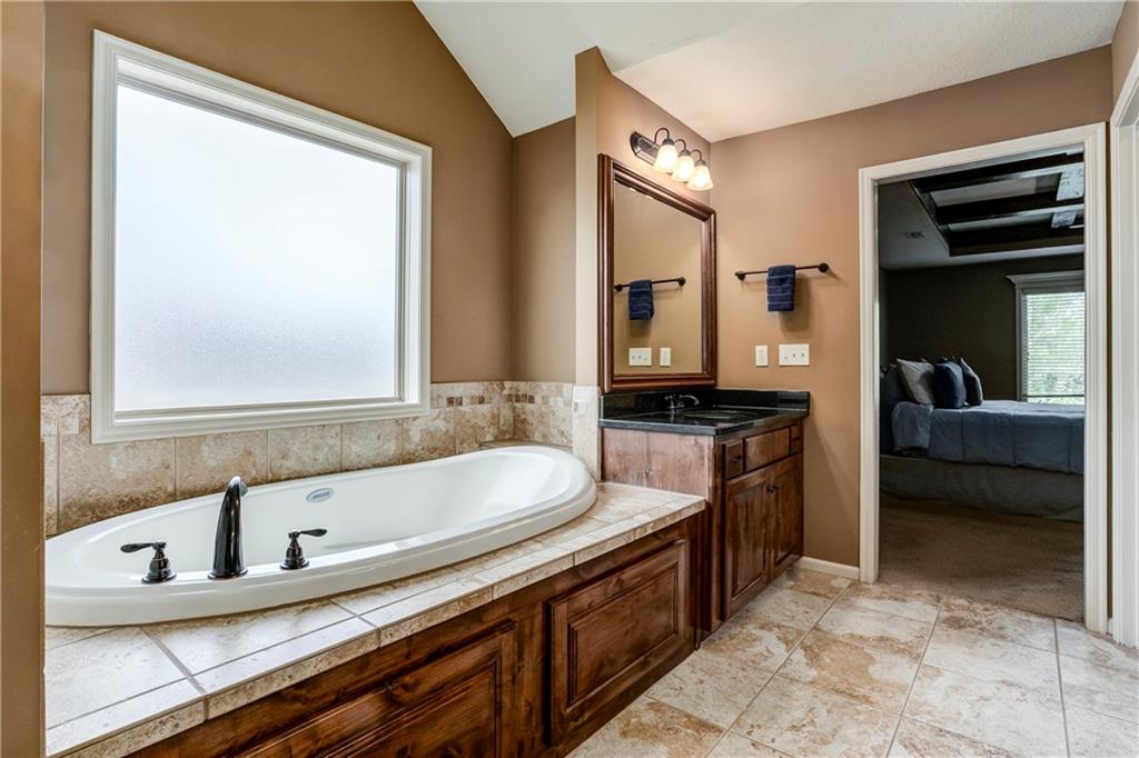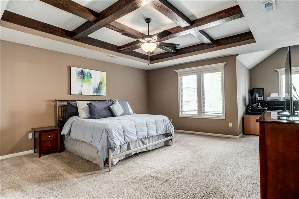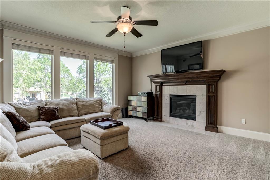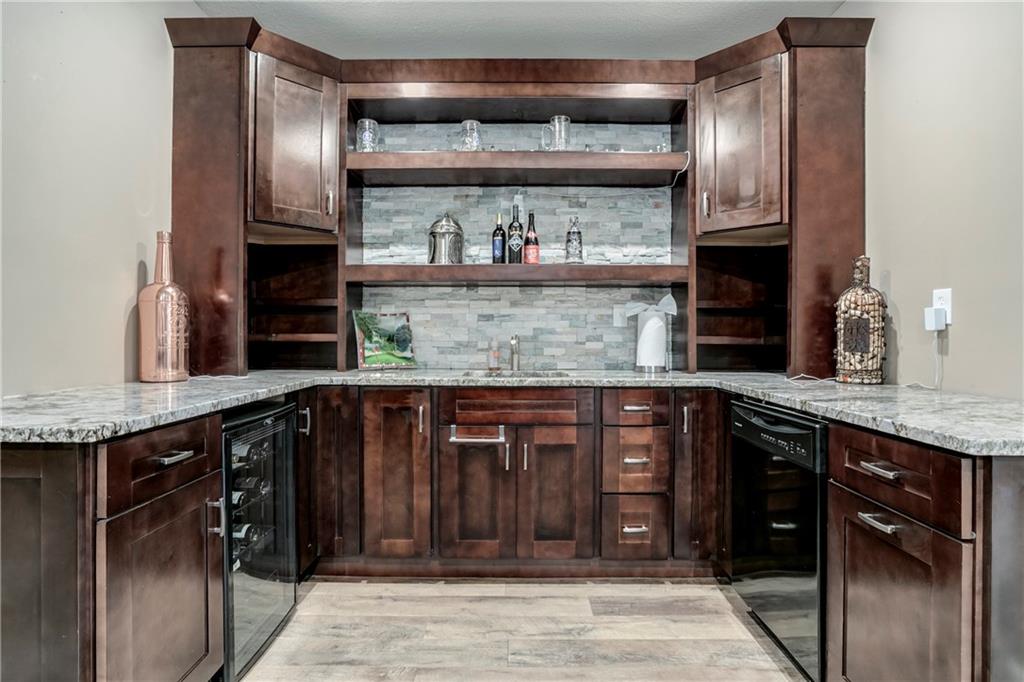 Tucked into Falcon Valley just off K-10, this four-bedroom home has a layout that simply works. Warm wood tones carry through the main level, the open floor plan makes entertaining feel effortless, and the kitchen anchors it all — oversized island, granite countertops, and a walk-in pantry built for real life. Fresh interior paint throughout means move-in ready without the project list. Upstairs, the primary suite is a genuine retreat — a sitting room, his-and-hers sinks, and a walk-in closet that finally has enough space. Three additional bedrooms offer flexibility for a home office, guest room, or however your household actually lives. The finished basement is where the fun lands — a generous entertaining space and a wet bar ready for game day or any good reason to have people over. Step outside to a covered patio, fire pit, and a backyard large enough to make you the first to volunteer as host. The oversized garage handles everything that goes with an active lifestyle. All of this on a quiet cul-de-sac in the heart of Lenexa — neighborhood feel, with easy highway access when you need it.