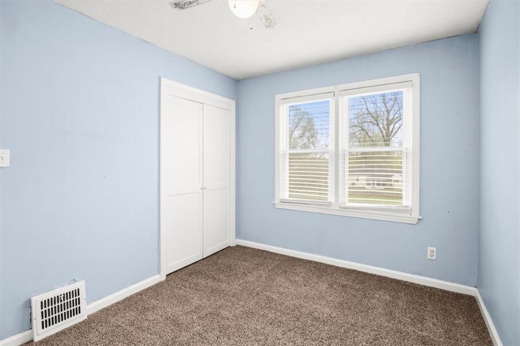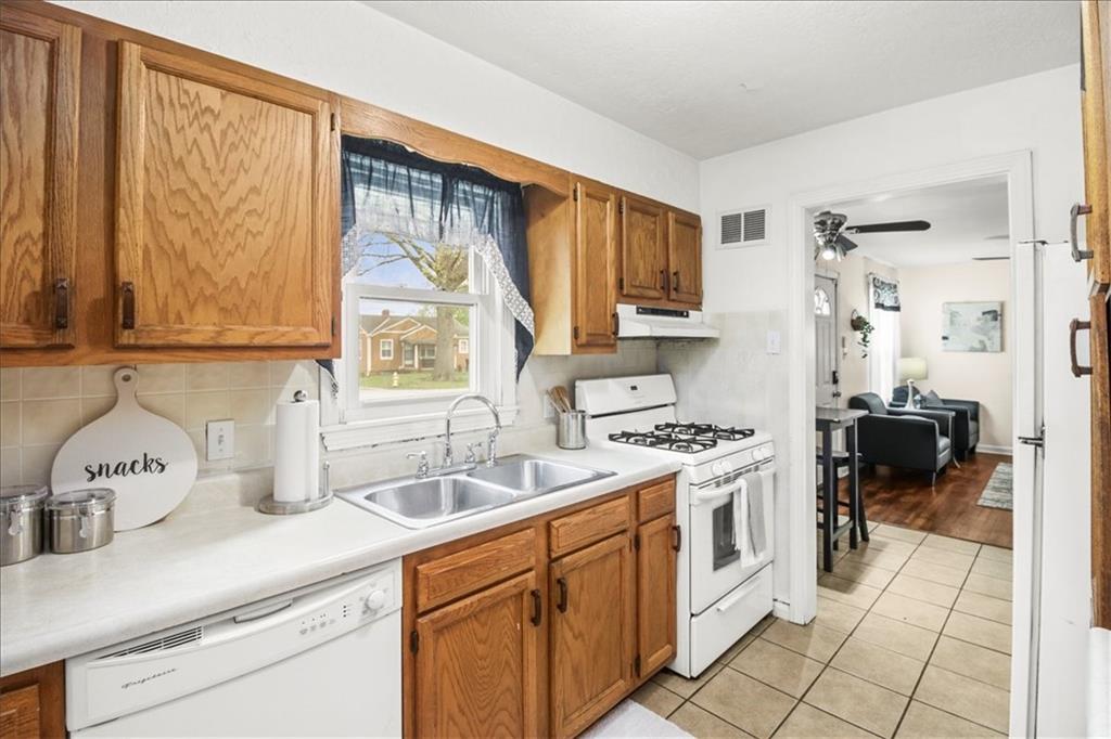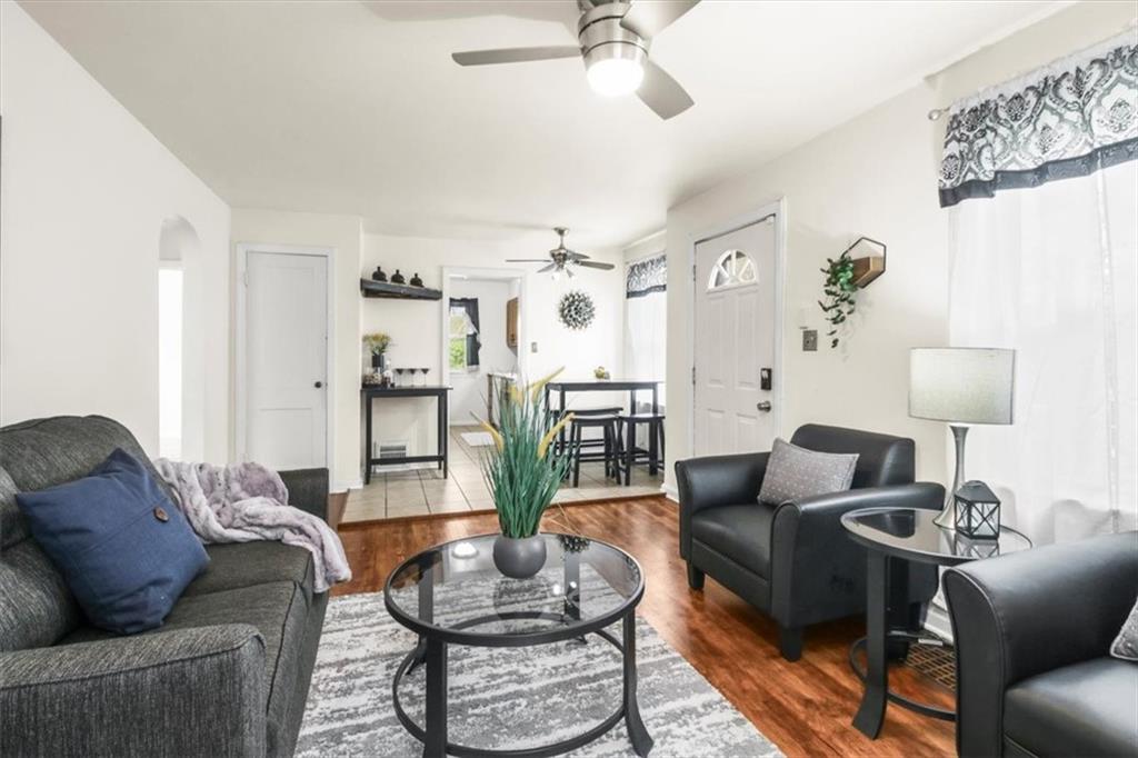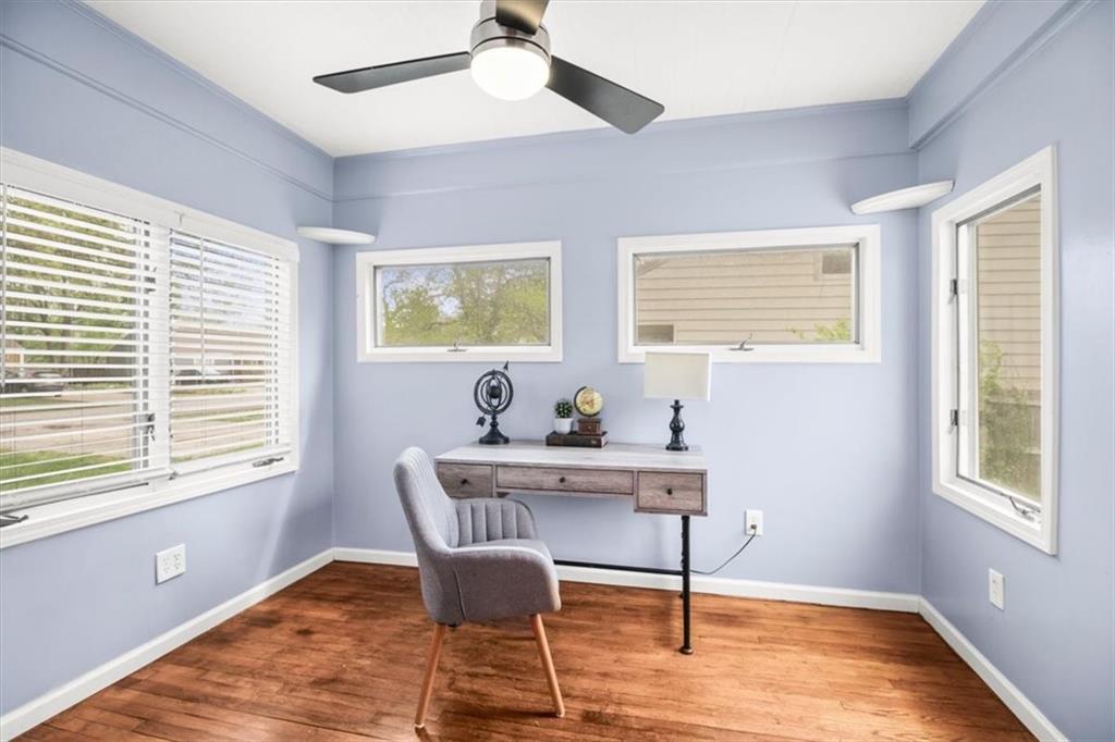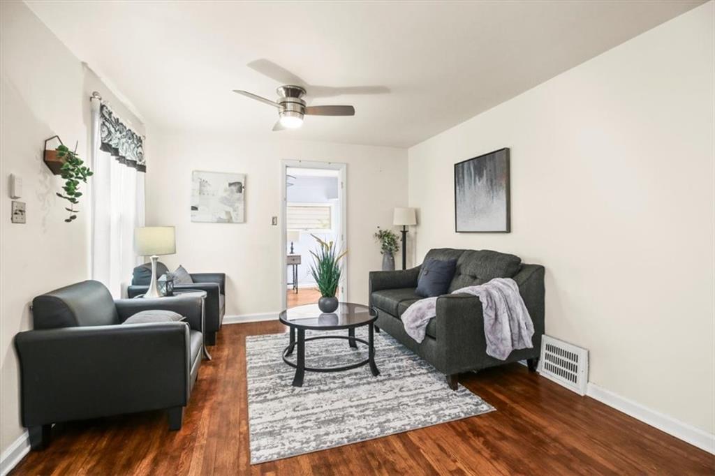 Step into this beautifully refreshed ranch-style home, where classic mid-century character meets thoughtful modern updates. The inviting living room welcomes you with rich hardwood floors and abundant natural light, flowing effortlessly into a functional dining space perfect for morning coffee. In the kitchen, you’ll find timeless wood cabinetry and ample counter space, featuring a large window that offers a pleasant view of the front neighborhood. This layout is designed for easy living, offering a versatile home office with high-set windows and a cozy primary bedroom that serves as a quiet retreat. The updated bathroom shines with a contemporary dark vanity and crisp white tile, while the expansive unfinished basement provides a massive footprint for storage, a home gym, or a future workshop. Situated on a generous level lot, the property features a large concrete patio ideal for weekend gatherings and a vast backyard ready for gardening or play. Practicality is built-in with an attached garage and a deep driveway for plenty of off-street parking. Located in an established community with quick access to local parks and city amenities, this home offers a fantastic balance of space and style. This move-in-ready gem is a perfect find for those seeking a solid, well-maintained residence with room to truly make it your own.