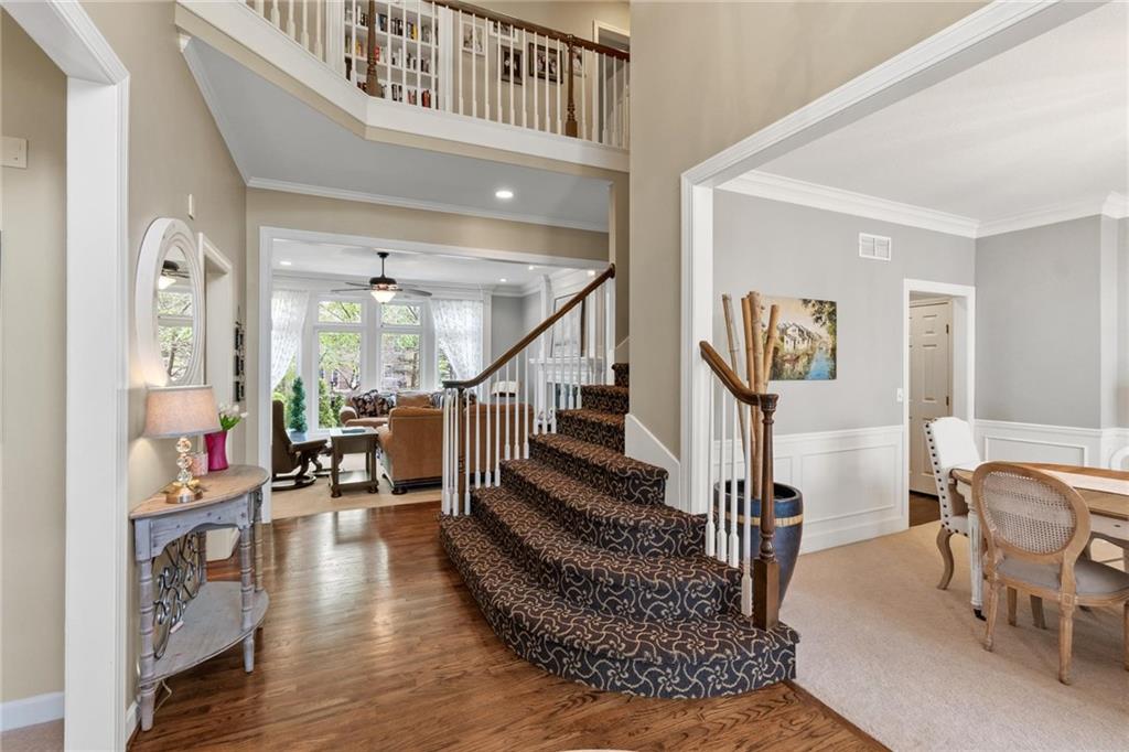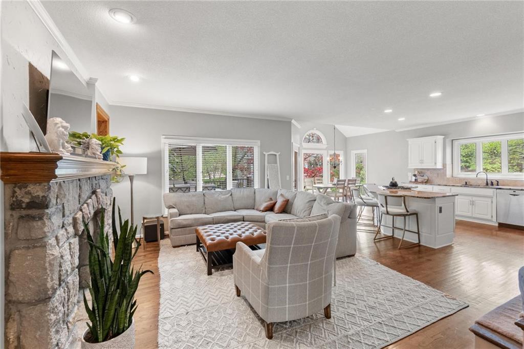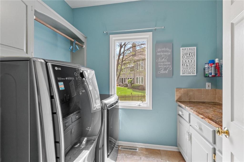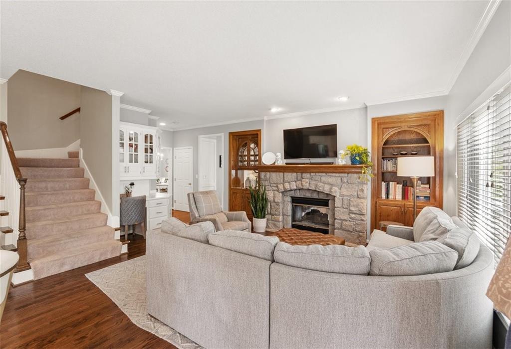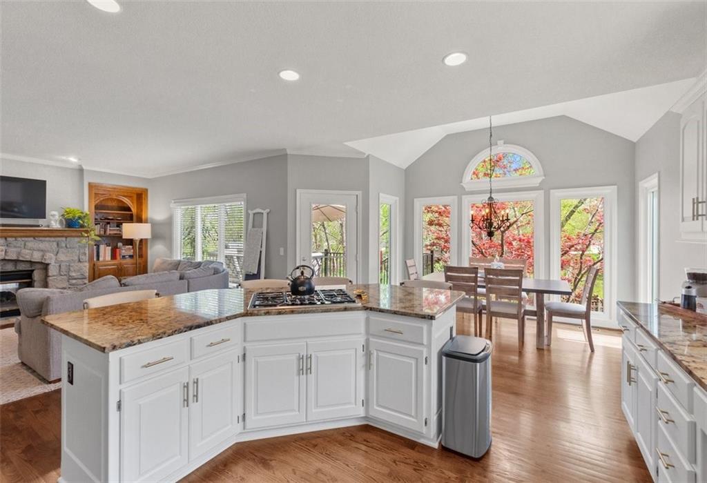 Prestigious neighborhood, quality built Lambie Geer 2 story, with finished walkout lower level, to wood fenced, treed, yard in a cul de sac. New maintenance free deck and new triple pane windows. Double stairs, zoned HVAC. Formal living, formal dining, main floor office. Beautiful powder room. Formal living room has tons of natural light and a charming wet bar. Large kitchen with center island, breakfast room and hearth room with stone fireplace. Granite, Bosch stainless steel appliances. Gorgeous primary bath and large primary with walk in closet. Look close & see the quality, pride, & SPACE!! Award winning Blue Valley schools. AWESOME LOCATION Awesome home in prestigious neighborhood. New Roof coming soon.