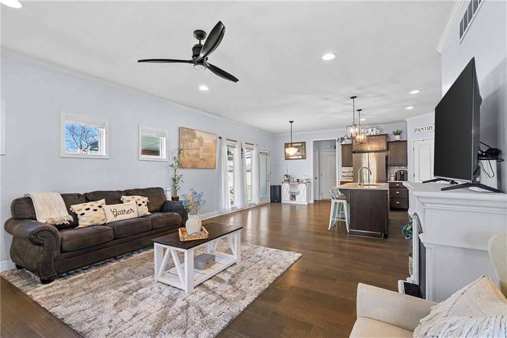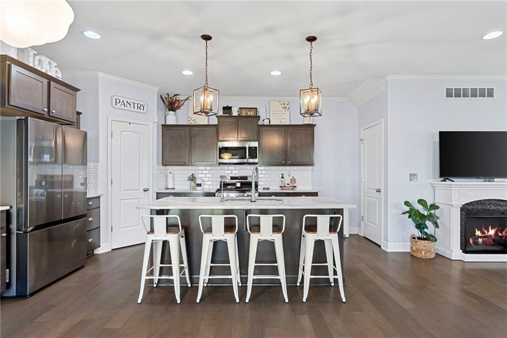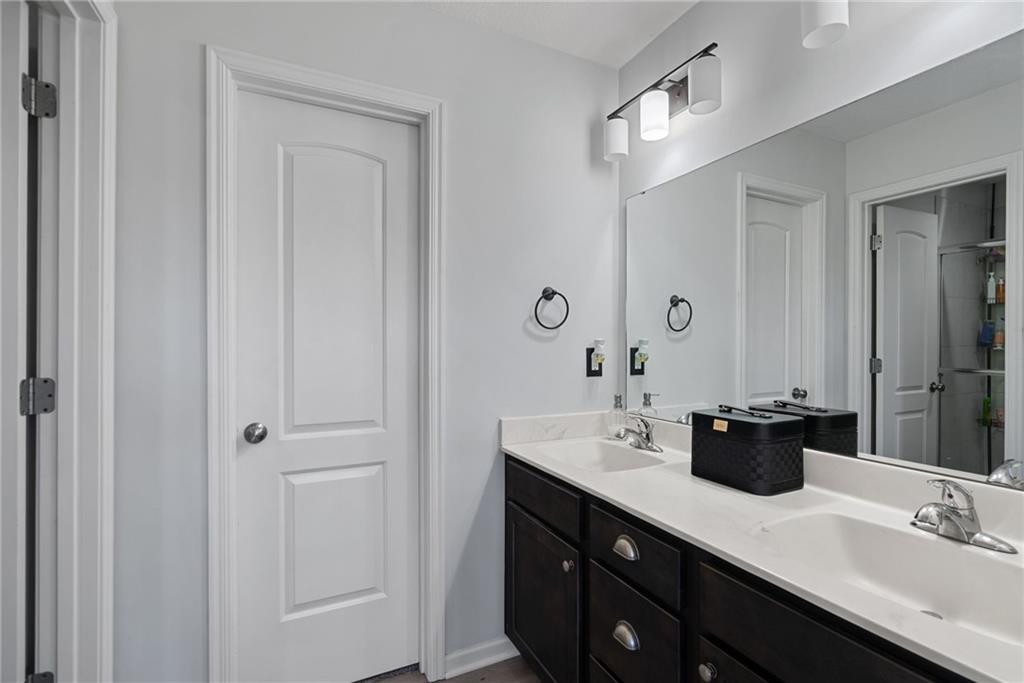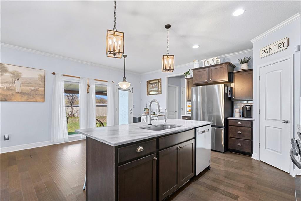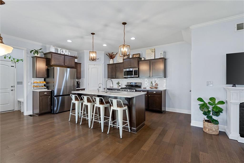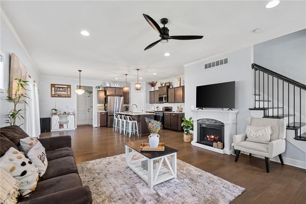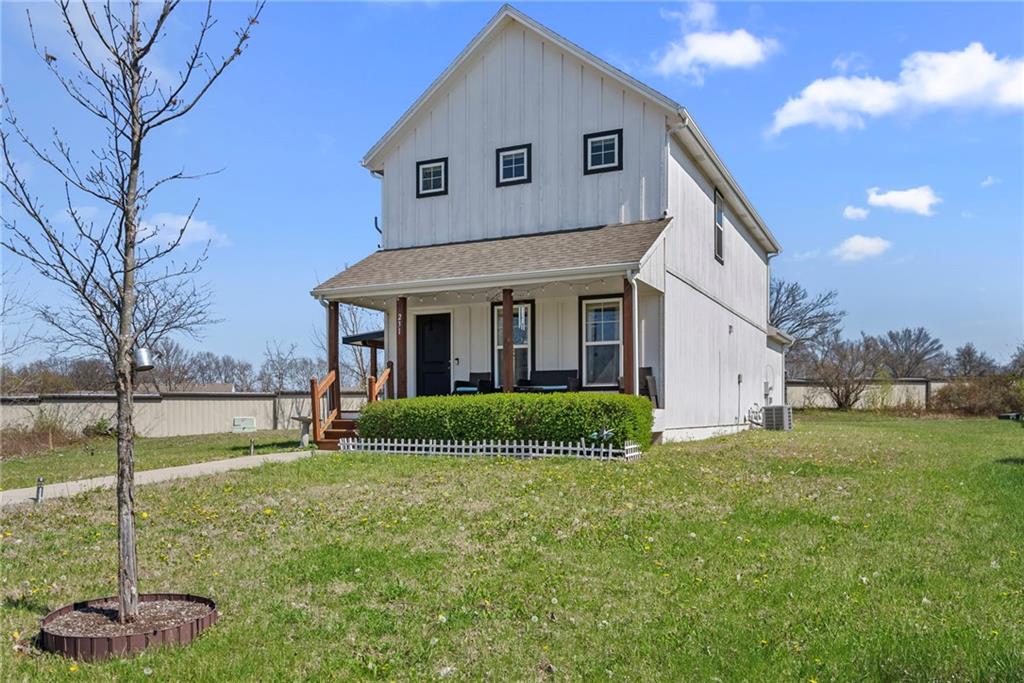 Welcome to this beautifully updated farmhouse-style two-story home, situated on a spacious lot with a charming front porch, rear-entry attached two-car garage, and a driveway accommodating up to six vehicles. Recent improvements include a new covered patio and updated stairs. The open main level offers fresh paint, abundant natural light, crown molding, and a well-appointed kitchen featuring granite countertops, an island, and a walk-in pantry. The second floor includes three bedrooms, two full baths, and a convenient laundry room. The primary suite features a double vanity and a large walk-in closet. Located at the end of a quiet street in a newer neighborhood with excellent highway access, this home is truly a must-see.