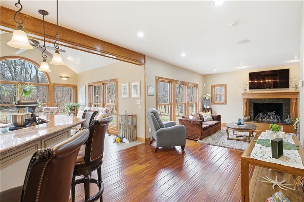 Welcome to your Dream Retreat in Columbia, Missouri! Nestled on 26 breathtaking acres, this one-of-a-kind property offers the perfect balance of luxury living and outdoor recreation. The land features a stocked private lake complete w/ islands and bridges, creating a stunning centerpiece that feels like your own private resort. Property is loaded w/ deer and turkey, making it an exceptional retreat for wildlife lovers and outdoor enthusiasts. The 7,500 sq ft custom home has been meticulously cared for and is filled w/ high-end features throughout. From the granite entryway, you’ll appreciate the craftsmanship and attention to detail, including hand-scraped teak floors, a stunning curved staircase, and 2 fireplaces. The home offers 4 spacious bedrooms and 5 bathrooms, along with a quiet study, large office space, abundant storage, and an attached three-car garage. The fantastic kitchen is built for both everyday living and entertaining, featuring a Wolf gas stove, high-end appliances, a hidden pantry, and generous storage space throughout. Just off the main living area, the sunroom provides the perfect place to relax and watch the wildlife, overlooking the incredible scenery this property has to offer. The luxurious master suite includes a spa-like bathroom equipped with heated floors, TV, coffee maker, and refrigerator, as well as a large walk in closet. The finished basement is designed for entertaining, featuring a spacious entertainment area along with a bar and small kitchen, making it the ideal place to host guests, watch the big game, or unwind after a long day. Outside, the property also includes a large two-story outbuilding with potential living quarters, providing endless possibilities for guests, a workshop, or additional storage. This rare 26 +/- acre estate truly offers the best of both worlds - a private retreat with incredible scenery, wildlife, and recreation located just 7 miles from downtown Columbia. Opportunities like this are incredibly rare!