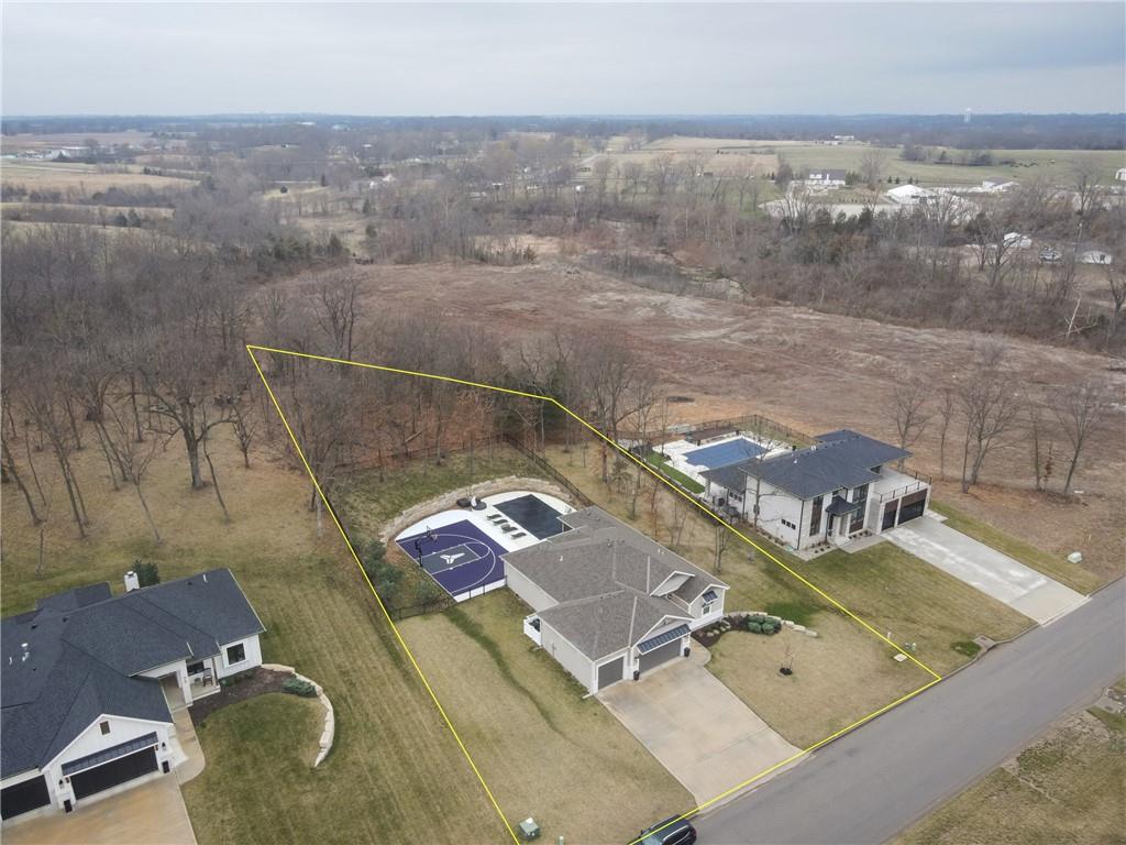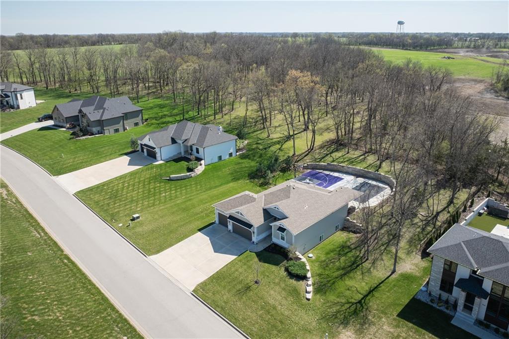 Experience resort-style living in this stunning 4.5-year-old reverse ranch with 4 bedrooms & 3 bathrooms with upscale finishes and exceptional amenities throughout. Designed for both everyday comfort & elevated entertaining, this home truly has it all. Step outside to your private oasis featuring a heated saltwater/chlorine pool complete with a built-in basketball goal, expansive outdoor kitchen with premium Blaze appliances & a half-court sport basketball court—perfect for hosting or relaxing in style. Inside, the main level showcases real 5” hardwood floors & a chef’s kitchen outfitted with top-of-the-line Café appliances, including an Advantium oven. A spacious walk-in butler’s pantry provides additional cabinetry & a beverage refrigerator for ultimate convenience. The finished basement is an entertainer’s dream, featuring a full-size bar with a built-in kegerator. The luxurious primary suite is a true retreat, boasting heated bathroom floors, dual shower heads including a rain feature, tall ceilings with a marble accent wall & a TV positioned above the soaking tub for added relaxation. The oversized walk-in closet includes a built-in dresser, custom shelving, and three-tiered hanging rods. Additional highlights include a functional mudroom off the garage, enhanced interior and exterior lighting, generously sized bedrooms with walk-in closets, and premium finishes throughout. Situated on over ¾ of an acre, the property offers a picturesque setting with mature trees, green space, and a striking stone wall. Enjoy exclusive access to the lake with a community dock slip and available lift lease, plus the added benefit of 2026 HOA fees covered for the new owner. The neighborhood enhances the lifestyle with amenities including a park, walking trails, pickleball and tennis courts, a yacht club & an upcoming community pool & clubhouse. Don’t miss this rare opportunity to own a home that perfectly blends luxury, recreation, and tranquility. *Owner/Agent*