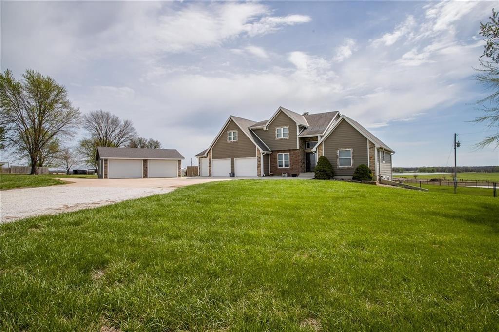 I-49 to Archie exit, East on B hwy, South on E Outer Road, house sits on the East side