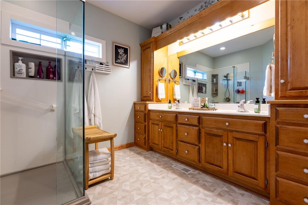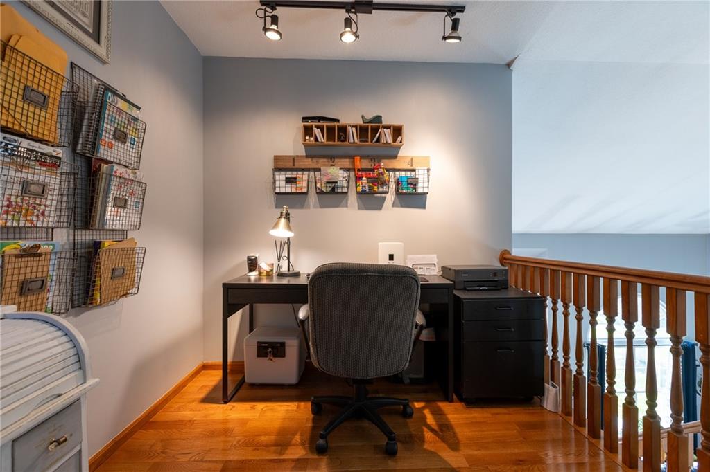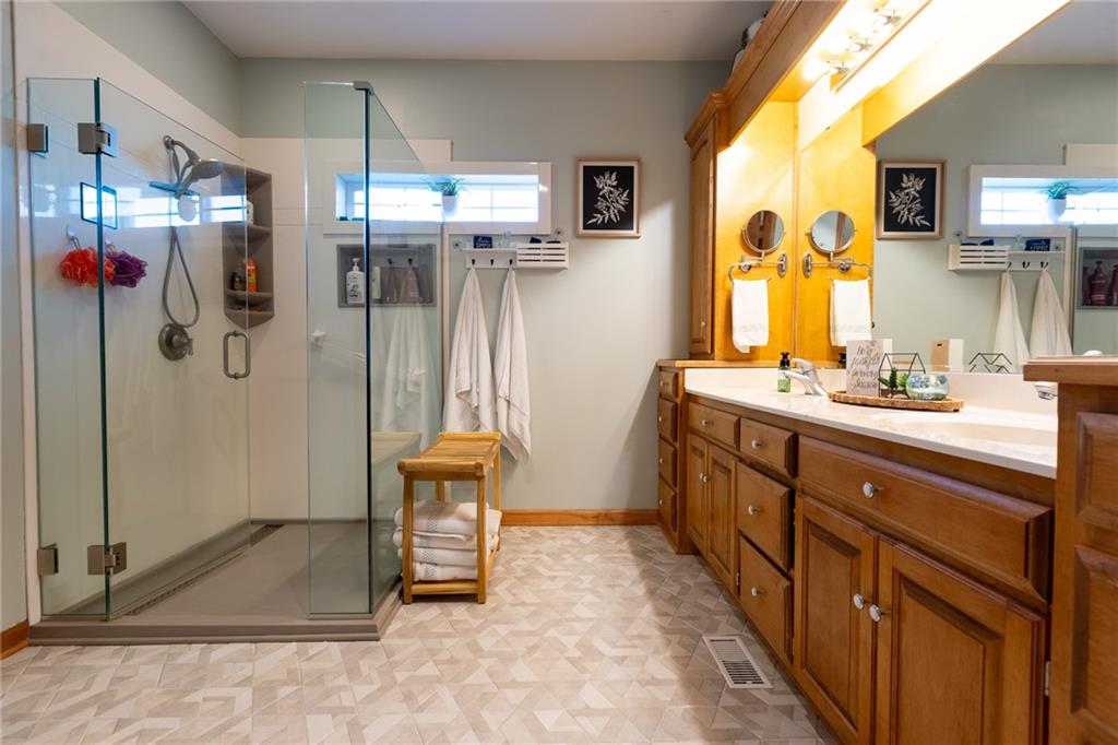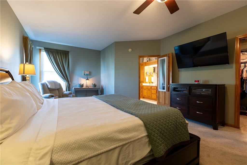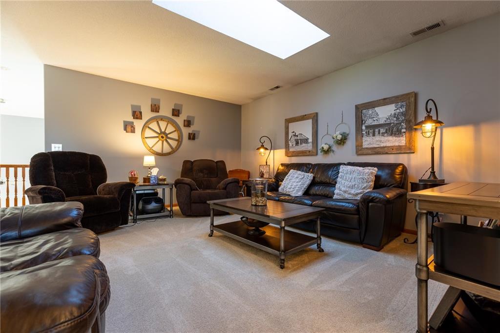 Beautifully maintained and meticulously cared for- this 1.5 story plan offers so much! MAIN FLOOR Owner retreat and laundry. 3 car garage. 3 BR and 3.5 bath. Awesome kitchen and dining area OPEN to the great room with hardwood floors, fireplace, and soaring ceilings making for that open concept that everybody loves. Incredible screened-in deck with TV (seller is leaving TV), Big Primary BR with SITTING AREA and custom, SPA-LIKE bath. Upper level with loft/ family room and office area, 2nd and 3 rd bedrooms are nice size and conveniently located to full bath with heated floor. Lower level will easily accomodate a non-conforming 4th bedroom area. Also offers a rec room area, and media rm/2nd family room. Wonderful subdivision with great neoghbors. This home has so much more to offer- take a look and see for yourself.