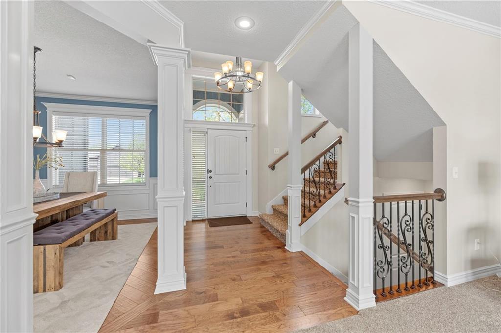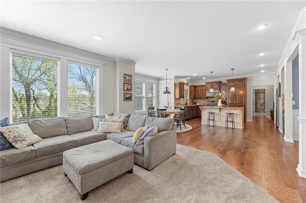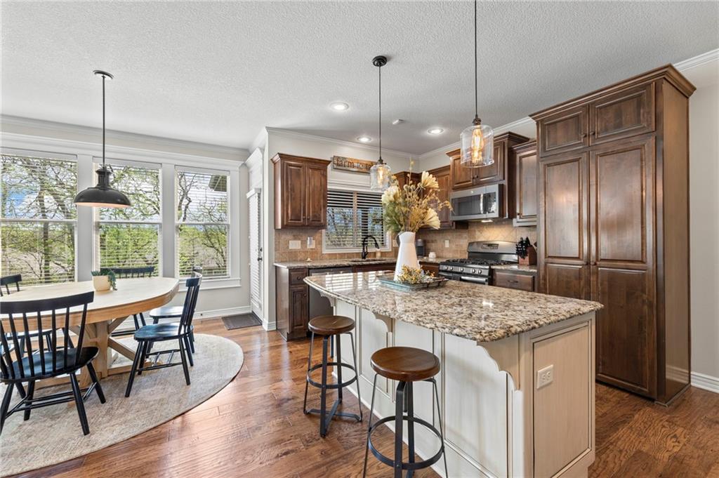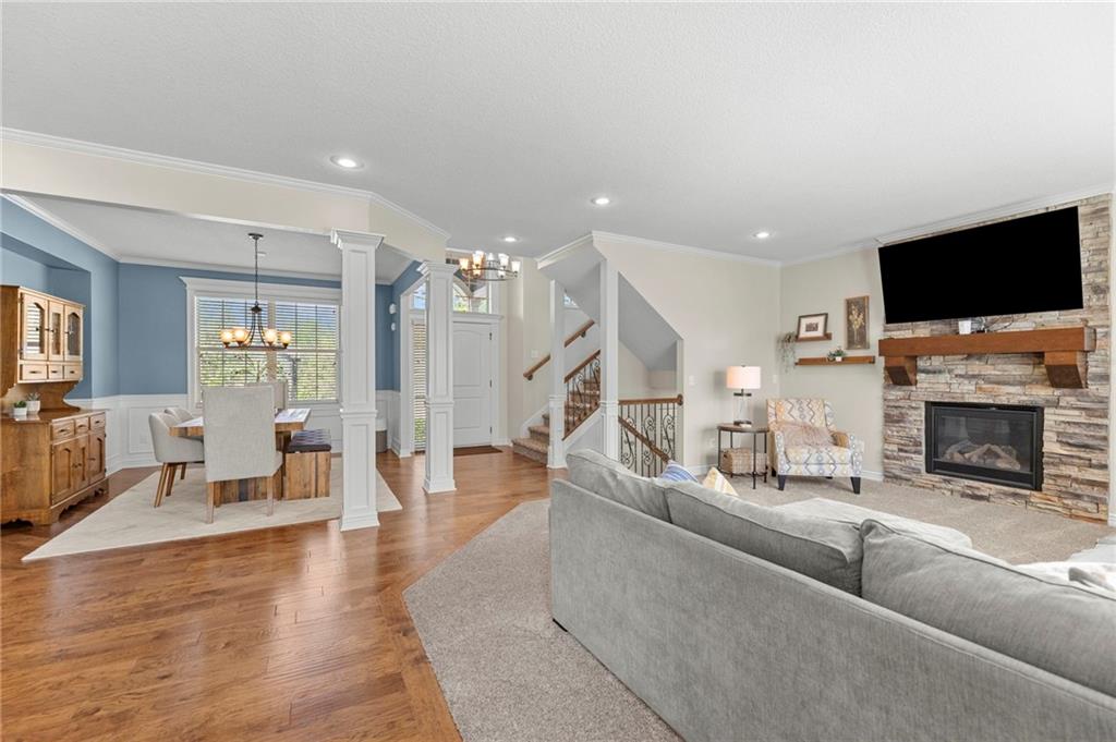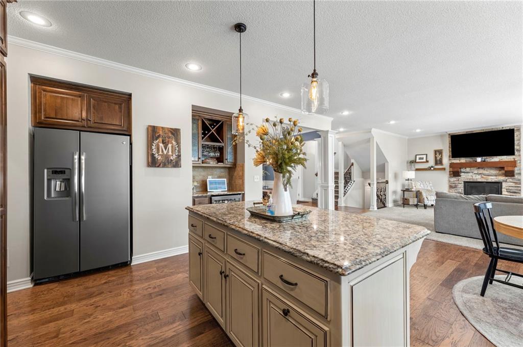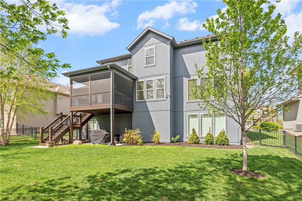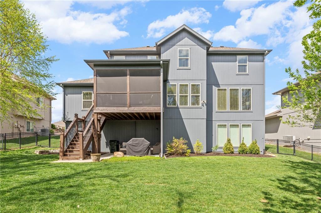 Beautifully maintained by the original owner, this stunning 5-bedroom, 4-bath home in College Meadows offers space, style, and thoughtful design throughout. The open concept layout flows seamlessly from the formal dining room into the inviting living room and well-appointed kitchen, creating an ideal setting for both everyday living and entertaining. The living room is filled with natural light from expansive windows and features a floor-to-ceiling stone gas fireplace with floating shelves. Step outside to the 14x14 screened-in deck overlooking the fenced backyard, complete with stairs leading down to the patio below. The kitchen is equipped with custom cabinetry, granite countertops, a large island, gas range, and a charming coffee bar nook with space for a beverage fridge. A main-level bedroom perfect for a home office or guest suite is conveniently located next to a full bathroom. Upstairs, you’ll find four spacious bedrooms and three full bathrooms. One bedroom features a private ensuite, while bedrooms two and three share a Hollywood bath. The impressive primary suite includes a large tiled shower, tub with tile surround and transom window, double vanity with an oversized framed mirror, and a generous walk-in closet. The walk-out basement offers abundant space and endless potential for future finishing, a home gym, or additional living area. Situated on a beautiful lot backing to a tree line on a quiet street, this home also provides easy highway access. A fantastic opportunity you won’t want to miss!
