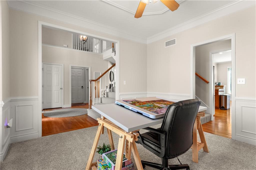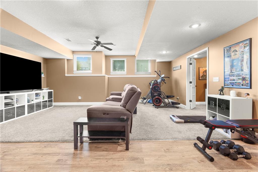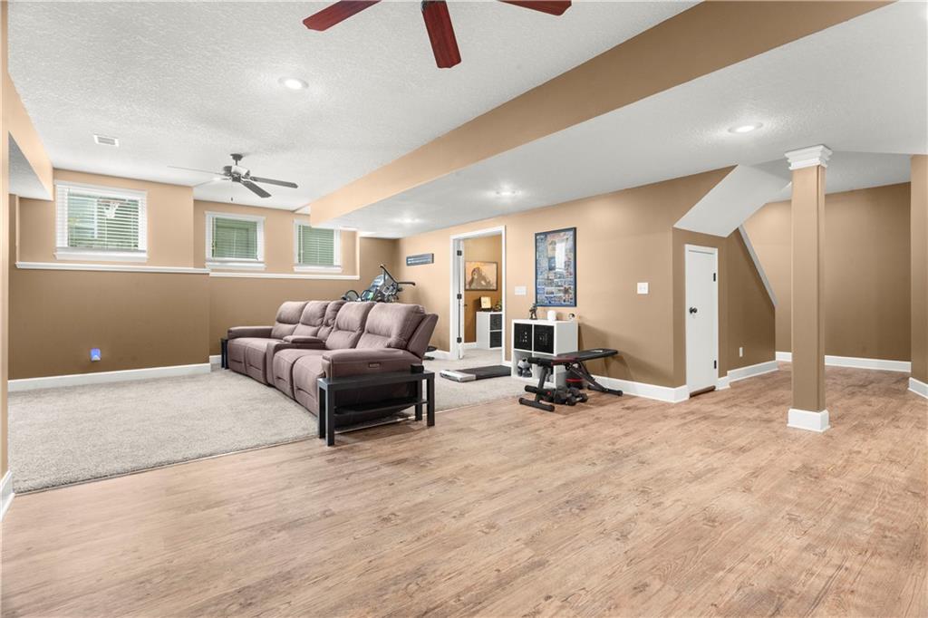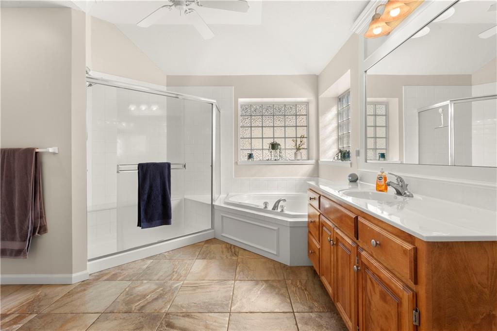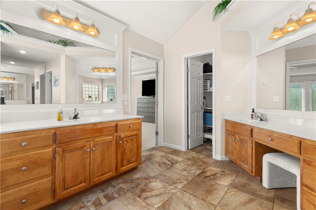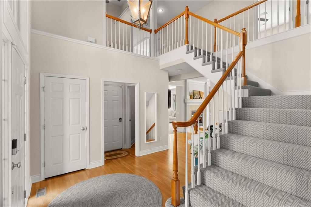This is a true stunner in the coveted Paddock neighborhood, where pride of ownership shines throughout. You’ll immediately notice the abundance of natural light pouring in through oversized, newer (all replaced 2-3 years ago) windows. A spacious entry welcomes you and flows seamlessly into the main living areas. The well-appointed kitchen offers ample cabinet and counter space, a large island, walk-in pantry, and casual dining area. It opens to a cozy hearth room with a see-through gas fireplace shared with the adjoining family room—generously sized and highlighted by a bow window that maximizes natural light. The kitchen and family room overlook a gorgeous, fully fenced backyard—perfect for entertaining—with a 17x14 deck and matching sized patio pre-wired for a hot tub. A formal dining room with elegant trim adds versatility, while a half bath and spacious laundry room with built-in sink complete the main level. Upstairs, accessible by two staircases, you’ll find an inviting primary suite with a spacious bedroom and a well-appointed ensuite featuring double vanities, a whirlpool tub, and a truly impressive walk-in closet. Three additional bedrooms all include walk-in closets—one with a private bath, the others connected by a Jack-and-Jill. A bright loft with vaulted ceiling and skylight offers the perfect reading nook or flex space. The finished daylight basement includes a 5th non-conforming bedroom or office, along with high-quality finishes ideal for a theater or workout area. An attached bar space, plus room for a game table, a 4th full bath, and generous unfinished storage complete the lower level. Zoned HVAC adds efficiency, and the oversized 3-car garage easily accommodates a full-size truck. The carpets in the home were replaced about 2-3 years ago. There is also a battery back-up system on the sump pump.