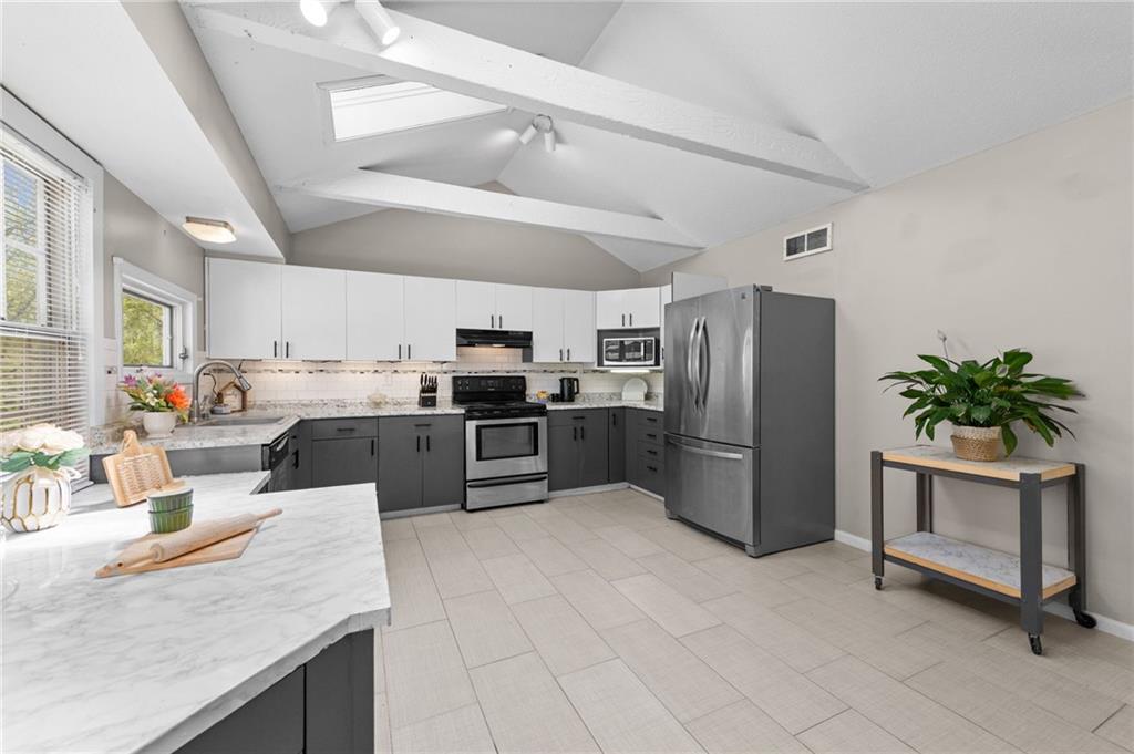 Welcome this beautifully updated gem nestled in one of the Northland's most central neighborhoods! From top to bottom, this 3-bedroom, 2-full-bath showstopper has been updated and is ready to impress! Step inside the living space surrounded in natural light. The spacious eat-in kitchen features painted cabinets, vaulted ceilings, and a seamless flow to the deck ideal for entertaining, morning coffee, or weekend barbecues. The upper level offers three generously sized bedrooms and two full bathrooms, providing comfort and flexibility for family and guests. A large finished lower level features a family room with a stunning brick fireplace. Whether you envision a rec room, home theater, gym, or playroom, the possibilities are endless. Nearby Amenities – Minutes from North Oak Trafficway shopping corridor, Zona Rosa Town Center (~10 min), and a variety of retail, dining, and entertainment options Downtown Kansas City ~ 10-15 min Kansas City International Airport (KCI) ~ 18-20 min