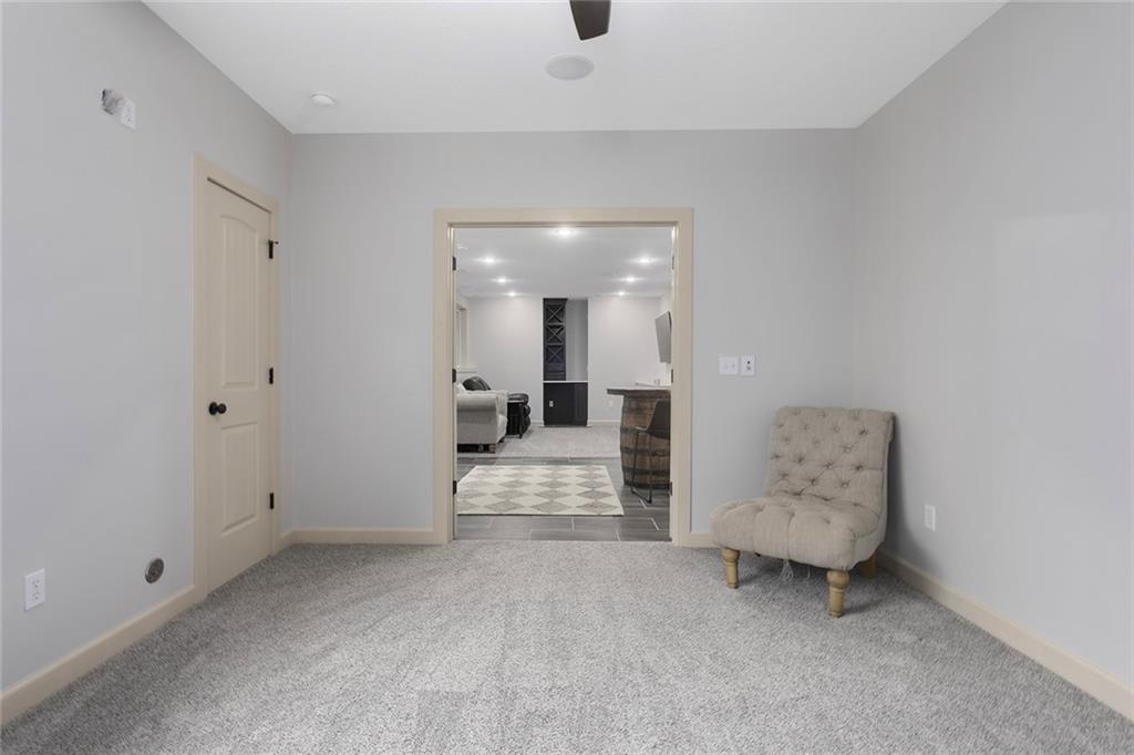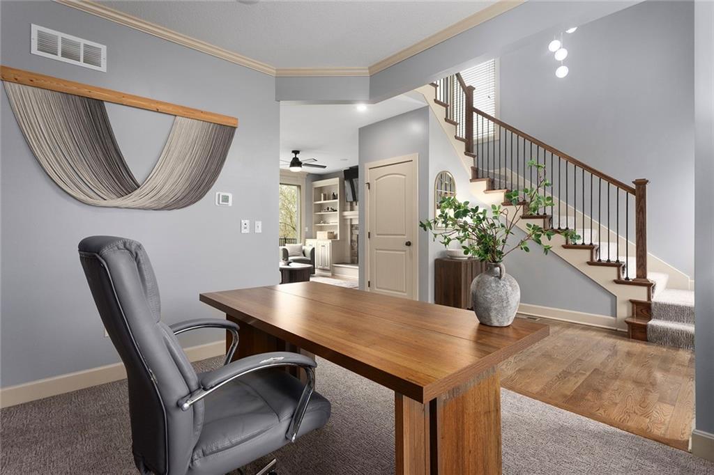 Welcome to this spacious and beautifully appointed two-story home in desirable South Olathe! Offering 5 bedrooms and 3.5 bathrooms, this home combines comfort, functionality, and scenic surroundings. The main level features stunning hard oak wood flooring and an abundance of large windows that fill the space with natural light while showcasing peaceful views of the wooded greenspace behind the home. The inviting living room centers around a cozy fireplace and flows seamlessly into the adjacent kitchen—perfect for both everyday living and entertaining. The kitchen is thoughtfully designed with beautiful cabinetry, granite countertops, and a convenient walk-in pantry. Just off the kitchen, you’ll find a dedicated laundry area for added ease and efficiency. A formal dining room sits at the front of the home, offering a more traditional space for gatherings and special occasions, complete with comfortable carpeting. Upstairs, the bedrooms feature plush carpeting and spacious bathrooms, creating comfortable retreats for family and guests alike. You’re sure to love the finished walkout basement, complete with a 5th bedroom, full bath, and a convenient kitchenette. This space lives like separate quarters—ideal for guests, extended stays, or multi-generational living—and opens directly to the patio, with a composite deck above for even more outdoor enjoyment. Step outside to enjoy the backyard firepit, perfect for relaxing evenings under the stars. Additional upgrades include whole-home sound wiring and programmable exterior holiday lighting for year-round convenience and charm. Don’t miss this opportunity to own a beautiful home on a well-kept lot in a sought-after location!