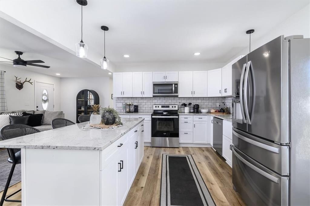 WOW.. this one is a stunner! Right north of Leavenworth on a paved road you will find this STUNNING newly remodeled from TOP to BOTTOM. This 3 bed 2 bath home sits in the Easton School District on a gorgeous 1.5 acre piece of countryside! Step Inside where you will find an open floor plan offering tons of natural light with beautiful finishes to include luxury vinyl plank flooring throughout, granite countertops, eye catching white cabinets and stunning island in the kitchen. Enjoy the oversized master suite with an attached master bathroom and walk-in closet. 2 generous sized additional bedrooms offer additional space for the kids or a guest room for hosting. Downstairs you will find a blank slate to add additional living space.. the options are ENDLESS. Come outside to where you be greeted with a large concrete patio for grilling and hosting events and a 40x30 shop with two garage doors for all your storage and working needs! Total remodel was completed in 2024, HVAC, ROOF, SEPTIC are all new in 2024 and shop and additional driveway were added in 2024. This home offers all the new build perks without the price tag of a new home! You are going to want to come visit this home today and see what living in the country feels like, just in time for the summer!