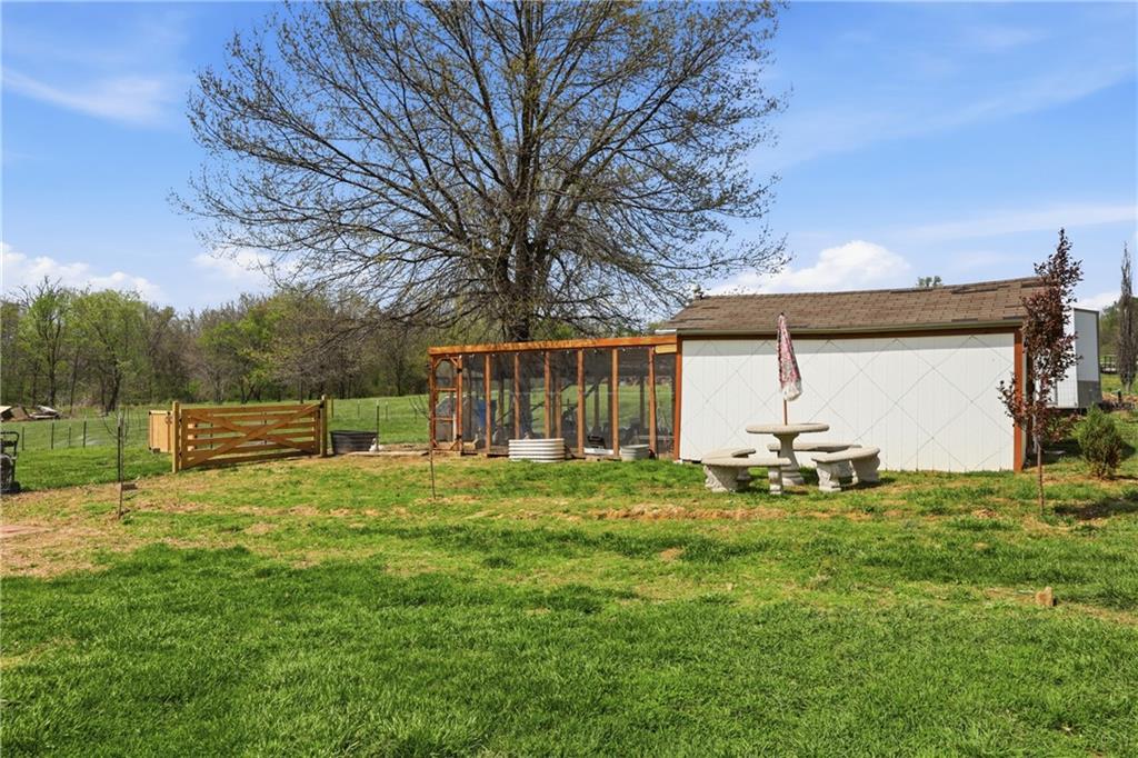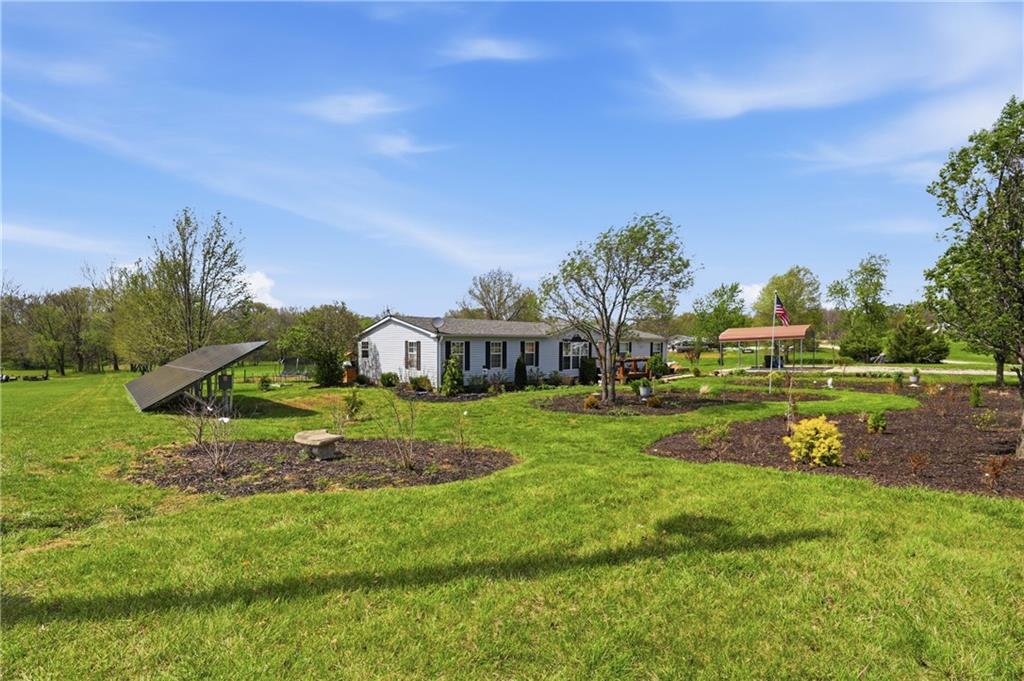 Welcome to your own private slice of country living, perfectly set up for both comfort and self-sufficiency. Situated on nearly 4 acres, this 4 bedroom, 2 bath home offers an inviting open floor plan with plenty of space to live, gather, and grow, including two very large living areas that provide flexibility for entertaining or everyday living. The spacious primary suite is a true retreat, offering plenty of room to incorporate a sitting area or home office. Recent updates include a newer HVAC system (2022) and roof (2019), adding peace of mind for years to come. Step outside and you will immediately appreciate the thoughtfully designed front yard, transformed into a gardener’s dream with beautifully curated flower beds, flowering bushes, and newly planted trees that will continue to mature and enhance the landscape over time. This property is ideal for those looking to embrace a homestead lifestyle. A large tilled garden area is ready for planting, while the custom-built chicken coop with attached runs allows for easy free-ranging. The recently installed solar panel field adds efficiency and long-term energy savings - Home is all electric and average monthly bill is around $30.00 (Depending on usage). Additional features include an underground storm shelter for peace of mind and wide-open space that offers endless possibilities for expansion, recreation, or simply enjoying the outdoors. If you are looking for room to breathe, grow your own food, and enjoy a more intentional way of living, this property delivers.