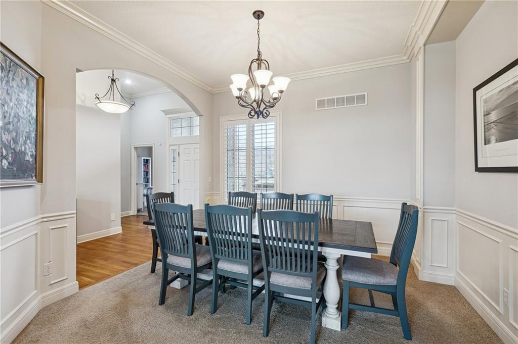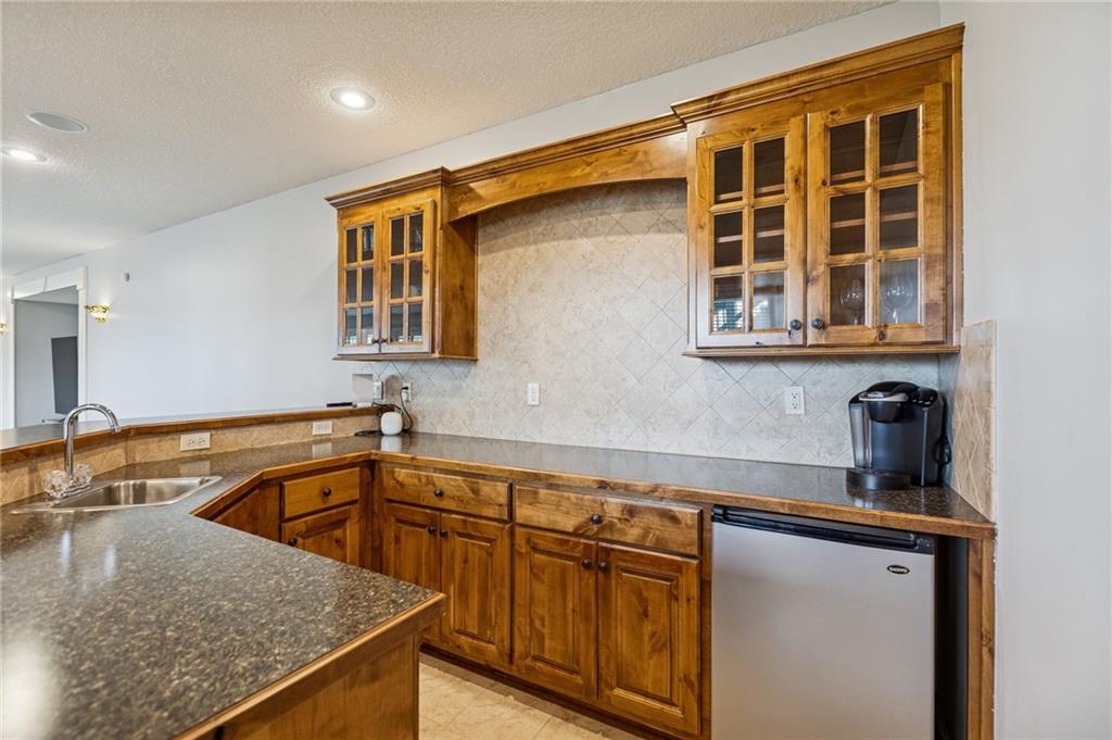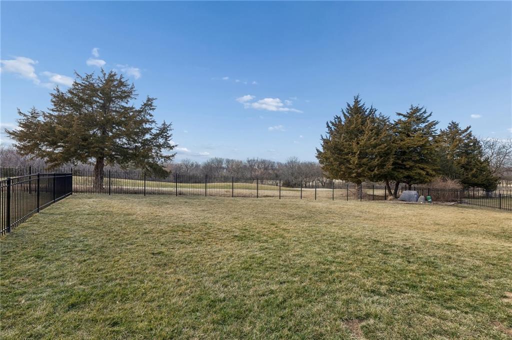Dreaming of affordable, luxurious living on a private Johnson County golf course? Located in the Estates of Prairie Highlands, this home sits on a premium, fenced golf lot offering the most incredible 11th Fairway and sunset views found within the entire community. This reverse 1 ½ story home offers an open floor plan with spacious rooms throughout. Hardwood flooring in the foyer opens to the large great room appointed with gas fireplace & plantation shutters. The hardwoods continue past the dining room/flex space and into the incredible kitchen with tons of cabinet & counter space plus large (full use) island, and an enormous custom walk-in pantry! The back hall contains a convenient coat closet and laundry room with sink and cabinetry. Off the kitchen's spacious breakfast room is your comfortable screened-in porch overlooking the course and the level, newly fenced backyard--a wonderful spot for a future pool! The primary suite includes a fully tiled walk-in shower, separate jetted tub, double vanities and large walk-in closet. Bedroom #2 and 2nd full bath complete the main level. The lower-level family room offers plenty of space for your Chiefs game day parties featuring a beautiful 2023 Brunswick pool table plus a full walk-behind wet bar and walk-out access to the backyard patio. Two more bedrooms, each with walk-in closets, are connected by a large Jack & Jill bath with dual vanity areas. Recent updates include roof & interior paint (2020), new dishwasher (2022), new toilets (2023), all new primary bath tile (2023), new oven & cooktop (2024), new deck stairs (2025), Kitchen cabinets refinished & freshly painted (2026), New kitchen lighting (2026), Screened porch freshly painted & re-screened (2026), New Exterior Paint coming soon! Epoxy flooring in garage! Open-to-the-Public "Crush Restaurant & Bar" is located in the subdivision clubhouse. Enjoy Golf privileges with membership to club. Prairie Highlands-A Great Value compared to other JOCO golf communities!