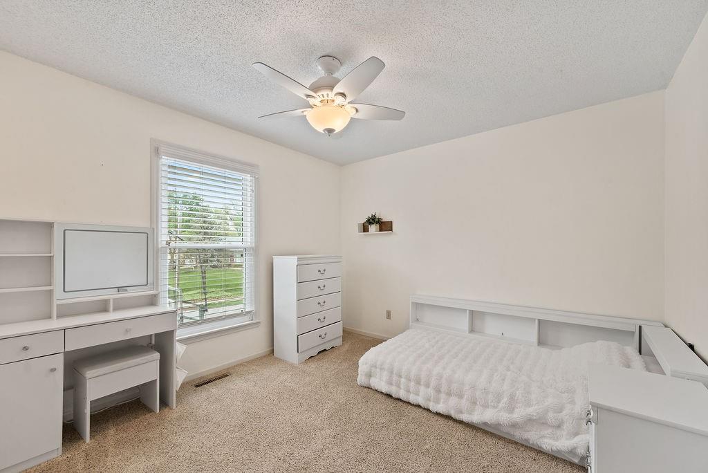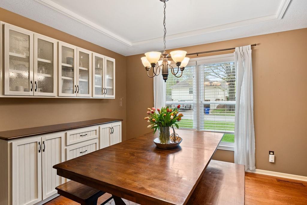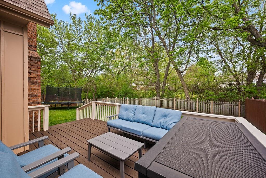 This well-maintained two-story home offers a functional layout, comfortable living spaces, and a private backyard setting. The main level features a spacious great room with vaulted ceilings, and wood floors that create a warm and inviting atmosphere. The kitchen is designed for everyday convenience with a pantry, peninsula bar for additional seating, and an open connection to the breakfast room, where large windows bring in abundant natural light. A formal dining room with wood floors sits just off the kitchen, providing a great space for gatherings and entertaining. The first floor also includes a laundry room and a half bathroom. Upstairs, all four bedrooms are thoughtfully arranged, with three bedrooms located on one side and a fourth bedroom positioned separately at the opposite end of the hallway—ideal for privacy or a home office setup. The primary suite features its own private bathroom. The oversized garage offers room for two vehicles along with extra storage for bikes, tools, and lawn equipment. The unfinished basement provides excellent storage space today and the opportunity to add future living space. Step outside to a fully fenced backyard that backs to trees, offering a peaceful setting perfect for relaxing, playing, or gardening. The deck adds another great space to enjoy the outdoors. You will love the beautiful, new landscaping around the house. Conveniently located near shopping, dining, and with easy highway access, this home is also just minutes from Miller J. Fields Park with its splash pad, playgrounds, ball fields, and trails. With no HOA, this property offers both flexibility and value. Stop by to see all this home has to offer!