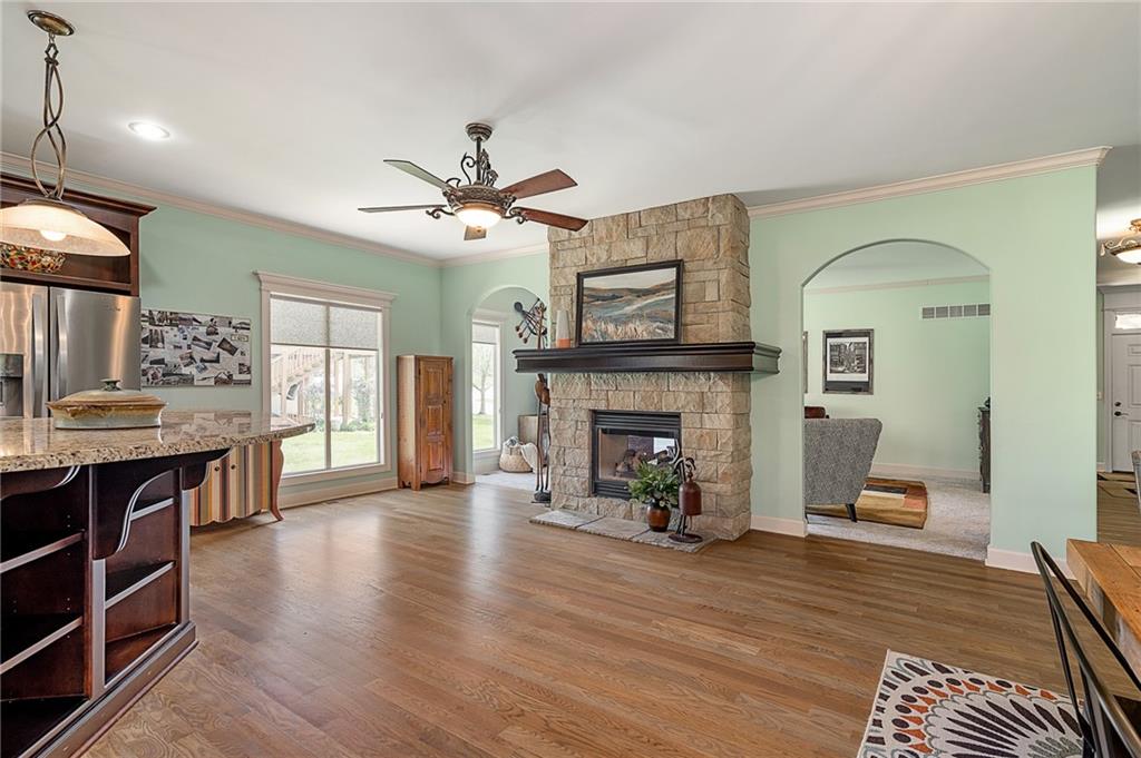 Have you been searching for that maintenance free lifestyle in one of Lee’s Summit’s most sought after areas? Look no further! This stunning 3-bedroom, 3-bath ranch home provides that one level living you've been searching for while being quietly nestled in the peaceful Country Woods neighborhood with quick access to all your favorite restaurants, shopping, parks, and the thriving downtown Lee's Summit area. Step inside and be greeted by an open floor plan with elegant arched transitions leading into the spacious living room and gourmet kitchen, featuring beautiful granite countertops and a breathtaking see-through fireplace. Rich stained hardwood floors and newer carpet create a warm, inviting atmosphere perfect for relaxing and entertaining year-round. The chef’s kitchen and generous living spaces flow seamlessly to a spacious back deck, where you can unwind and soak in the tranquil views of nature all around you. The primary suite boasts a luxurious walk-in shower, a walk in closet and a large double vanity. The main level also boasts main level laundry along with a 2nd bedroom offering plenty of room for family, guests, or that much needed home office. Stunning light fixtures, custom cabinetry, built-ins, and trim details add to the home’s refined character throughout. The full basement provides a full bedroom and bathroom, a spacious second living room and an enormous amount of unfinished space for added storage or the opportunity to expand your living space even further. Best of all, your HOA dues of just $1,285 annually cover lawn care, snow removal, building maintenance, and trash pickup giving you true lock-and-leave freedom. Perfectly positioned just minutes from an incredible variety of restaurants, boutique shopping, and parks, this home offers the ideal blend of peaceful neighborhood living and everyday convenience. Homes like this don’t last so schedule your showing today!????????????????