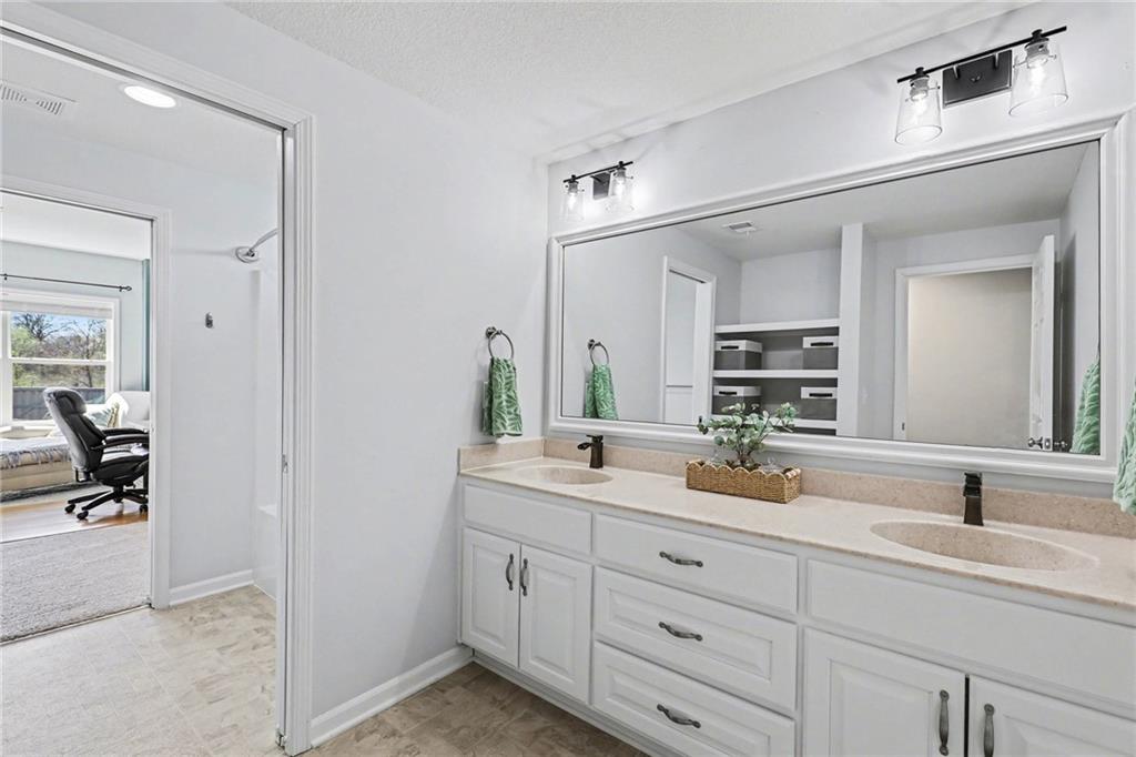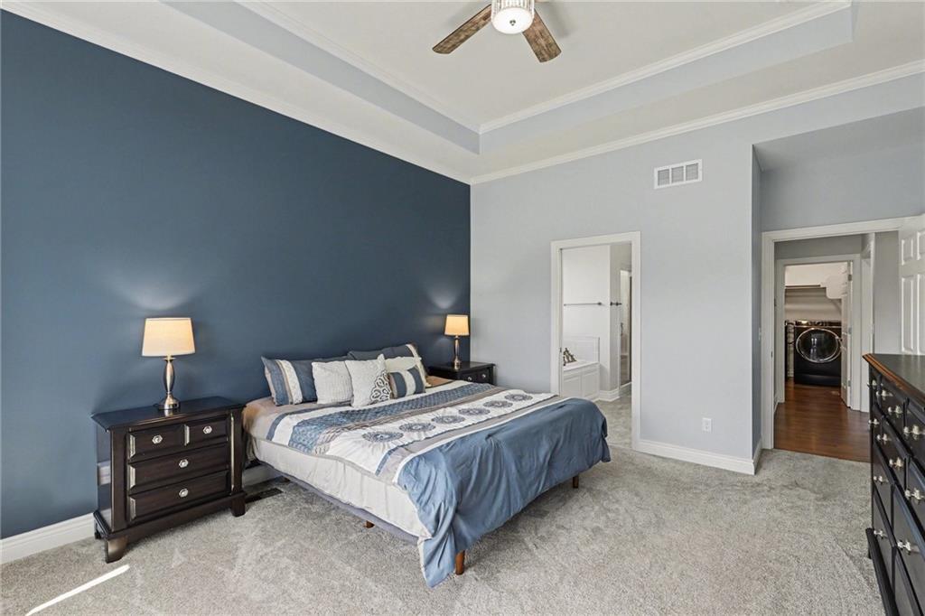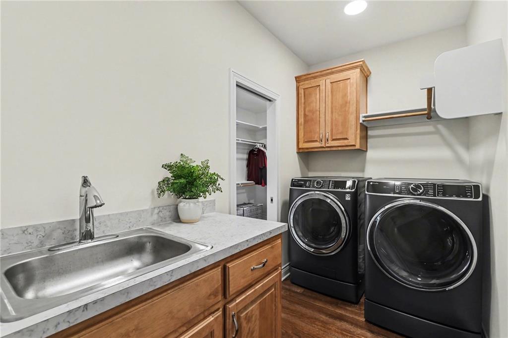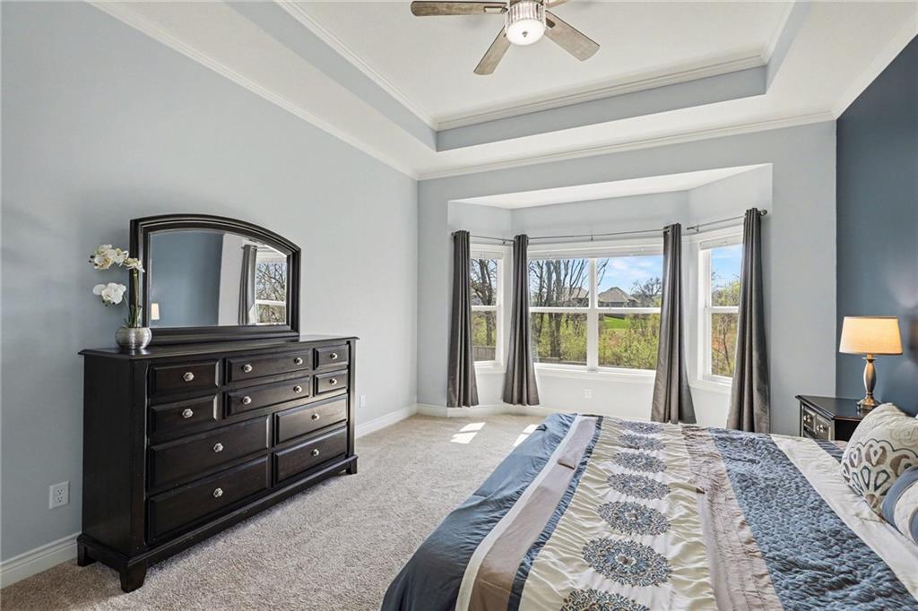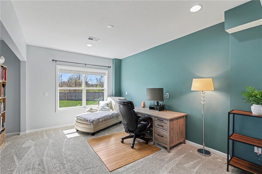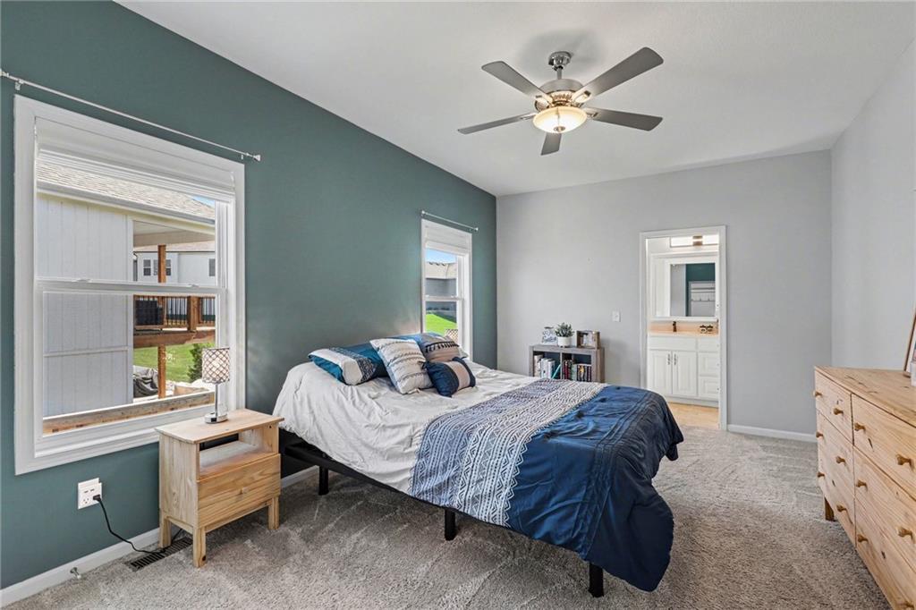 Step into refined elegance & thoughtfully designed living spaces! Nestled in a serene cul-de-sac, this beautifully designed home offers exceptional privacy with a peaceful backdrop of lush, undeveloped woodland. The open-concept main level is filled with natural light, highlighted by soaring ceilings, expansive windows, & rich hardwood flooring that flows seamlessly through the main living areas. A stunning great room anchors the space with a beautifully crafted fireplace, custom millwork, built-in cabinetry, & a dramatic wall of windows that frames the scenic views beyond. The chef-inspired kitchen is both stylish & functional, featuring an oversized island with seating, sleek countertops, custom cabinetry, S/S appliances, tile backsplash, & designer pendant lighting. The adjoining dining area sits in a bright, window-lined nook, creating an inviting space for everyday meals or entertaining. Just off the main living area, a covered deck provides the perfect setting to relax & enjoy the tranquil wooded surroundings. The thoughtfully designed main level includes both a spacious primary suite & a private guest suite, offering comfort & flexibility. Each space is enhanced by generous proportions, modern finishes, & abundant natural light. A convenient 3-car garage adds everyday practicality without sacrificing style. The walkout lower level expands the living space with 2 additional bedrooms, a third full bathroom, & an expansive recreational room ideal for entertaining, movie nights, or creating a game area. Large windows and direct outdoor access continue the bright, open feel while connecting seamlessly to the private backyard setting. Combining elegant finishes, a functional layout, and a peaceful cul-de-sac location, this home offers the perfect balance of luxury, comfort, and everyday livability. ***SPECIAL FEATURES:6-foot cedar, board-on-board privacy fence AND retractable solar shield screens to the deck & custom-made retractable blinds in the basement.***