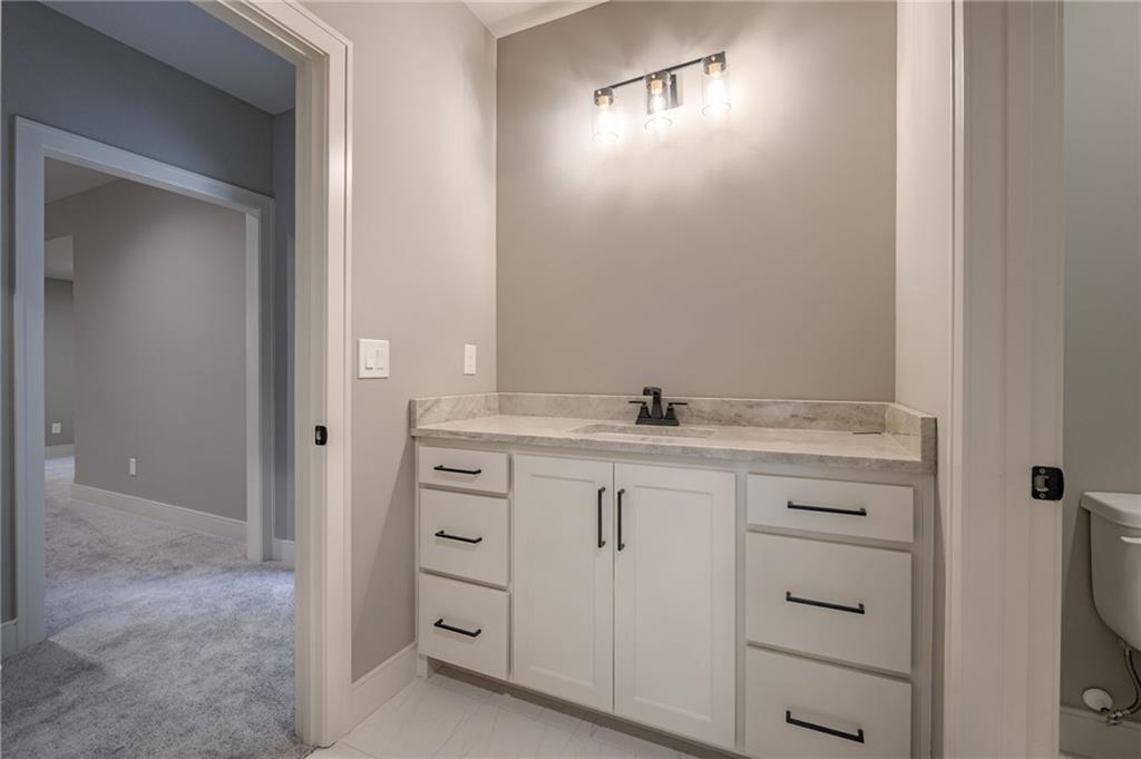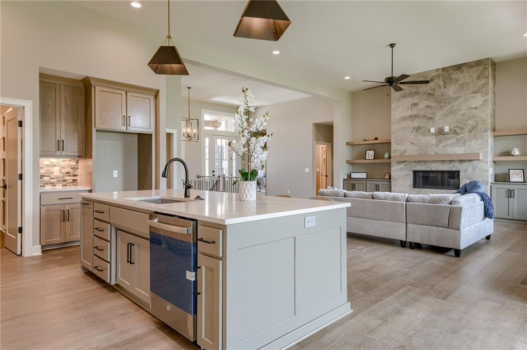 *Under construction & still time to make selections!* A fresh take on the ever-popular Brookridge plan, the Brookridge II offers a thoughtfully designed reverse 1.5 layout with 4 bedrooms, 3 full baths, and 2 half baths—one on each level for added convenience. The main level features a private primary suite along with a secondary bedroom with its own private full bath—ideal for guests or multigenerational living. The primary suite includes a well-appointed en-suite with dual sink vanity, granite or quartz countertops, a freestanding soaking tub, and a fully tiled shower complete with shower head, handheld wand, and built-in bench. An oversized pantry and highly functional laundry room—connected directly to the primary closet with additional hall access—add everyday convenience. The open, vaulted great room flows seamlessly into the kitchen, complete with a gas cooktop, wall oven, microwave, and built-in organizational features including hidden trash/recycling, spice racks, and utensil cans designed for efficiency. Fireplace is slated for a floor-to-ceiling tile design (final selections TBD). The finished walkout lower level is built for entertaining with two additional bedrooms, a full bath, and a spacious rec room featuring a second living area plus a dedicated alcove for a game table, dining setup, or flex space. The custom wet bar includes cabinetry, sink, and an island—ideal for hosting. Situated on a wooded lot, the home offers a covered deck with composite decking and metal spindles for low-maintenance outdoor living, along with a patio below off the walkout basement. Car enthusiasts or hobbyists will appreciate the 4-car garage with a tandem bay—perfect for the extra car or a workspace—plus a convenient drop zone just inside the entry. Home is currently in drywall stage (as of 4/8/2026), with a limited window remaining for buyers to make select design choices. Estimated completion June/July 2026. Photos may be stock images of the plan; finishes may vary.