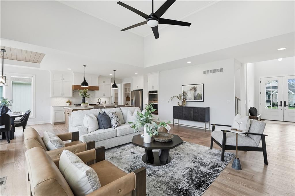 Meticulously maintained, like-new home that outshines new construction, offering a thoughtful open floor plan and seamless indoor-outdoor flow on a premium lot with a large private backyard and wooded views. The main level features a grand two-story entry, spacious living room, private office, and a gourmet kitchen with floor-to-ceiling white oak cabinetry and upgraded gas range. The main-level primary suite offers a spacious layout with convenient access to the laundry room. The upper level includes three generously sized bedrooms, each with walk-in closets and en suite baths. The finished lower level features a guest bedroom, full bath, wet bar, flex room/home gym, and ample storage. Enjoy abundant natural light throughout, along with beautiful sunset views from the backyard overlooking wooded green space. Move-in ready with convenient access to major commuting routes and located within the highly rated Blue Valley School District. Motivated sellers—come see this beautiful home and make an offer!