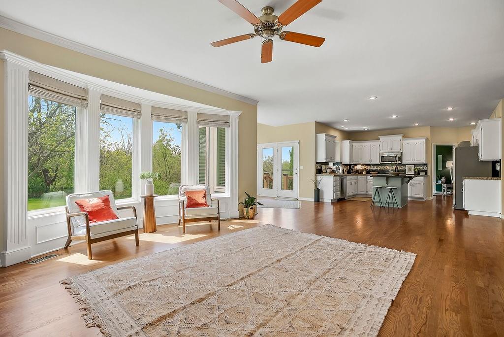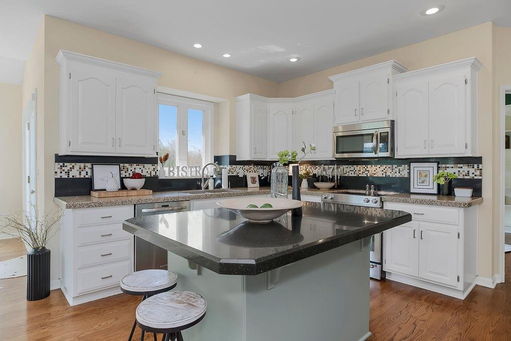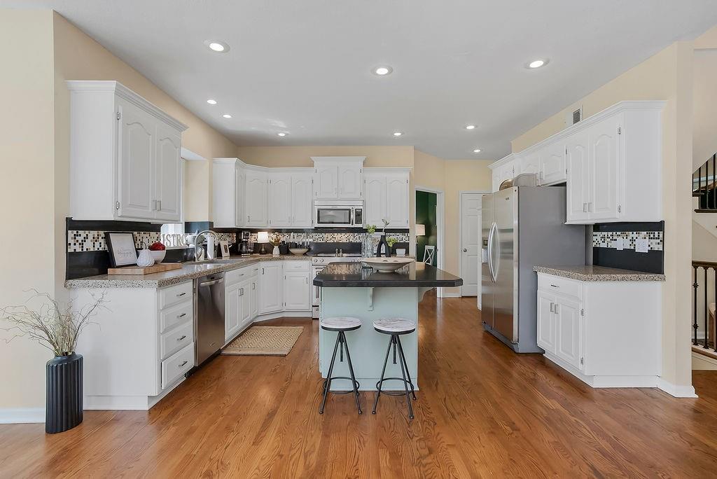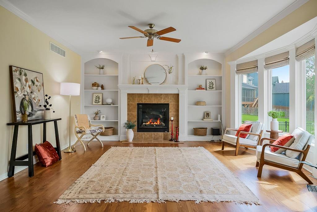 Tucked away on a quiet cul-de-sac and backing to peaceful green space, this stunning home offers the perfect blend of space, updates, and location. The level lot features a patio, wrought iron fence, and sprinkler system—perfect for outdoor enjoyment and easy maintenance. The main floor includes a formal dining room, private office with French doors and built-in bookcases, and an expansive living room with a wall of windows and a cozy fireplace flanked by custom built-ins. The updated kitchen shines with white cabinetry, granite countertops, a stylish backsplash, walk-in pantry, and convenient access to both a mudroom laundry and optional upstairs laundry. Hardwood floors span the main level, including the entry, living room, dining area, and office, and continue into the spacious primary suite and two additional bedrooms upstairs. The primary retreat is a true escape with double-door entry, a sitting area, large walk-in closet, and a beautifully updated bath featuring a soaker tub, ceramic tile, separate shower, and double vanity. Two secondary bedrooms share a Jack-and-Jill bath, while the fourth bedroom includes its own private en suite. The finished basement offers fresh paint, new carpet, and a full bath—perfect for additional living, guest space, or entertaining. Major systems including the HVAC and water heater are 5 years old and the roof is just 2 years old, adding peace of mind. Enjoy neighborhood amenities in Crimson Ridge, including a community pool, plus award-winning De Soto schools and easy highway access. With this square footage, lot, and location, this home truly delivers.