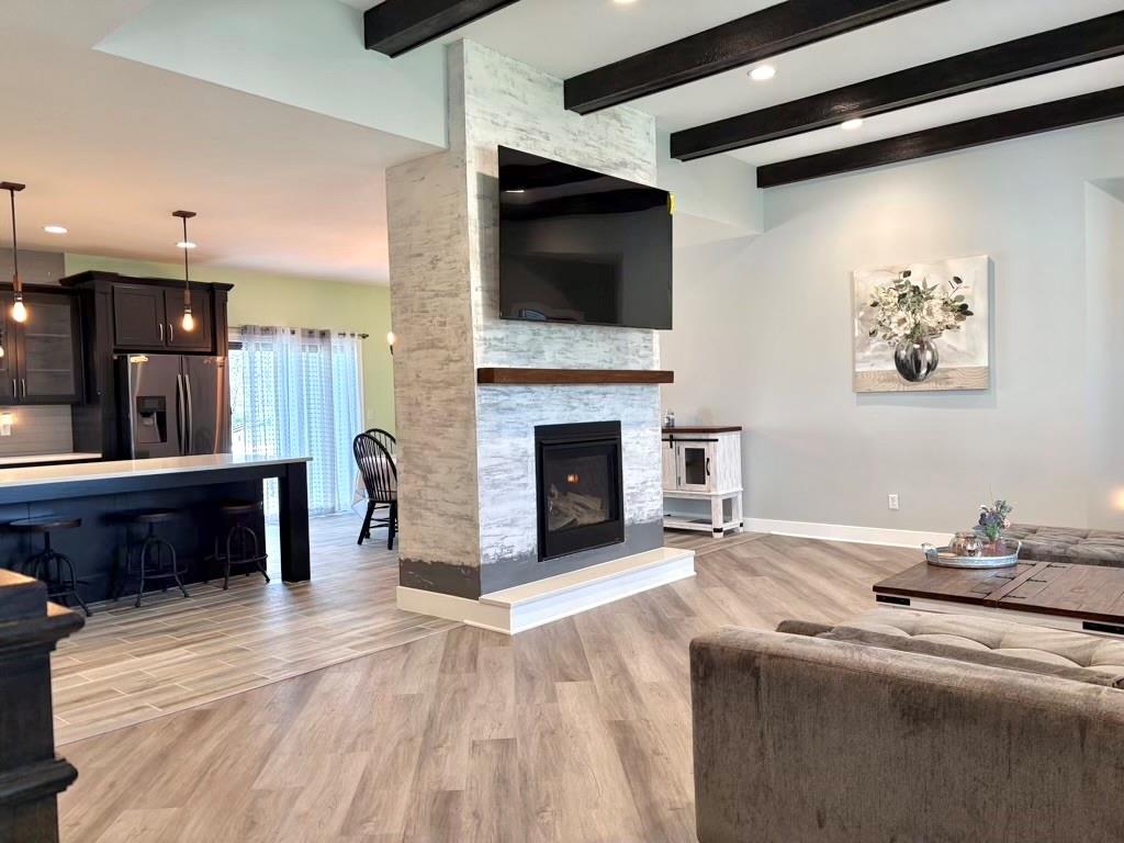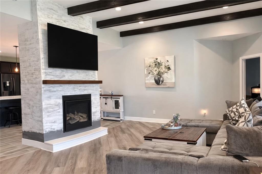 Homes like this don't come up often, meticulously well-maintained craftsman-style ranch siting on a secluded cul-de-sac with a long driveway and an oversized 28x34 detached workshop just built in 2021. Featuring 4 bedrooms, 3 full baths, and 1 half bath, this spacious open floor plan is designed for modern living. The main level showcases a light-filled living area anchored by a stunning fireplace with a quartzite hearth and rich mahogany colored mantle, adding warmth and upscale character. The kitchen has been thoughtfully upgraded with custom upper cabinetry, including select glass-front doors replacing the original open shelving, delivering both style and functional storage. The main level also includes two bedrooms, including the primary suite. The finished basement expands your living space with two additional bedrooms, a full bath, and a large recreation area—ideal for guests, multi-generational living, or a home office setup. Step outside to a fully fenced backyard, perfect for entertaining, pets, and play—complete with built-in small doggy doors. The expansive workshop offers endless possibilities for hobbies, storage, or business use. With its blend of craftsman charm, intentional upgrades, and versatile living space, this home truly stands out. Lease purchase option available through third-party company. Square footage is based off public record agent seller shall be deemed liable for correct square footage.