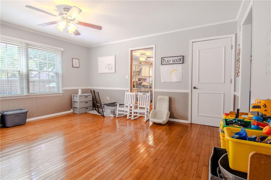 Step into this grand foyer and you will be impressed by the open living area this home provides. There are large living areas off each side of the foyer and a beautiful staircase leading upstairs. There are two dining areas (one off of each side of the kitchen). There is an additional family room on the main level as well. This home does not have any carpet. Four bedrooms, a huge bathroom, and a laundry area are upstairs. The primary bedroom is large with an incredible walk-in closet. Additional living space has been started in the basement. There is an oversized two car garage attached to the home and an additional two car detached garage. Solar panels are a new addition to this home, as well as a privacy fenced backyard and whole home water filtration system. This home sits on a small hill on the corner lot of a popular cul-de-sac and offers plenty of off-street parking for those days you feel like entertaining.