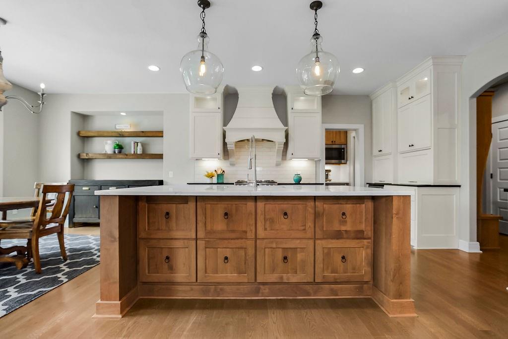 Tucked away at the end of a quiet cul-de-sac, this beautifully maintained home sits on approximately .75 acres and offers the perfect blend of privacy, space, and convenience. A long private driveway welcomes you in, setting the tone for this serene retreat just minutes from highways, shopping, and dining. Surrounded by mature landscaping and established trees, the property offers a peaceful, park-like setting. Enjoy catching fish in the pond, and creating a scenic backdrop for added outdoor enjoyment just steps from your home. Inside this custom built home, you’ll find thoughtfully selected, high-quality materials and modern updates throughout, giving the home a fresh yet timeless feel. The layout is both functional and inviting, ideal for everyday living and entertaining alike. At the heart of the home, the gourmet kitchen is designed to impress, featuring high-end finishes, ample workspace, and a seamless flow for both everyday living and entertaining. A spacious butler’s pantry adds an extra layer of functionality and elegance—perfect for additional prep space, storage, and effortless hosting. The finished basement is a standout feature, complete with custom built-in bunk beds—perfect for guests, kids, or creating a fun and memorable space. Step outside to your private backyard oasis featuring a pool and plenty of room to relax or entertain, all while enjoying the privacy and beauty of the expansive lot. Located in the highly sought-after, award-winning Blue Valley School District, this home truly checks every box—offering space, style, and an unbeatable setting in one exceptional property.