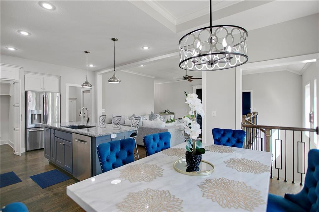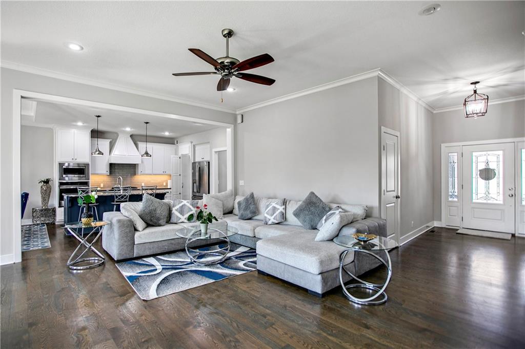 Welcome to this stunning 4-bedroom, 3-bath reverse 1.5-story home in the desirable Huntington Place community, built in 2017 by Bill Pruitt. Designed with both comfort and style in mind, this home offers a bright, open layout filled with high-end finishes throughout. The main living space showcases soaring ceilings, a cozy fireplace, and seamless flow into the kitchen and dining area—perfect for everyday living or entertaining. The kitchen is a standout feature, complete with a large center island with seating, gas range with vent hood, abundant cabinetry, granite countertops, and a spacious walk-in pantry. Step out from the dining area onto the low-maintenance composite deck—an ideal spot for grilling or unwinding outdoors. Just inside, you’ll find a convenient mudroom off the oversized 3-car garage. The main-level primary suite provides a private retreat with a spa-inspired bathroom featuring dual vanities, a walk-in shower, and a generous walk-in closet. The laundry room is thoughtfully positioned just off the primary suite for added convenience. An additional bedroom and full bath are also located on the main floor. The walkout lower level expands your living space with a large family room, two additional bedrooms with ample closet space, and a beautifully updated full bathroom. A partially finished area offers flexibility for a home gym or hobby space. Designed with accessibility in mind, this home includes minimal entry steps and thoughtful layout features. Tucked away in a quiet neighborhood yet close to everything, this well-built home is truly move-in ready and waiting for its next owner.
