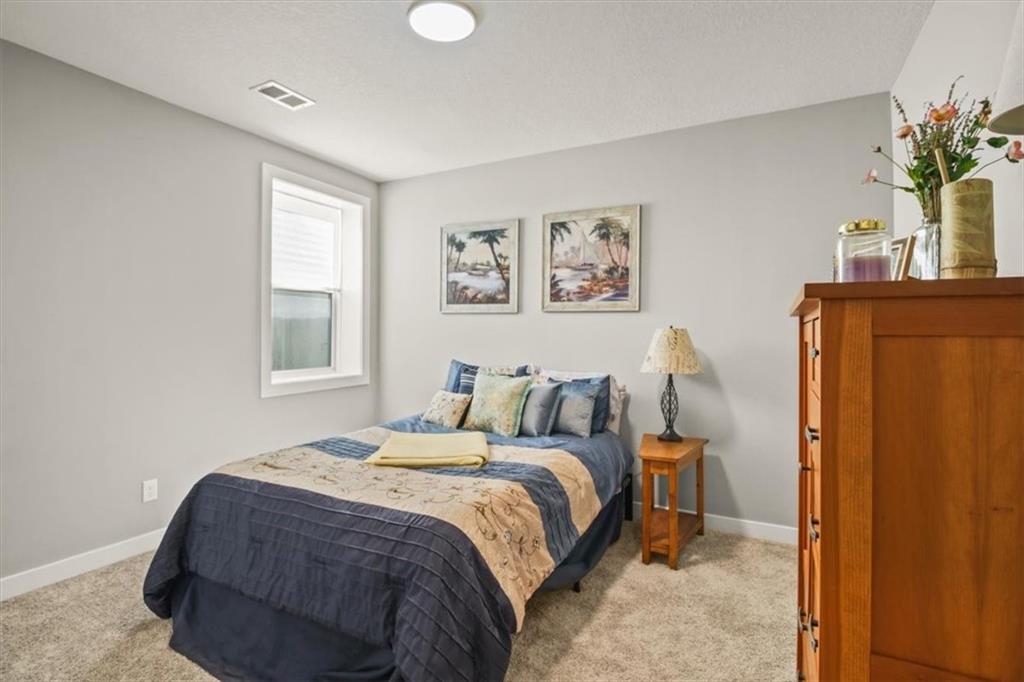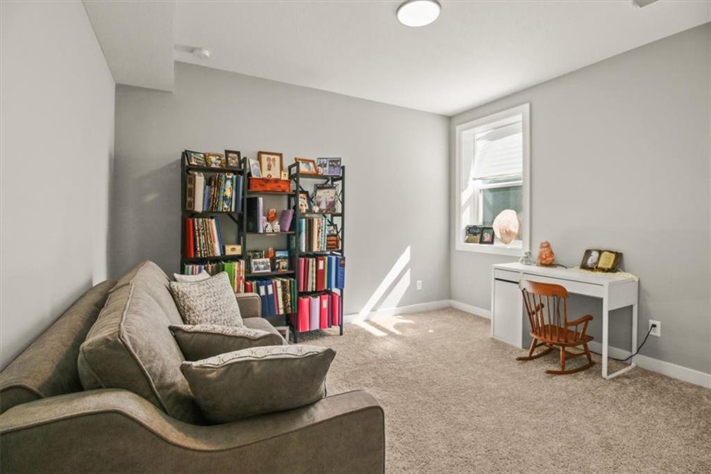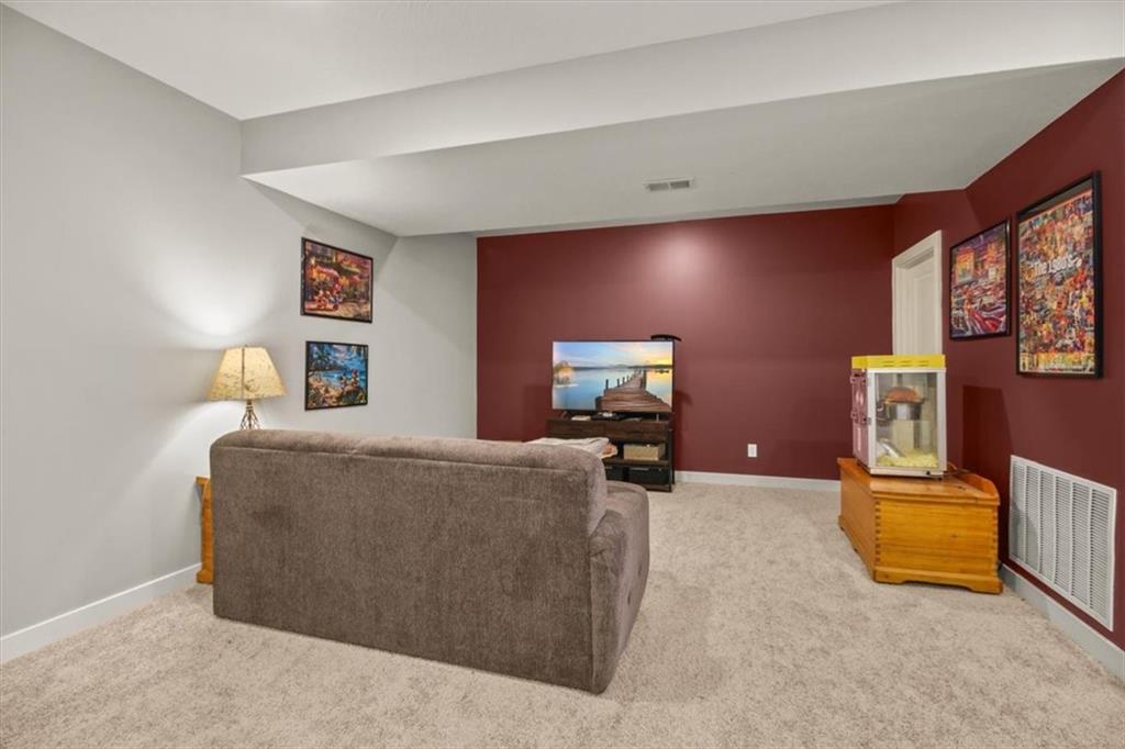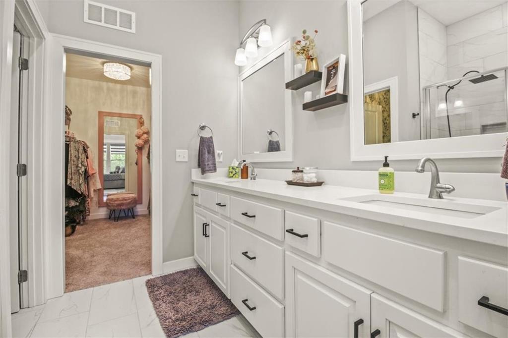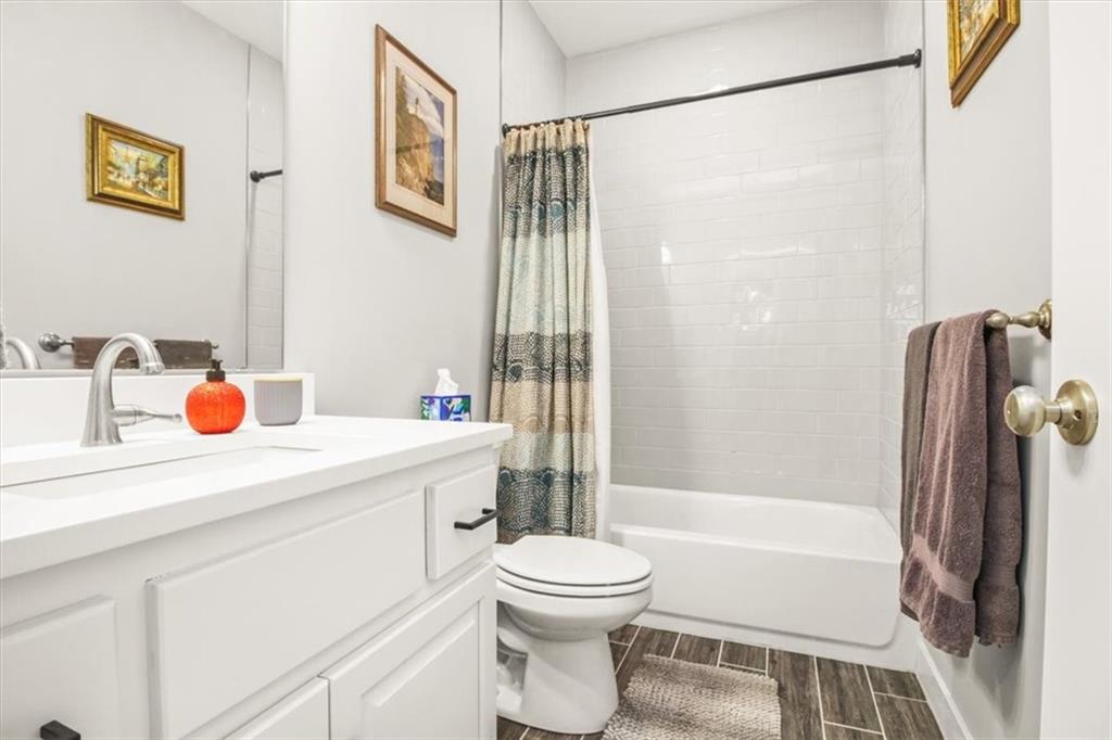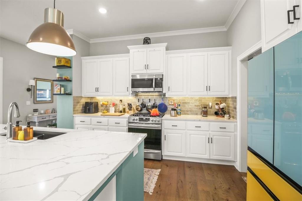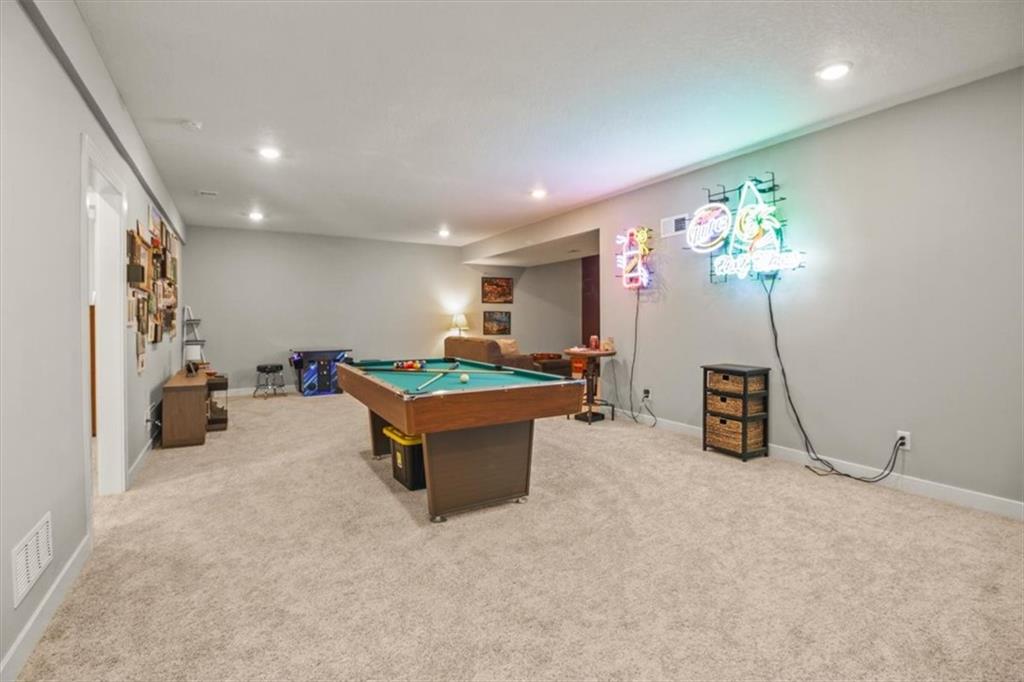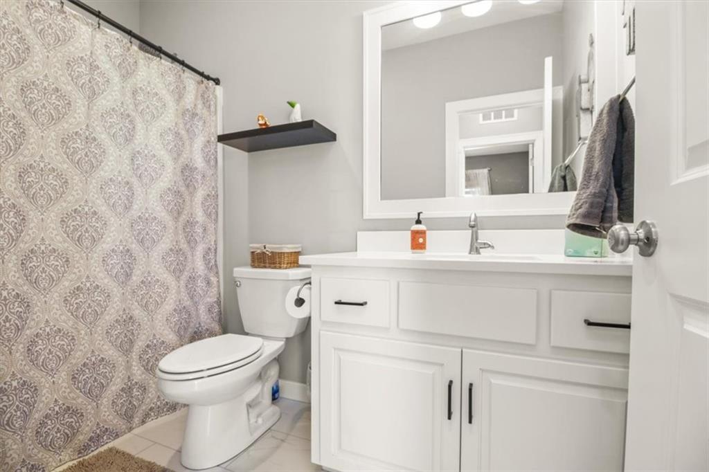 A stunning reverse 1.5-story home nestled on a private, treed lot with no direct rear neighbors. Built in 2022, this 4-bedroom home (including 2 on the main level) features a luxurious main-level primary suite with beautiful tile finishes, dual vanities, and a spacious walk-in closet with direct access to the laundry room for added convenience. Offering over 2,700 sq ft of thoughtfully designed open living space, the home is complete with granite countertops and high-end finishes throughout. The light-filled main level showcases an open-concept design with rich hardwood floors and a striking stone fireplace accented by custom built-ins. The designer kitchen serves as the centerpiece, featuring a gas range, upgraded countertops, an oversized island, walk-in pantry, and abundant cabinetry for exceptional storage. Step outside to enjoy peaceful outdoor living on the covered, extended patio overlooking mature trees and green space—providing a level of privacy and tranquility rarely found in the neighborhood. The finished lower level expands your living space with two additional bedrooms, a full bath, a generous recreation area perfect for entertaining or guests, and ample unfinished storage space. Seller upgrades further enhance the home, including professional landscaping with added trees, a fully fenced yard, custom blinds, and a custom front door that adds standout curb appeal. Ideally located near parks, lakes, shopping, dining, and with quick highway access, this home offers the perfect blend of modern comfort and everyday convenience.