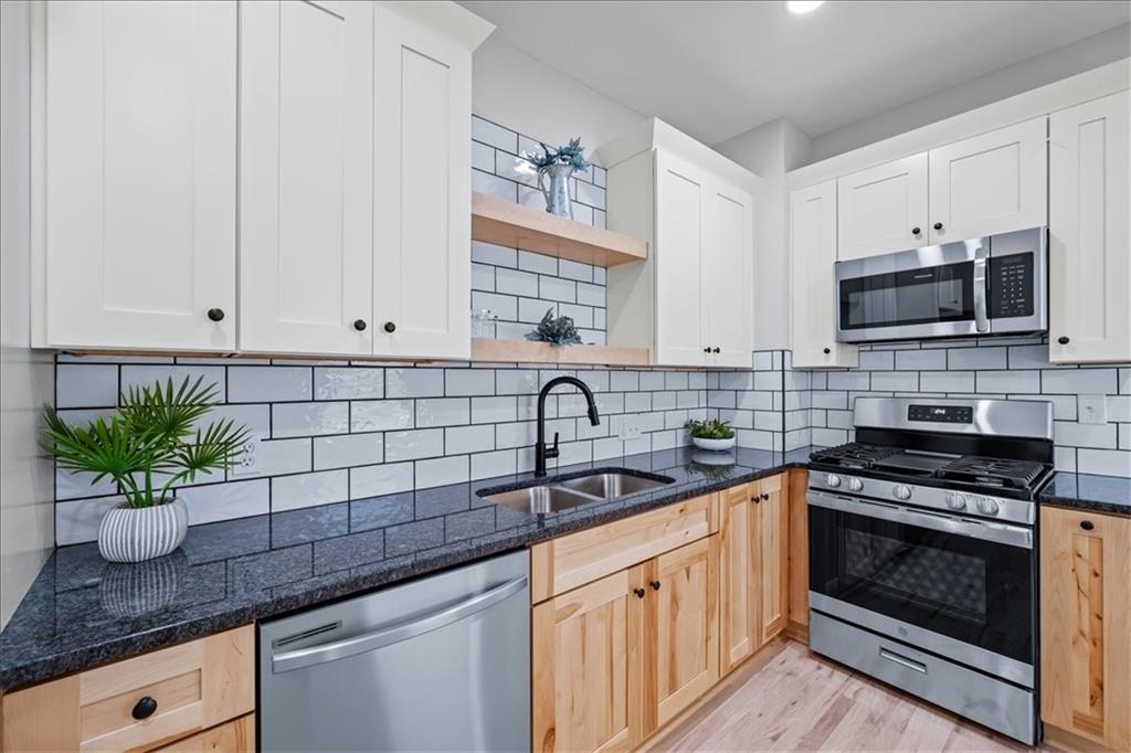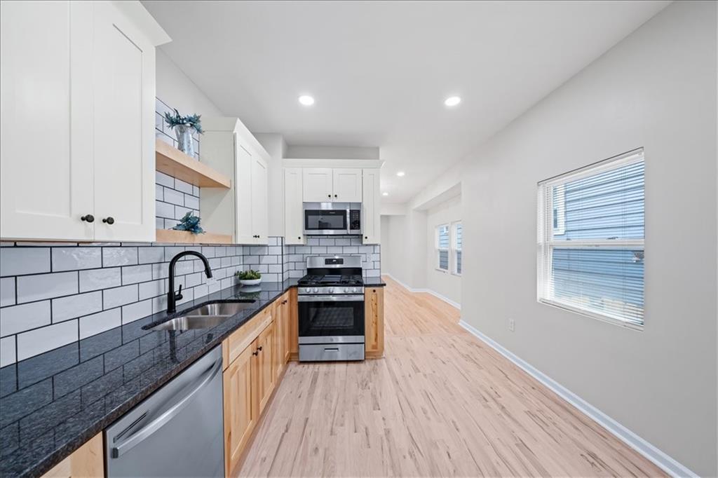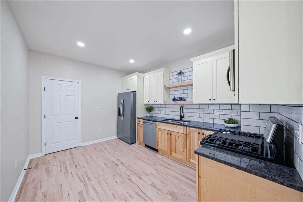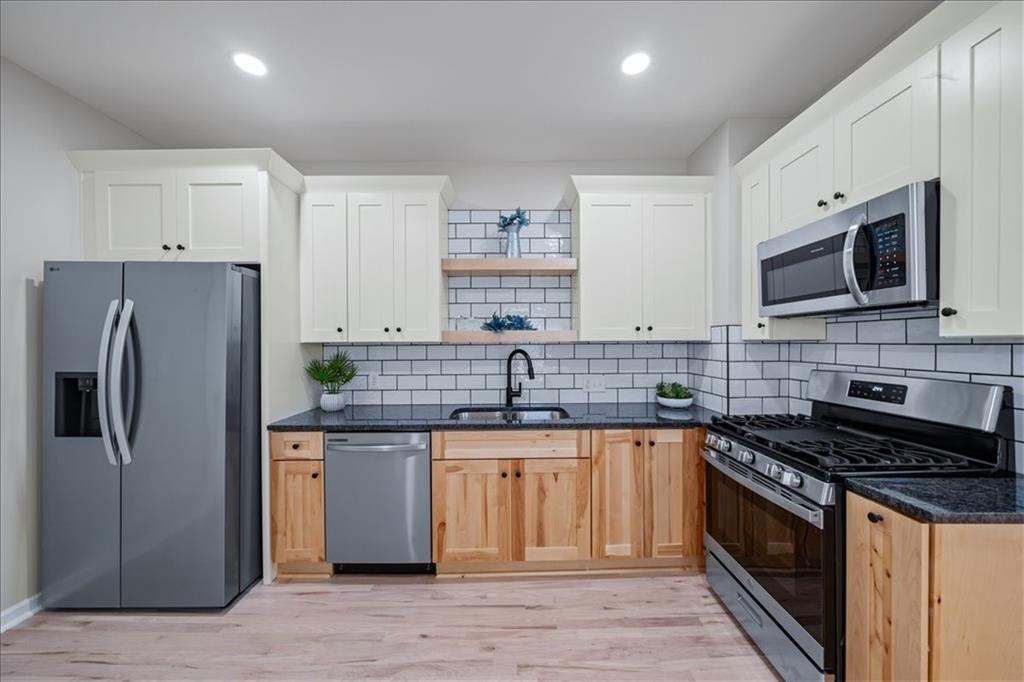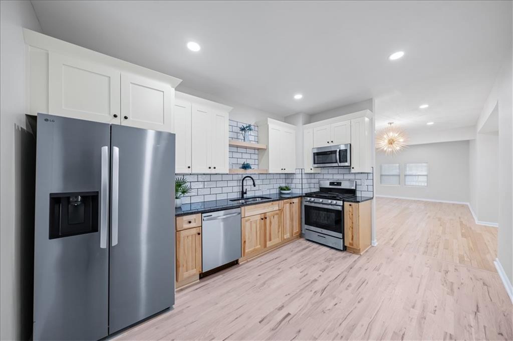 Completely renovated with high-end finishes, this charming 2-bedroom, 1-bath home in the Witmer Addition of Kansas City, Kansas offers style, comfort, and convenience. A welcoming front porch sets the tone, while a spacious backyard with a 6-foot privacy fence provides the perfect setting for relaxing or entertaining. Inside, luxury oak wood flooring flows seamlessly throughout the home. The updated kitchen features new appliances, modern cabinetry, granite counter tops, a stunning backsplash, and gas cooking—ideal for everyday living and hosting. The beautifully designed bathroom showcases dramatic black marble in the bath/shower, a new vanity, and a spacious layout. A designated, plumbed laundry area adds everyday functionality. The seller has also secured a permit for a private driveway, offering additional future convenience. Located within walking distance to Donnelly College, Bishop Ward High School, as well as nearby shopping and dining, this home sits on a quiet street and offers excellent potential as a primary residence or investment property—especially with the upcoming World Cup. Don’t miss your chance to see this exceptional home—schedule your showing today!
