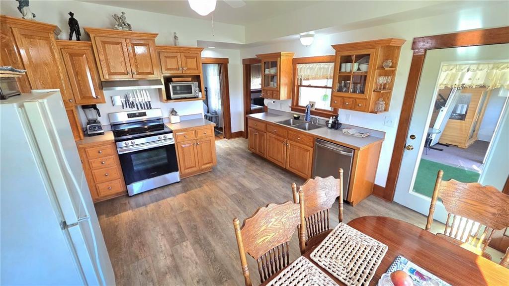 Dead End Road, Picture Perfect 35.02 Acre Mapleton, KS Homestead! This meticulously maintained 3-bed, 2-bath home is impressive from the moment you pull up. The home has been preserved, maintaining much of the beautiful woodwork throughout, while modern upgrades make this home inviting and comfortable. The home has received upgrades, including newer vinyl exterior windows, complete custom solid oak kitchen cabinetry & countertops. Just off the kitchen is a grand dining room featuring original French doors. Additionally, this home features a huge sunroom, multiple large closets, and an unfinished partial basement. As you enter the front door, you will be greeted by the beautiful, original staircase banister that leads you to 2 bedrooms and 1 bath, featuring a beautiful, primitive claw-foot tub. Need room for additional guests? This property features a detached guest quarters. This is nicely finished, featuring heating and cooling. Multiple storage sheds and parking places exist in the 2 detached garages and one turn-of-the-century impressive old school hay barn. The hay barn upstairs is in very nice condition and is currently used for storage. The land is equally impressive, featuring lush cool-season grasses, and barbed wire fencing for horses, 4 ponds throughout the property providing excellent year-round livestock water source, or the fishing enthusiast. The south side of the land rolls slightly downhill with thick brush and trees providing an excellent white-tailed hunting experience. This is a rate property as it has had all the work done. *Furnace is propane, propane is owned.