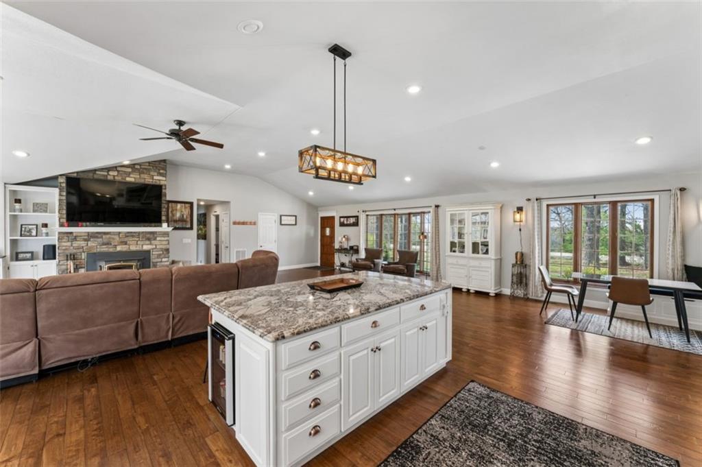 Welcome to 14441 Highway U, Cross Timbers, MO 65634, a beautifully maintained 3-bedroom, 3-bath home with over 3,700 sq ft, perfectly positioned on 20 scenic acres of mixed open land and mature woods. This is where modern comfort meets rural independence. From the moment you arrive, the oversized driveway and attached two-car garage with workshop space set the tone for functionality and scale. Step inside to discover a bright, open layout featuring quartz countertops, stainless steel appliances, and warm hardwood flooring, all anchored by a cozy living room fireplace that creates the perfect gathering space. The heart of the home flows seamlessly into a stunning dining area wrapped in windows, flooding the space with natural light and offering uninterrupted views of your private land. Just beyond, step out onto the expansive deck, where an above-ground pool with electric heater and outdoor entertaining space create the ultimate setting for summer nights and weekend gatherings. The newly finished basement (2023) adds incredible flexibility with an additional bedroom and full bathroom, making it ideal for guests, extended family, or multi-generational living. Outside is where this property truly separates itself. Enjoy your own private pond, wooded acreage with established trails for ATV riding and hiking, and two deer stands, making this a dream setup for hunting and outdoor enthusiasts. A dedicated shooting range further enhances the recreational appeal. For those seeking versatility and income potential, the 12x36 Amish-built log cabin with heat, AC, and pellet stove offers the perfect guest retreat, Airbnb opportunity, or private office space. Located on a paved road in the peaceful Cross Timbers area, this property offers the privacy buyers crave without sacrificing accessibility. If you’ve been searching for a Missouri acreage home with land, privacy, hunting, and modern upgrades. This is it. Optionally comes fully furnished.
