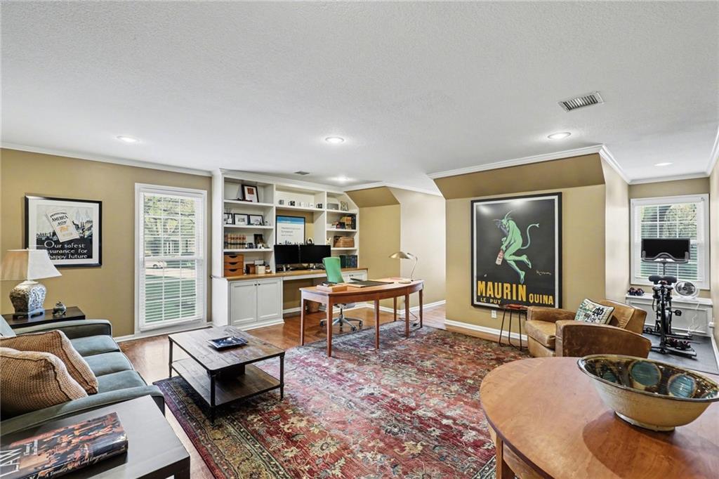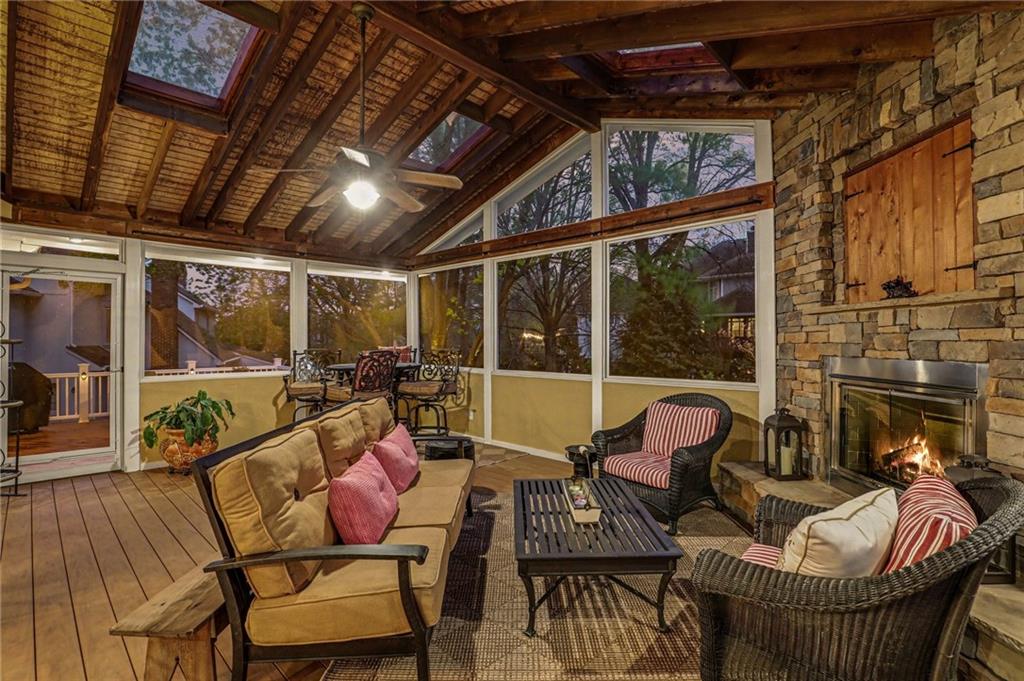 Classic center-hall Colonial in coveted Nottingham Forest South, showcasing exceptional craftsmanship, thoughtful updates, and true pride of ownership at every turn. Hardwood floors flow throughout the main level, where floor-to-ceiling windows flood every room with light. The the den showcases elegant wainscoting, while the living room features a custom fireplace, built-ins, and trim work executed by the same artisan team trusted by builder Kirk Cornelius, a distinction that speaks for itself. Two half-baths on the main level and dual-entry stairs to the bedroom level add both convenience and architectural charm. A kitchen wine refrigerator completes the main floor package. Upstairs, the Primary Suite is a true retreat, featuring a fireplace, floor-to-ceiling windows, California Closets, and a spa-worthy bath with heated floors. Three additional bedrooms each offer walk-in closets with custom built-ins; the fourth is oversized with its own built-ins. Three full baths, a cedar closet, and meticulous attention to detail throughout round out the upper level. The basement is an entertainer's dream anchored by a must-see authentic Irish Pub, complete with a cozy fireplace, heated floors, second dishwasher, and a GE Monogram built-in wine refrigerator/ice-maker/freezer, a dedicated Wine Cellar, and high efficiency furnace. Outdoors, a stunning screened porch addition with blackout drapes, fireplace and 4-season TV invites year-round enjoyment, alongside a side deck perfect for al fresco dining. The 3-car garage features epoxy flooring and an EV charging outlet. Custom lighting, custom outlets throughout, central vacuum ? truly too much to list. This one must be seen!