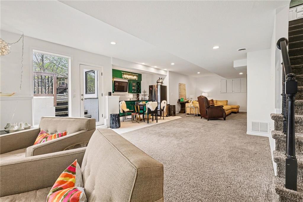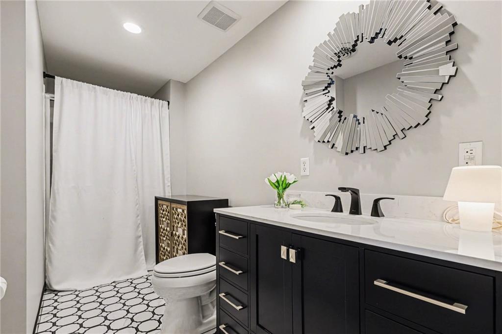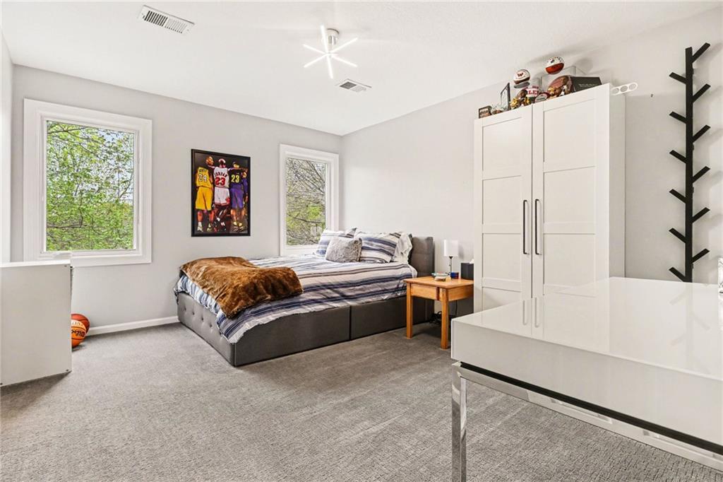 Welcome to this exceptional move-in-ready 2-story/4 bed/4.5 bath + office residence located in one of Overland Park’s most sought-after communities. Perfectly positioned on one of the few ½-acre lots in the neighborhood, this home offers beautiful views of the community lake, creating a rare and highly desirable setting. Thoughtfully remodeled and meticulously maintained, this home has undergone extensive improvements across multiple phases, delivering timeless style and modern comfort. A major renovation included all new windows and doors, updated exterior stucco and trim, and a redesign to create a main-level office and upper-level loft—adding flexible living spaces—along with new hardwood flooring throughout the main level and upper-level loft and hallway. The light-filled, open-concept layout is ideal for modern living and entertaining. The gourmet kitchen offers abundant cabinetry and generous prep space, flowing seamlessly into expansive living and dining areas. The home was further elevated with a comprehensive interior refresh, including a redesigned primary bathroom, renovation of three additional full baths, new lighting throughout, and a fully finished lower level featuring a complete secondary kitchen—ideal for multi-generational living, guests, or entertaining. A dedicated lower-level room offers flexibility as a non-conforming bedroom or workout space. The walk-out/walk-up lower level connects to an exceptional outdoor living experience. Enjoy a 20’ x 30’ custom paved court with modern retaining walls and basketball goal, along with a premium IPE wood deck perfect for grilling and entertaining—all set against the expansive yard and peaceful lake views. Additional improvements include updated mechanicals with new furnace, air conditioning and zoning, a newer roof, updated water heaters, and a professionally finished epoxy floor in the 3-car garage. Electric pet fence!