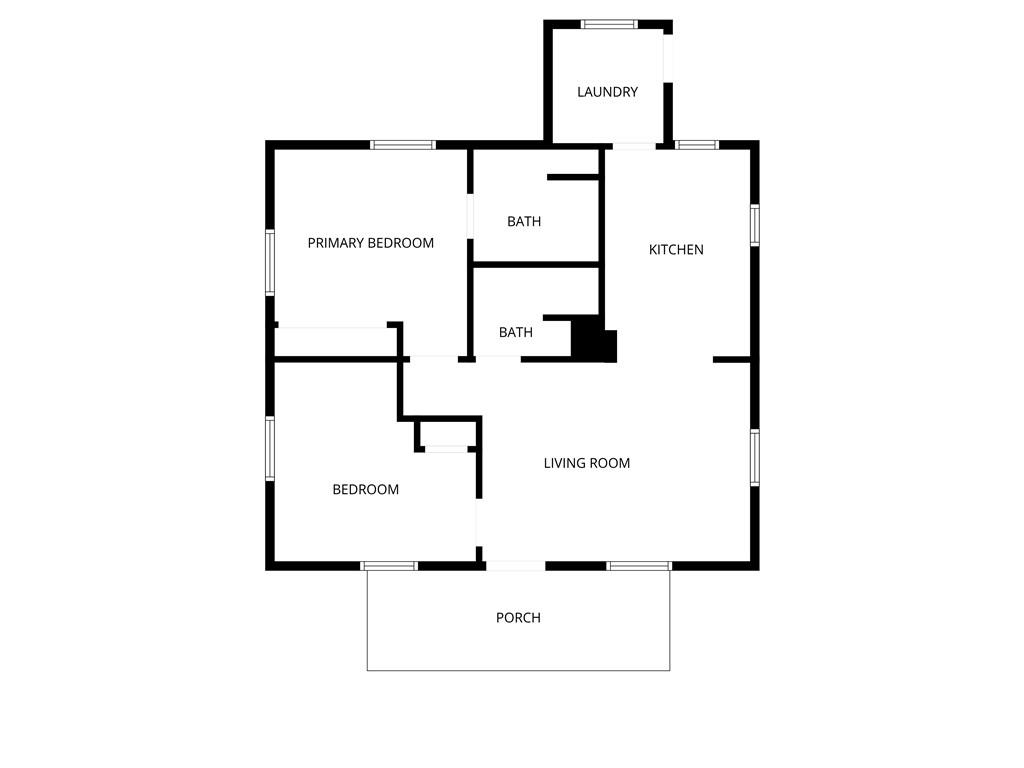 Cute bungalow on a large, fenced corner lot! Large living room space with big bright windows overlook the covered, spacious front porch. Renovated throughout, this kitchen has plenty of counter/cabinet space with updated appliances and counters, laminate floors! Separate laundry room off the kitchen. Good sized, carpeted bedrooms with attached full bath off the primary bedroom. Gorgeous shower! Hall bath with standup shower off the living room. HUGE yard with almost .5 acre that goes beyond the tree line. Clear it and you can have even more space. Fenced front yard gives room for the pets to roam away from the street. Close to highway access!