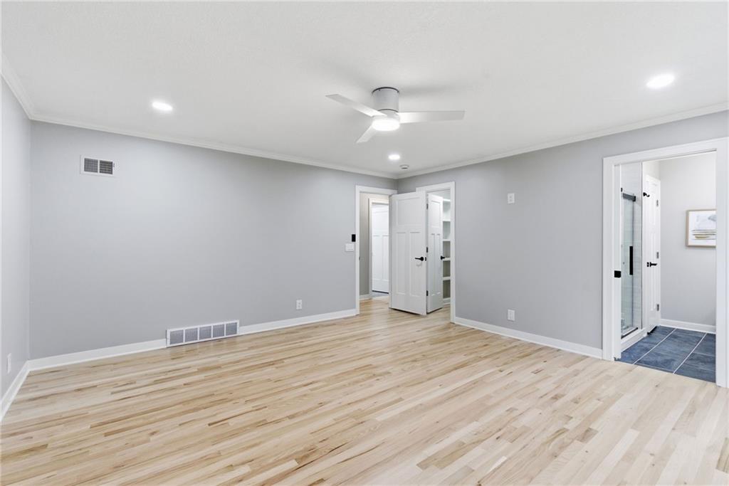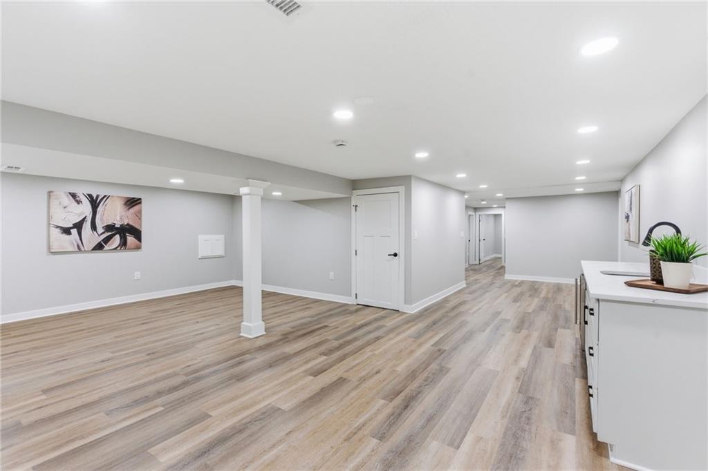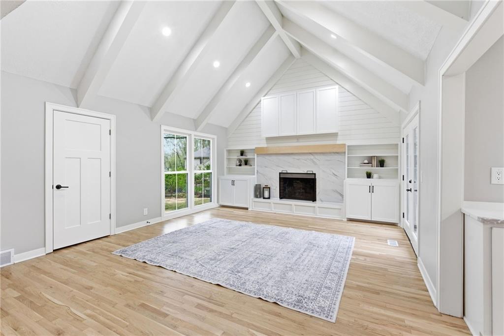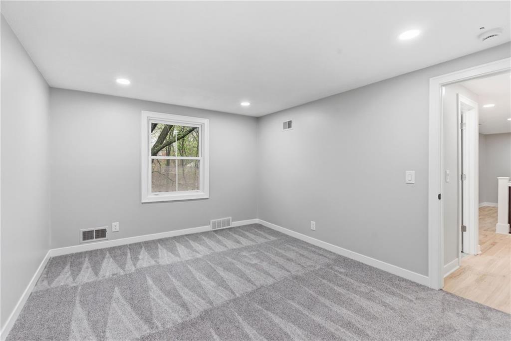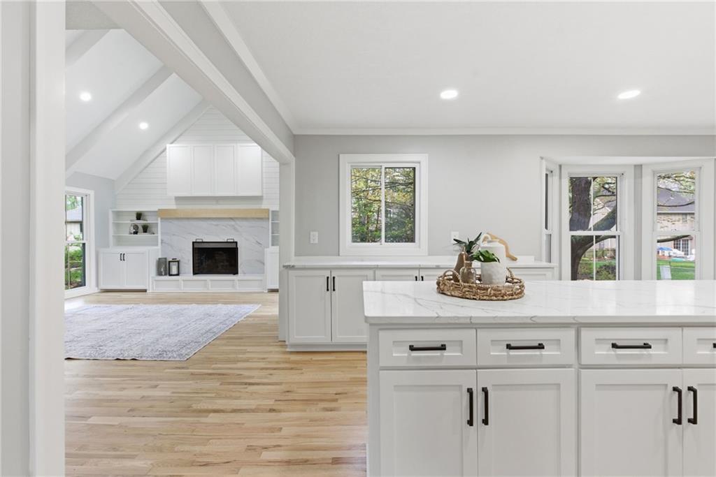 Welcome to your dream home in the heart of Leawood, ideally situated within the highly sought-after Blue Valley school district, ranked in the top 1% of school districts nationally. This exceptional home feeds into Leawood Elementary and Middle Schools, both just a short 10-minute walk or less than a 3-minute drive away. Blue Valley North High School is also conveniently located, only a 10-minute drive from your doorstep. This stunningly transformed home promises spacious living, making it an ideal retreat for larger families seeking both comfort and luxury. As you enter, you'll appreciate the thoughtfully designed open floor plan that harmonizes functionality with elegance. The chef's kitchen features custom craftsman-style cabinetry, quartz countertops, and stainless steel appliances—all overlooking a bright and airy hearth room with soaring vaulted ceilings. The main level also boasts a formal living room and dining room, perfect for hosting gatherings and family meals. In addition, the main level includes a luxurious primary ensuite bedroom. A 2nd bedroom and full bath cater to guests or family, while the newly designed mudroom offers convenient access from both the garage and the expansive stamped concrete back patio. Recent updates include a new roof and HVAC system, both less than a year old. Venture upstairs to discover two additional bedrooms, a full bath, and a huge loft living space, ideal for family game nights or a children's play area. The lower level features yet another ensuite bedroom, an additional bedroom and bath, a rec room complete with a wet bar, and a private office space for remote work or study. The exterior of the home boasts beautiful new lap siding on the front enhancing its curb appeal, while the remaining three sides feature elegant stucco. The property has also been meticulously updated with new landscaping and freshly applied seed & fertilizer, ensuring a lush green space for children to play and family barbecues to enjoy.
