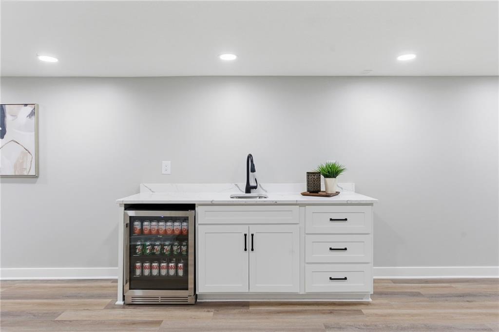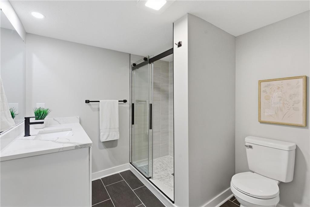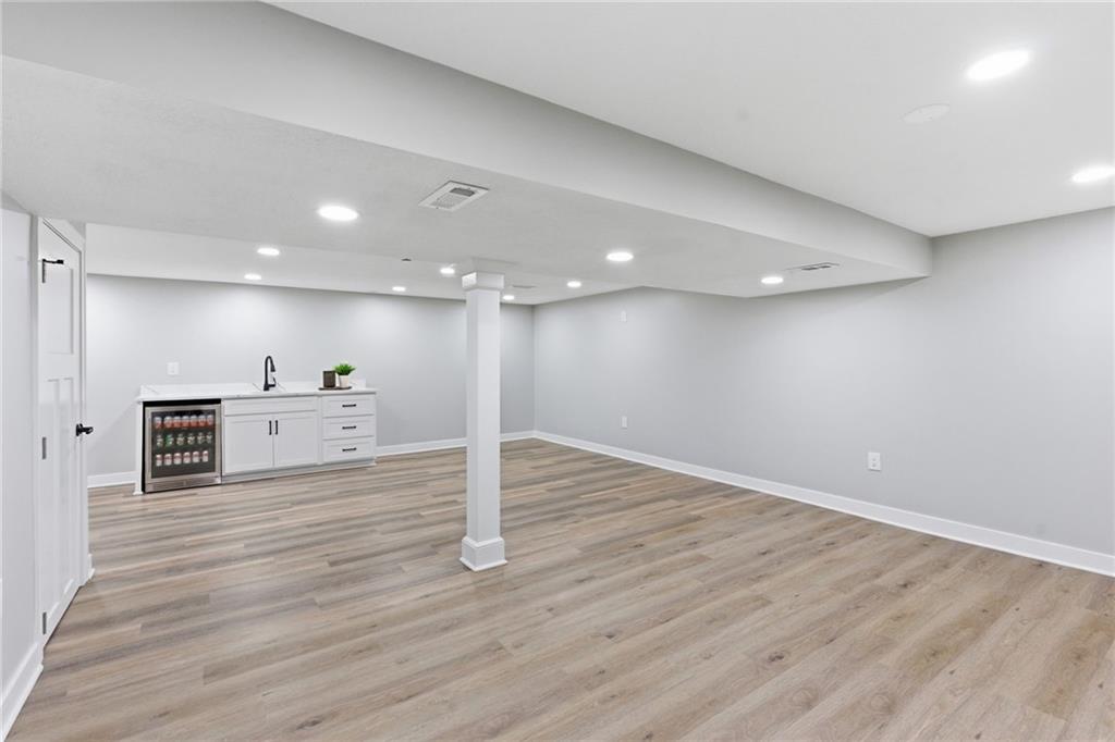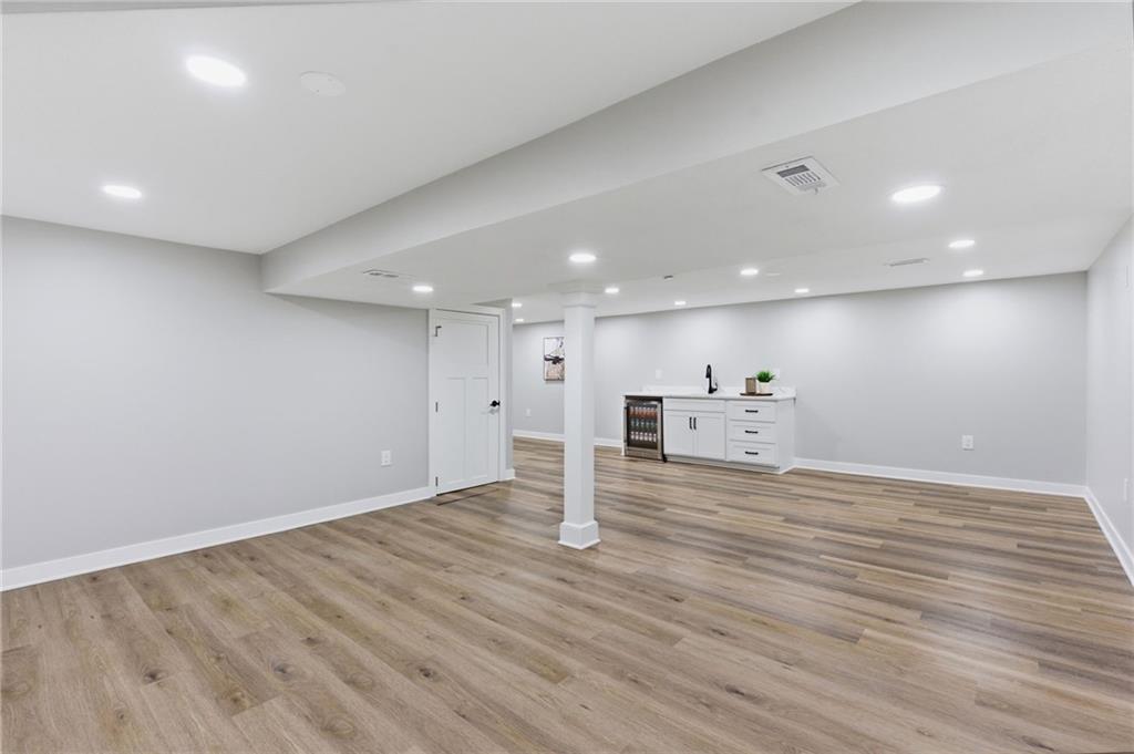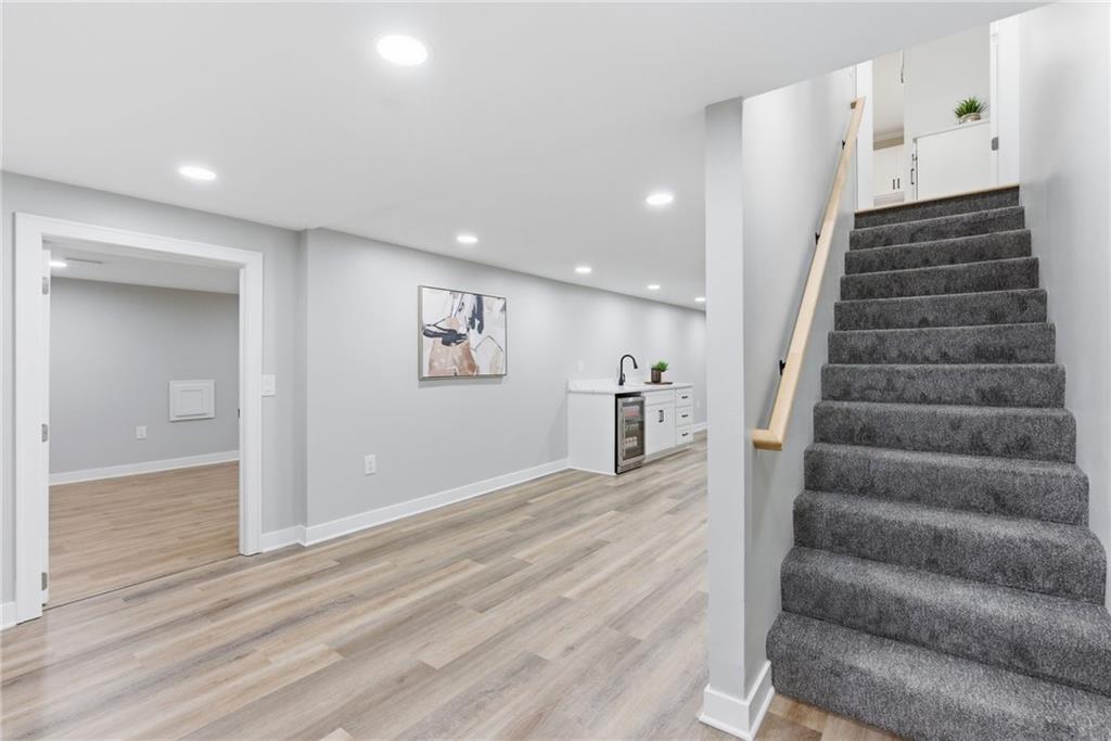 Welcome to your dream home in the heart of Leawood, ideally situated within the highly sought-after Blue Valley school district, ranked in the top 1% of school districts nationally. This exceptional home feeds into Leawood Elementary and Middle Schools, both just a short 10-minute walk or less than a 3-minute drive away. Blue Valley North High School is also conveniently located, only a 10-minute drive from your doorstep. This stunningly transformed home promises spacious living, making it an ideal retreat for larger families seeking both comfort and luxury. As you enter, you'll appreciate the thoughtfully designed open floor plan that harmonizes functionality with elegance. The chef's kitchen features custom craftsman-style cabinetry, quartz countertops, and stainless steel appliances—all overlooking a bright and airy hearth room with soaring vaulted ceilings. The main level also boasts a formal living room and dining room, perfect for hosting gatherings and family meals. In addition, the main level includes a luxurious primary ensuite bedroom. A 2nd bedroom and full bath cater to guests or family, while the newly designed mudroom offers convenient access from both the garage and the expansive stamped concrete back patio. Recent updates include a new roof and HVAC system, both less than a year old. Venture upstairs to discover two additional bedrooms, a full bath, and a huge loft living space, ideal for family game nights or a children's play area. The lower level features yet another ensuite bedroom, an additional bedroom and bath, a rec room complete with a wet bar, and a private office space for remote work or study. The exterior of the home boasts beautiful new lap siding on the front enhancing its curb appeal, while the remaining three sides feature elegant stucco. The property has also been meticulously updated with new landscaping and freshly applied seed & fertilizer, ensuring a lush green space for children to play and family barbecues to enjoy.