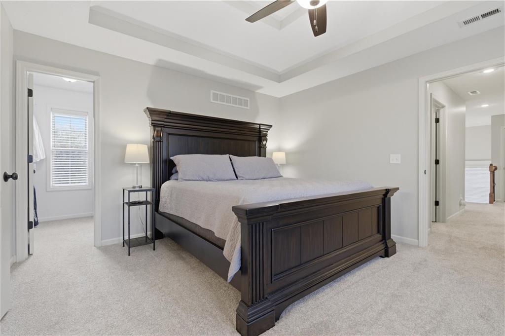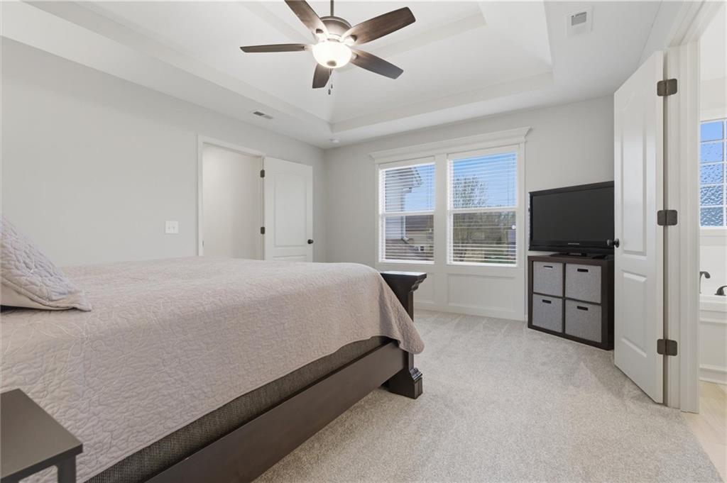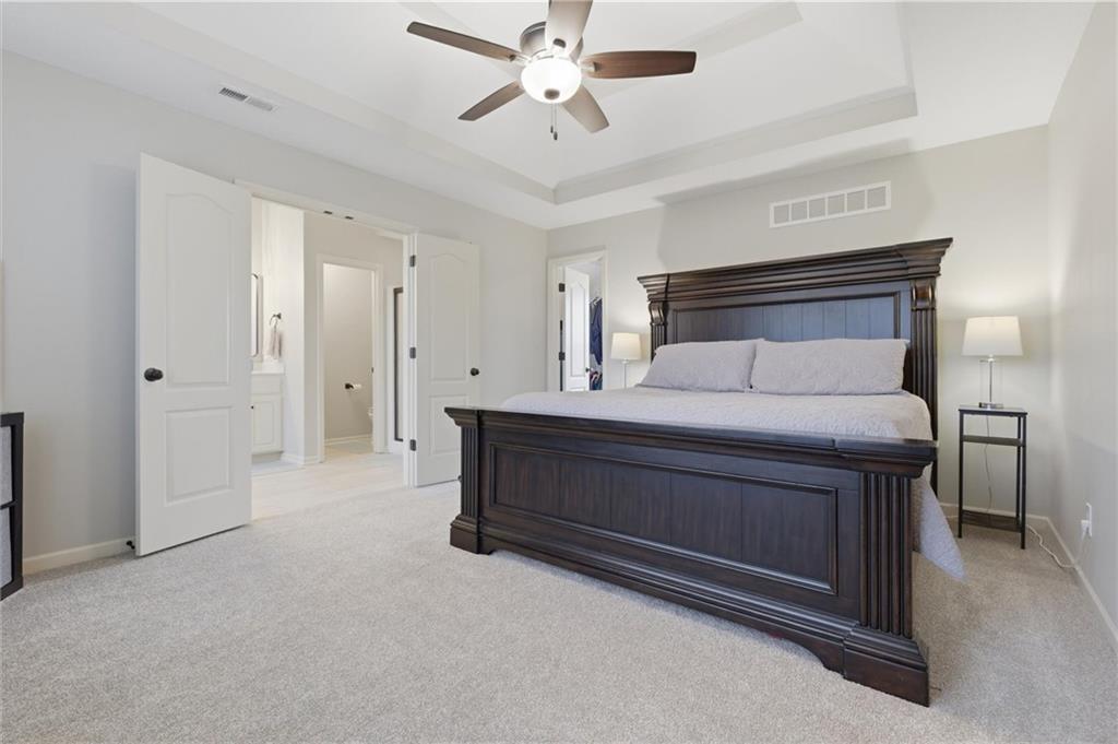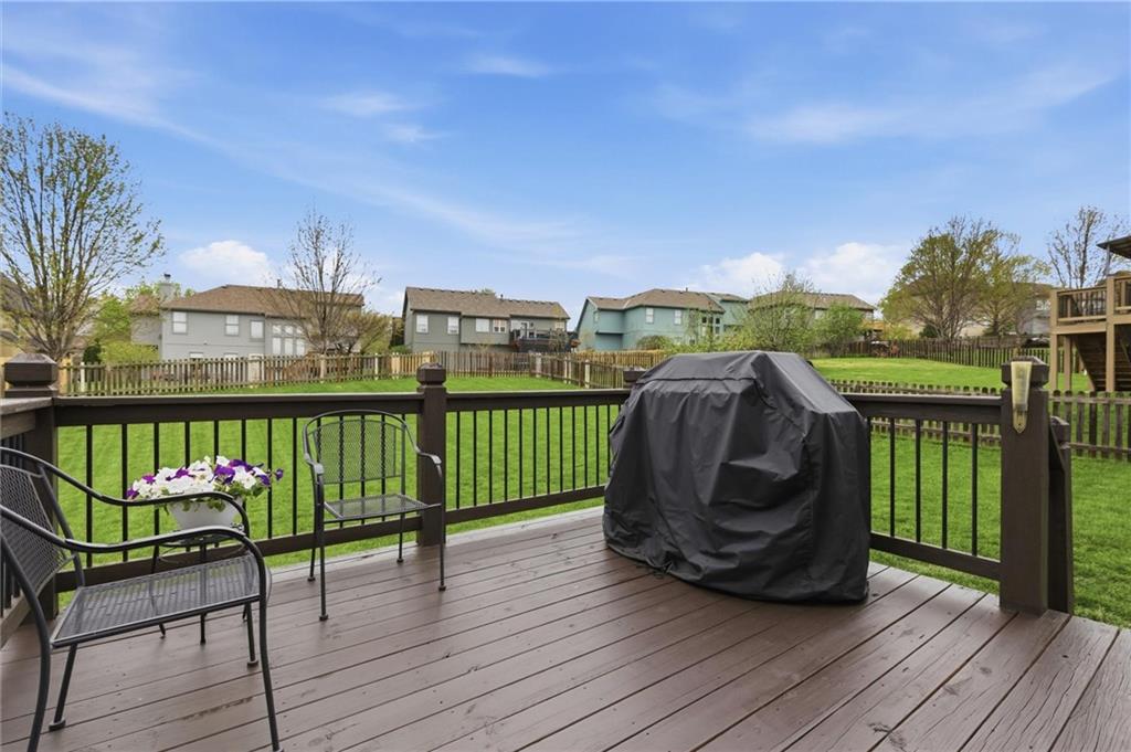 Located in a sought-after, growing neighborhood, this impeccable two-story home offers an open, functional layout designed for everyday living and entertaining. The kitchen, dining, and great room flow seamlessly together, creating a bright, connected main level enhanced by gleaming hardwood floors throughout kitchen The great room is a standout, featuring a gas fireplace with an impressive trim package, oversized windows that flood the space with natural light, and elegant wrought iron railings that add architectural interest. A formal dining room provides the perfect setting for gatherings, while the kitchen is both stylish and practical with a very large hidden pantry offering abundant storage while maintaining a clean, uncluttered look. Updated fixtures and stainless steel appliances complete the space. Just off the breakfast area, step onto the deck overlooking a large, fenced backyard—ideal for morning coffee, relaxing evenings, or entertaining guests. The primary suite offers a private retreat with an elegant tray ceiling. Double doors lead to a well-appointed master bath featuring a jetted tub, separate shower, private water closet, and double vanity with updated lighting and mirrors. Extensive updates provide peace of mind and modern comfort throughout. Major system improvements include a newer furnace, A/C, hot water heater, humidifier, thermostat, and added electronic dampers. Additional upgrades include a sump pump, garage door belt, and keypad. The home has been thoughtfully refreshed inside and out with new interior and exterior paint, updated light fixtures, and five Hunter ceiling fans. Exterior improvements include refreshed rock beds, a replaced hose spigot, garage side door, rear storm door, and tinted rear windows for added comfort and efficiency. Flooring updates include new carpet and LVT in full baths, completing the home’s clean, updated feel. A standout, move-in-ready opportunity you won’t want to miss.
