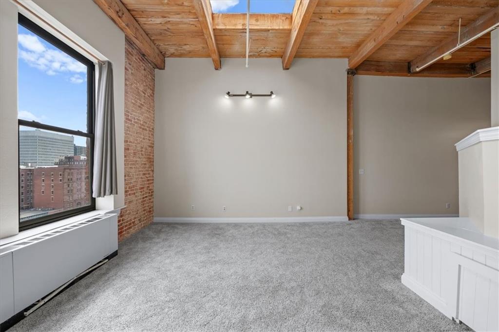 TOP FLOOR STUDIO with incredible skyline views. Welcome to your modern rustic escape above the city at the iconic Soho Lofts. This loft is the ultimate urban lifestyle, blending character, style, and not to mention the location into one unforgettable space. Step inside and you’re immediately greeted by soaring 15-foot ceilings and an abundance of natural light pouring in, creating an open, airy feel that instantly feels like home. The thoughtfully designed layout features a raised kitchen, exposed beams, and beautiful brick walls that bring warmth and texture throughout. Additional highlights include a skylight, all-electric living, and a versatile pull-out queen trundle bed, perfect for maximizing your space. Enjoy access to an impressive lineup of amenities, including a rooftop deck with stunning views, fitness center, sauna, club room, and multiple laundry facilities (one conveniently located on the 4th floor). Several amenities, including the gym, laundry, and club room are currently being renovated. Step outside and experience true convenience of local favorites like The Glam Room and The Phoenix Jazz Club, with easy access to the River Market, Crossroads District, Power & Light District, the highly anticipated Rock Island Bridge, and the KC Streetcar. Covered garage parking is available for lease through Denison Parking with direct building access, starting at $140/month, with additional nearby options available. Storage units may also be available through the HOA. Soho Lofts allow 30+ day rentals, making this not only a stunning place to live but also a strong investment opportunity. This is loft living at its finest, light, bright, full of character, and located in the heart of everything Kansas City has to offer.